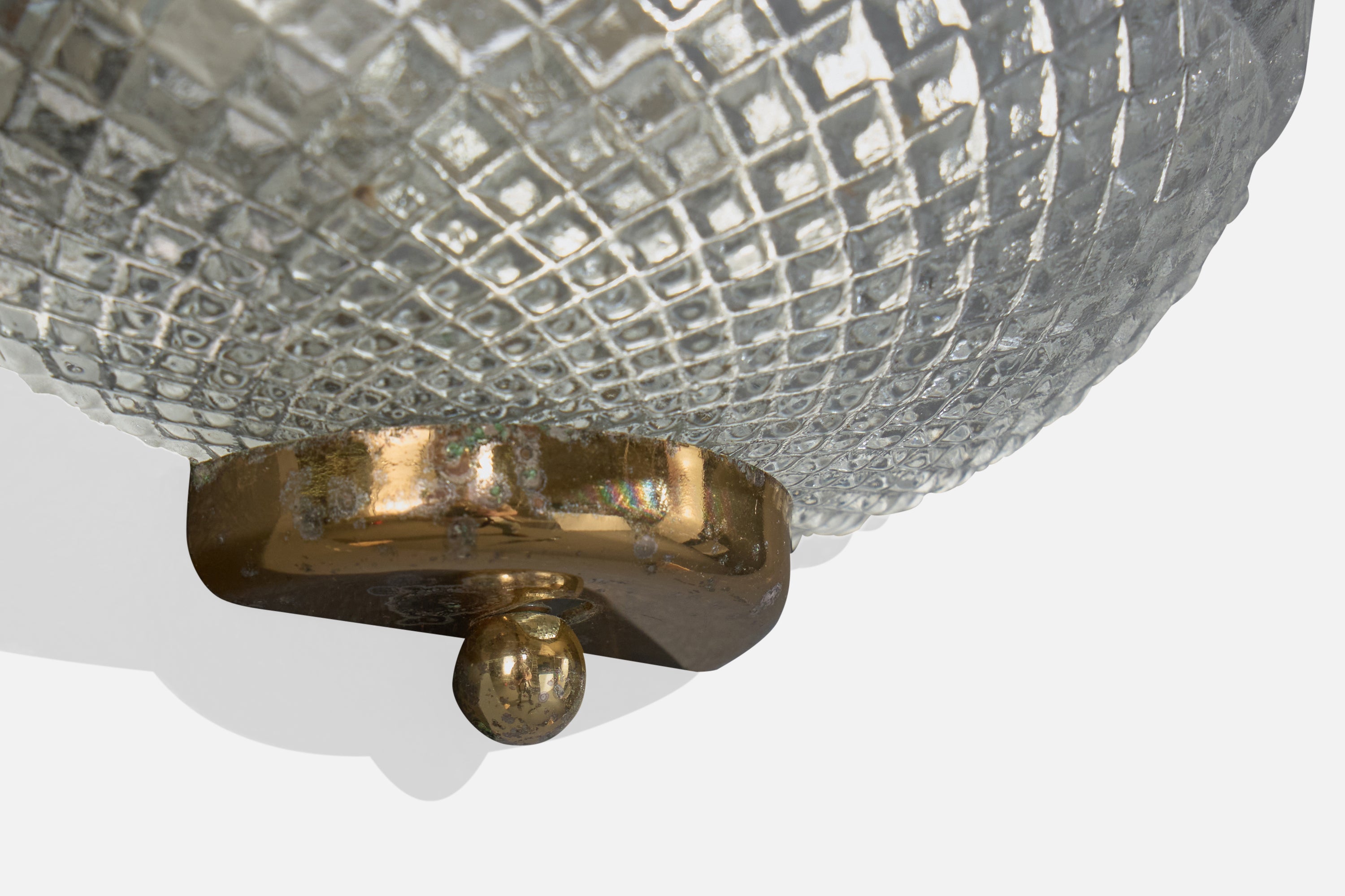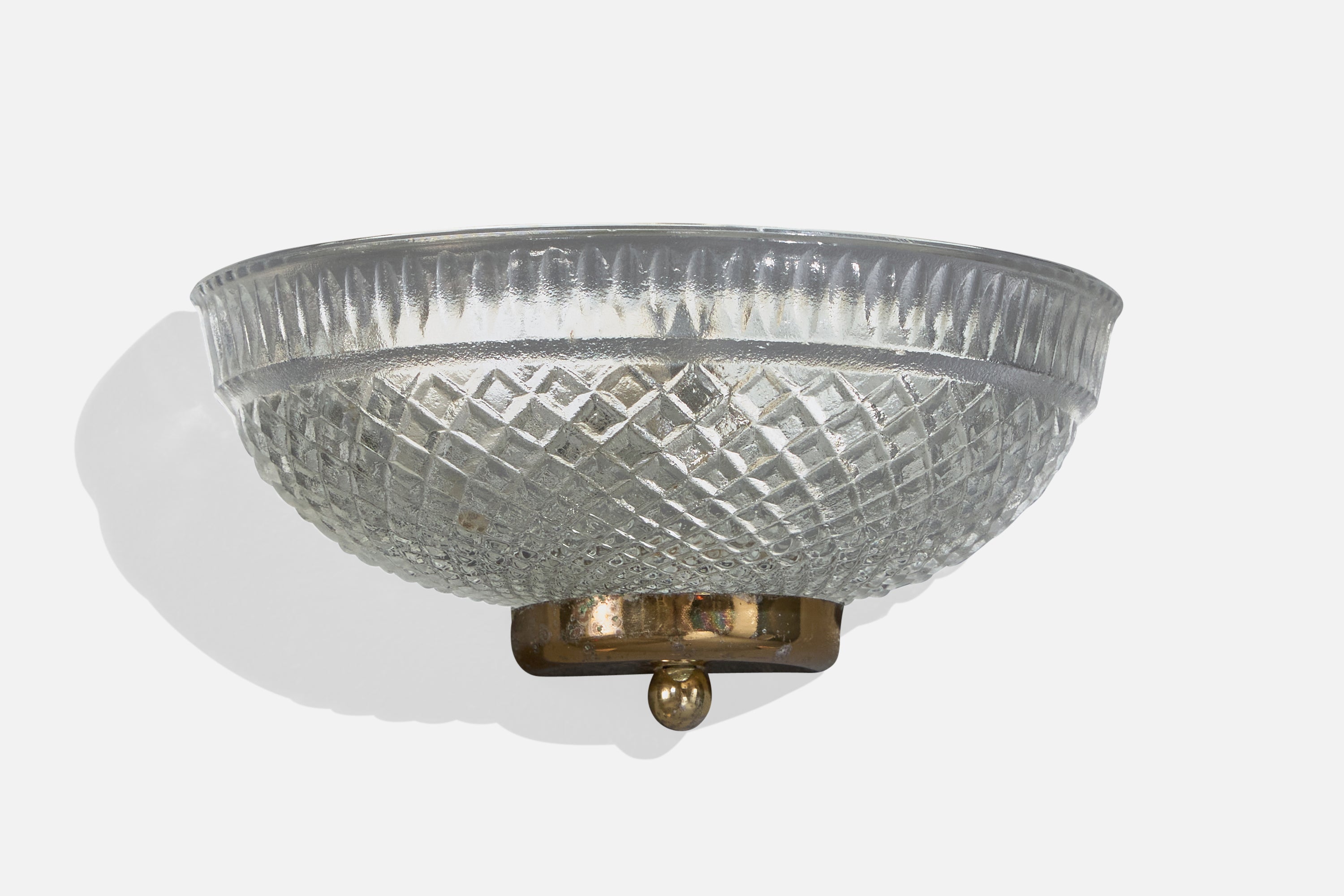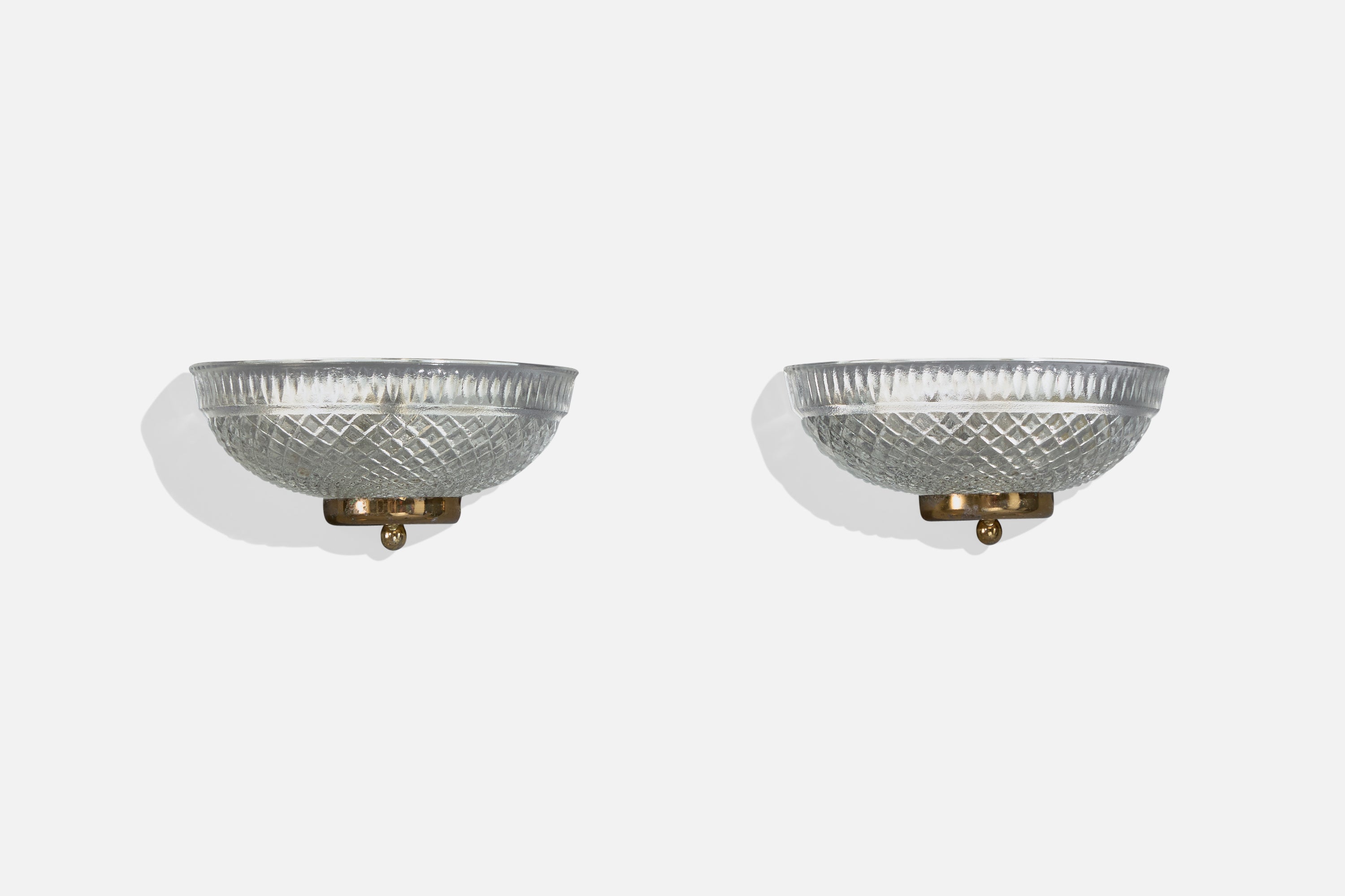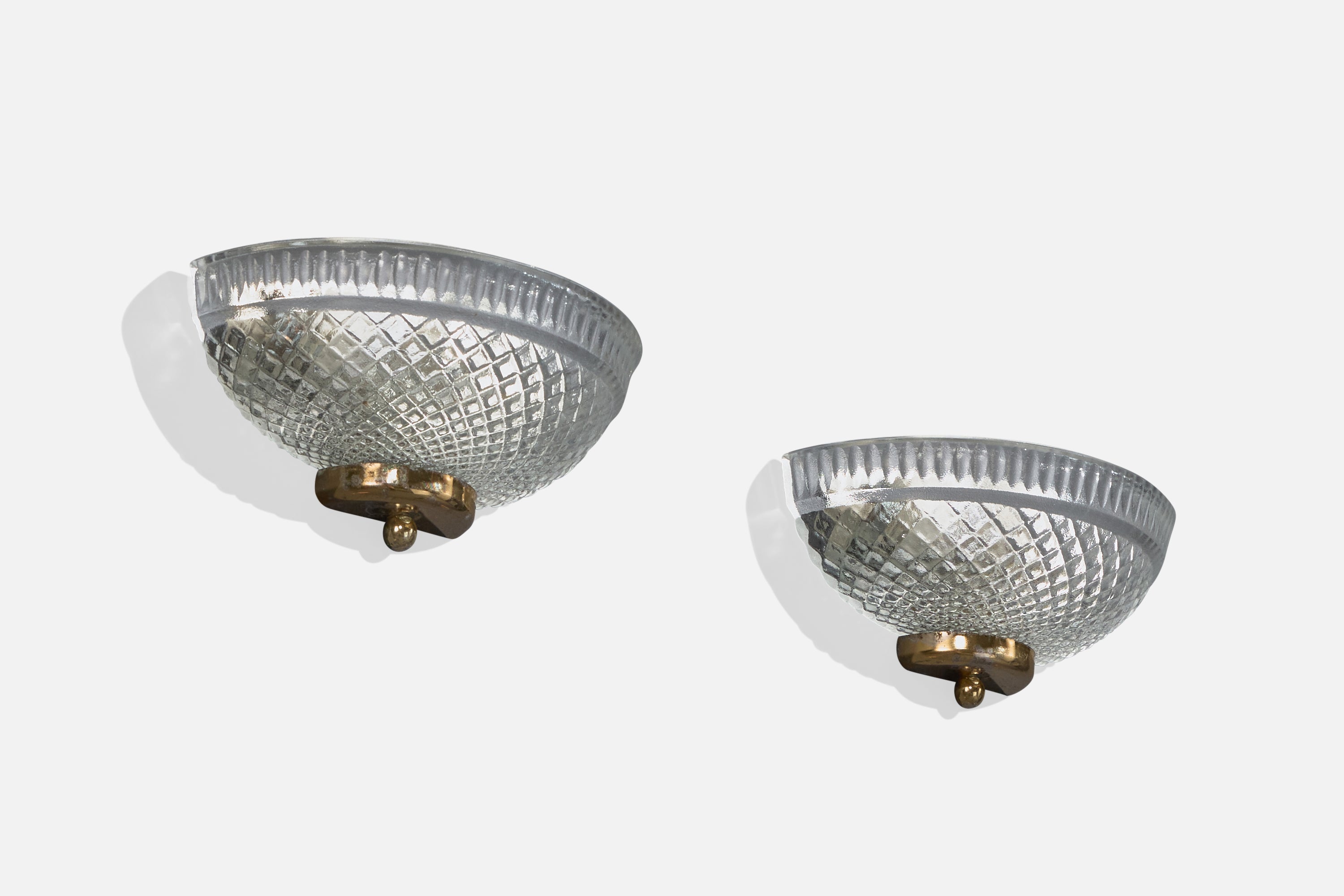 A pair of glass and brass wall lights likely designed and produced in France, c. 1970s.