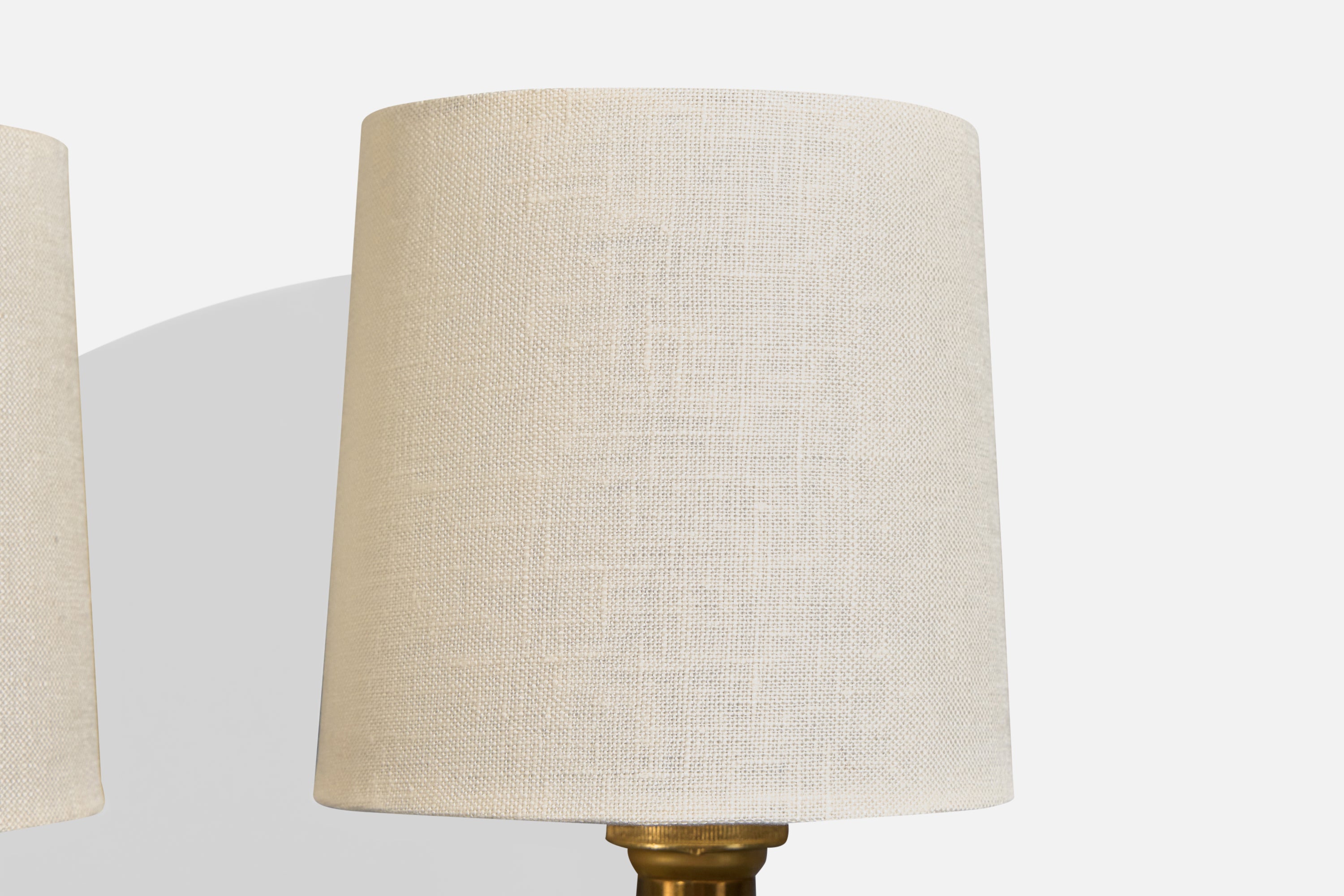 French Designer, Wall Lights, Brass, Metal, Glass, Fabric, France, 1950s