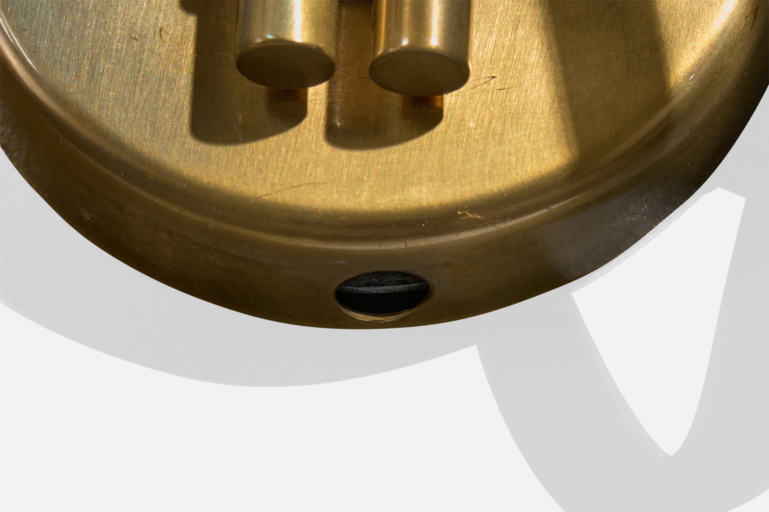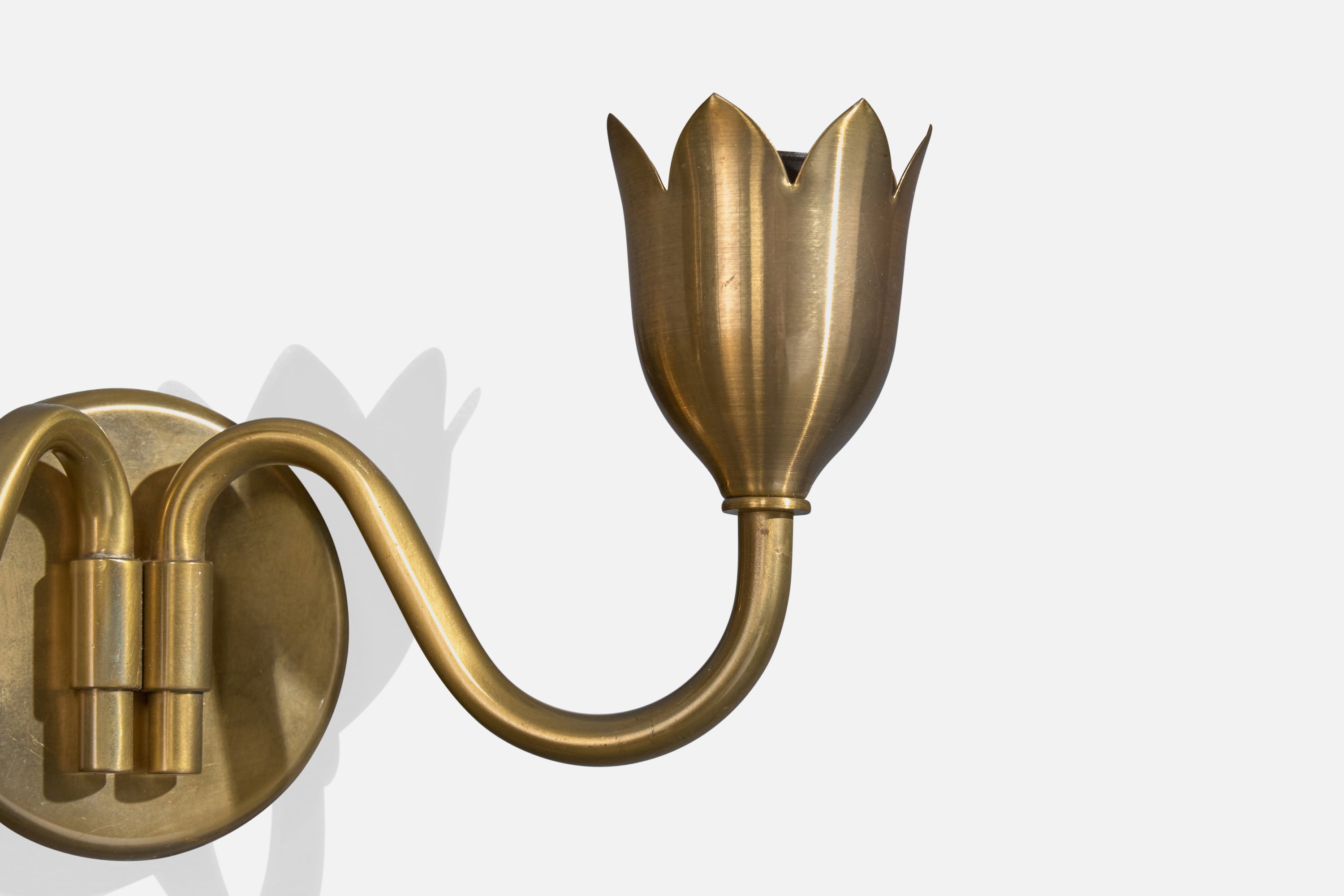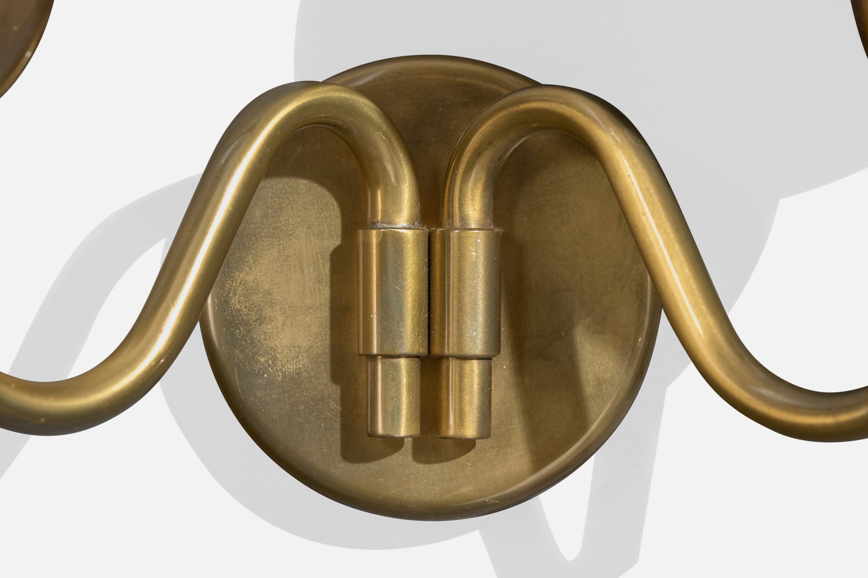 A brass and white fabric wall light designed and produced in Denmark, c. 1950s.