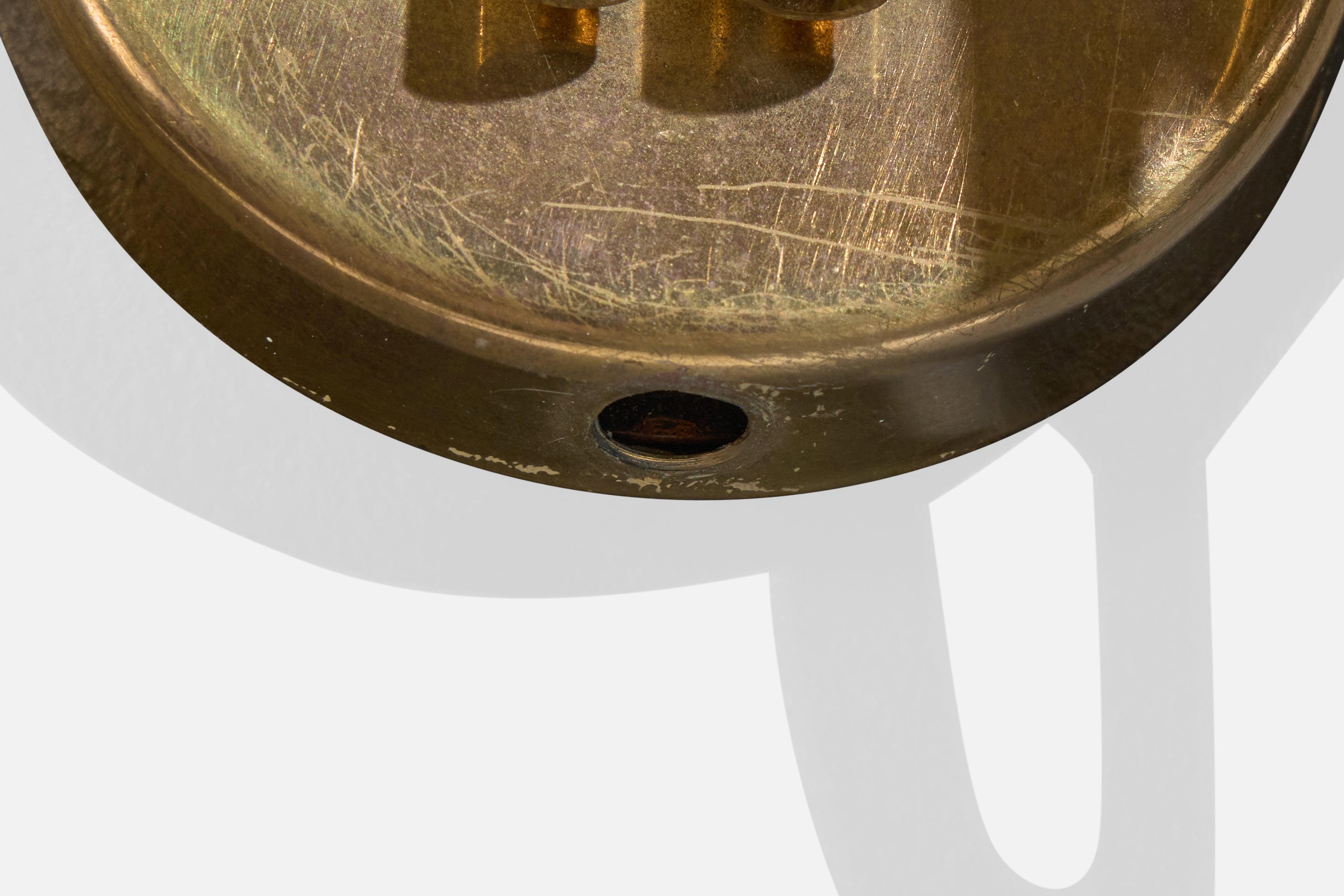 Dramatic patina with tarnish spot on one arm. Backplate cut on top edge. Wear is consistent with vintage age and normal use.