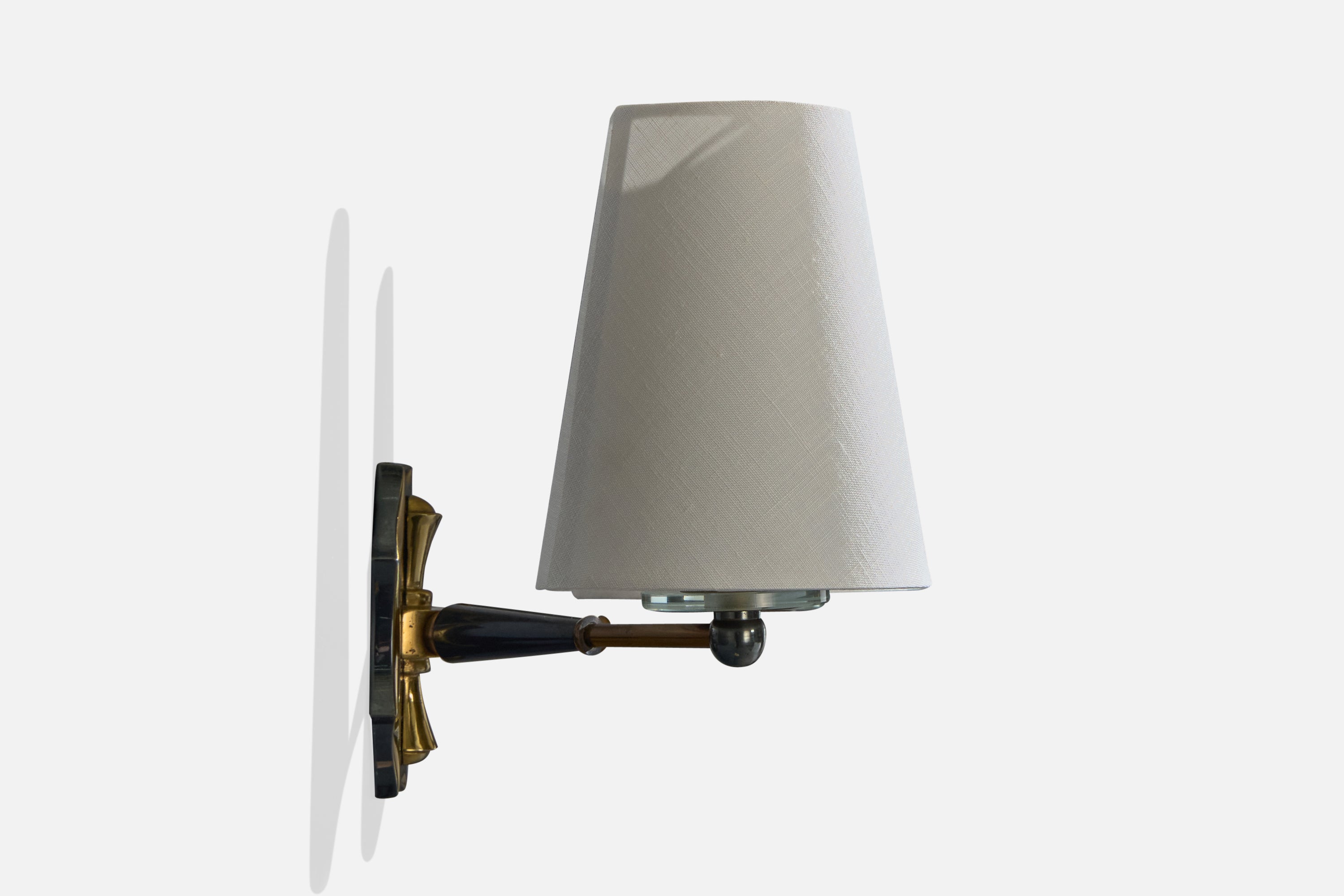 French Designer, Wall Lights, Brass, Metal, Glass, Fabric, France, 1950s