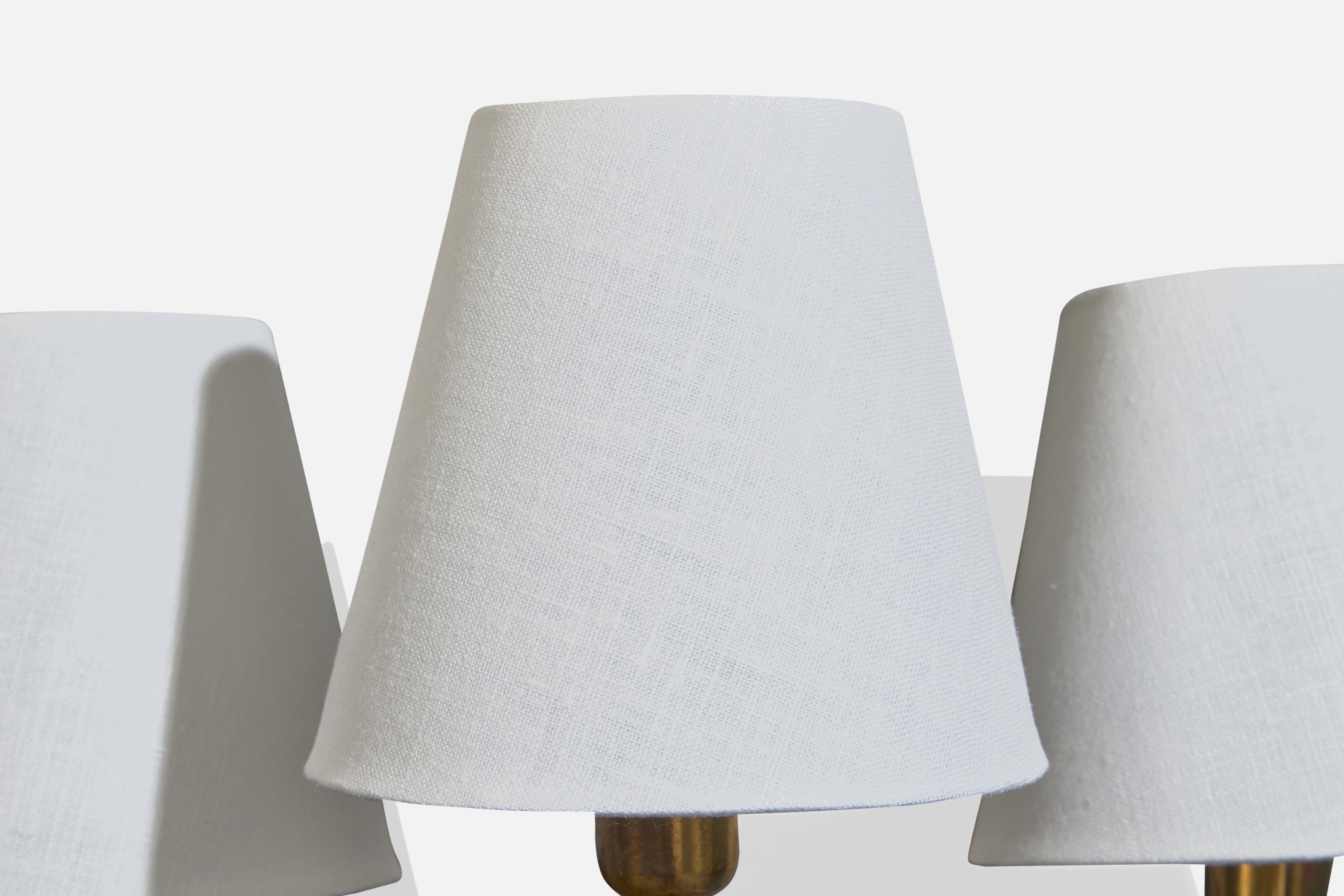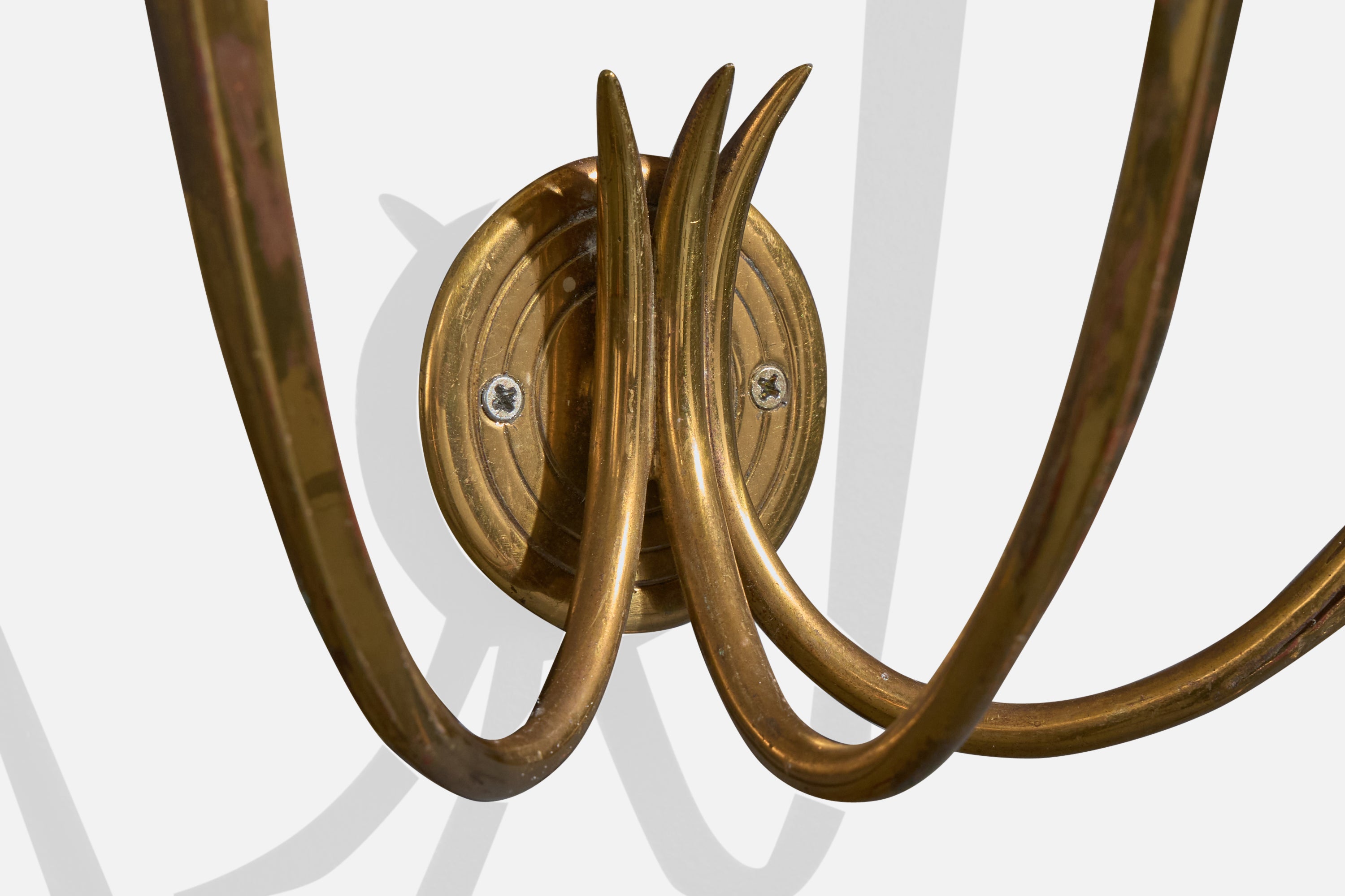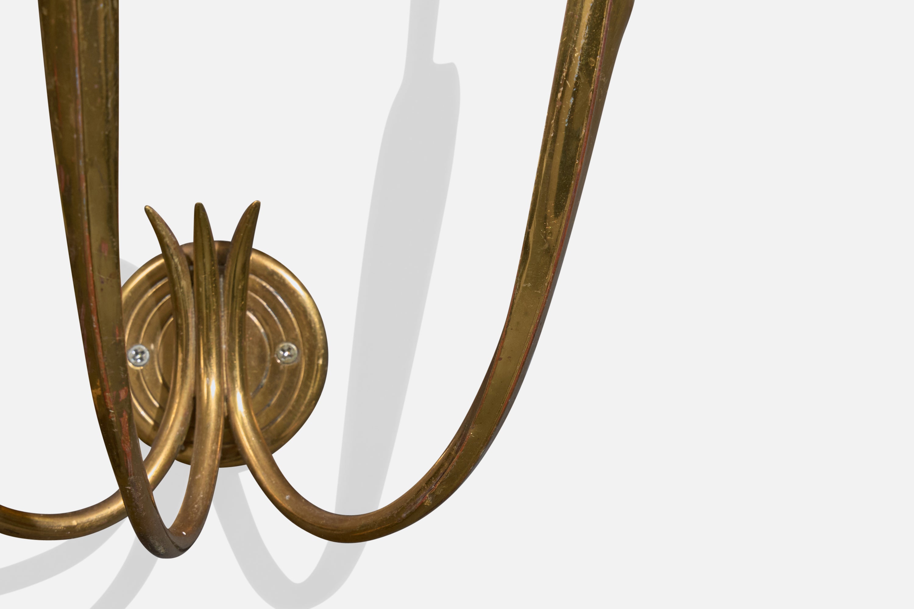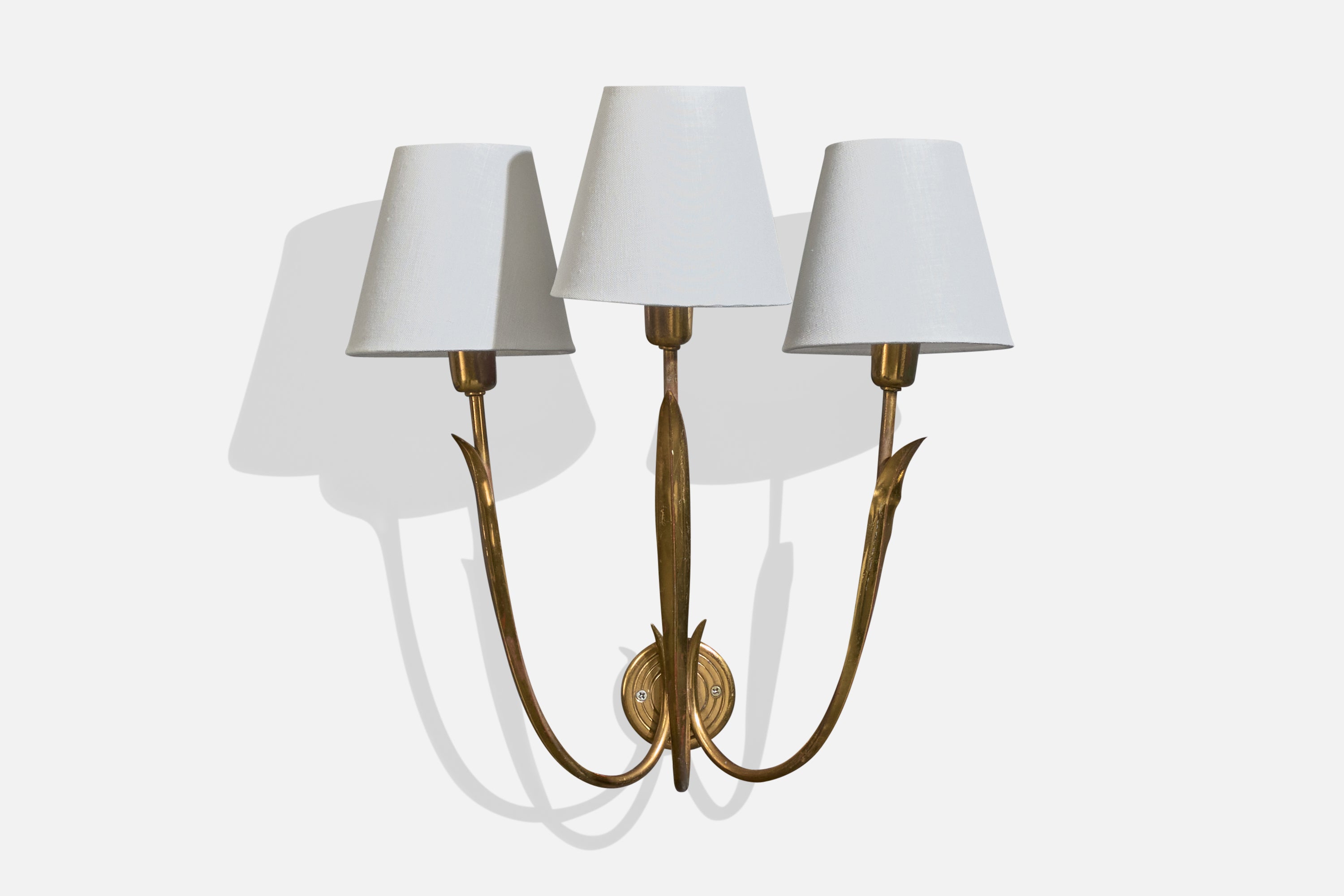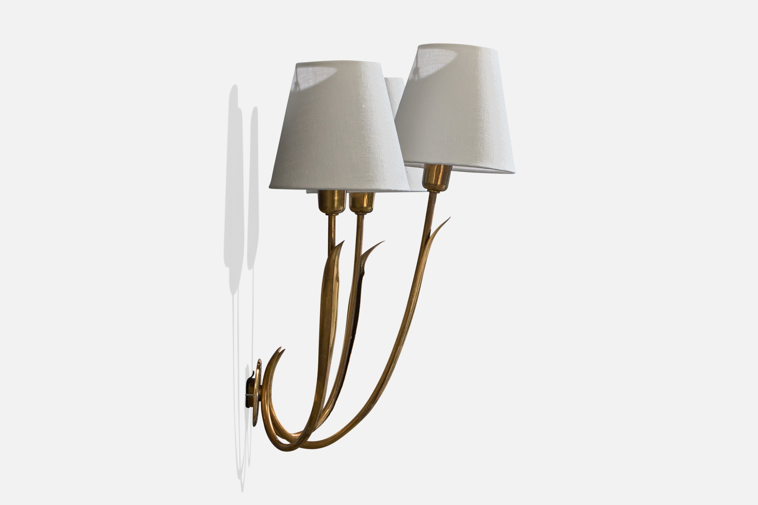 Italian Designer, Wall Lights, Brass, Fabric, Italy, 1940s