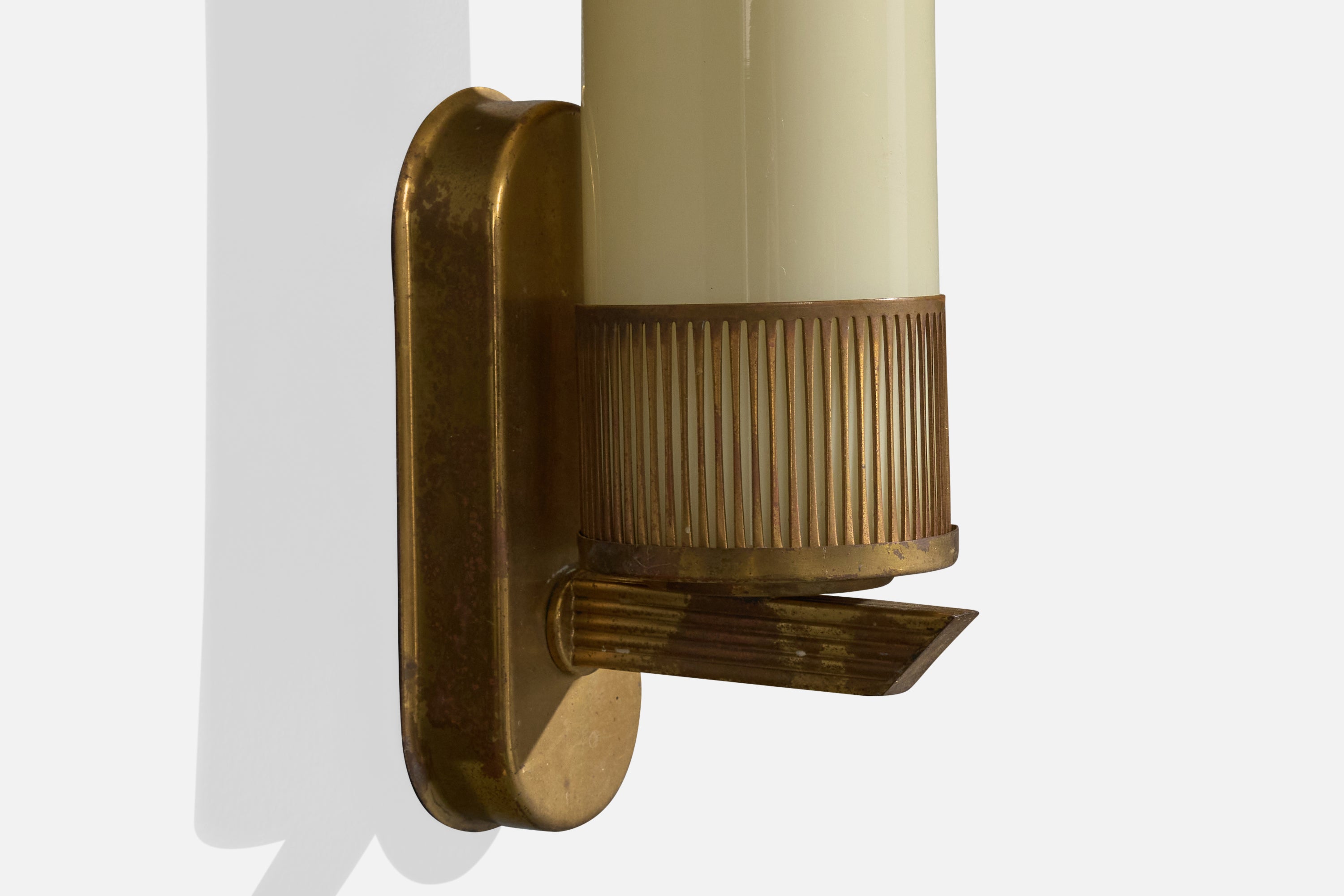 A brass and opaline glass wall light designed and produced in Austria, c. 1950s.