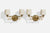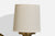 A pair of brass, white fabric wall lights designed and produced in France, c. 1950s.