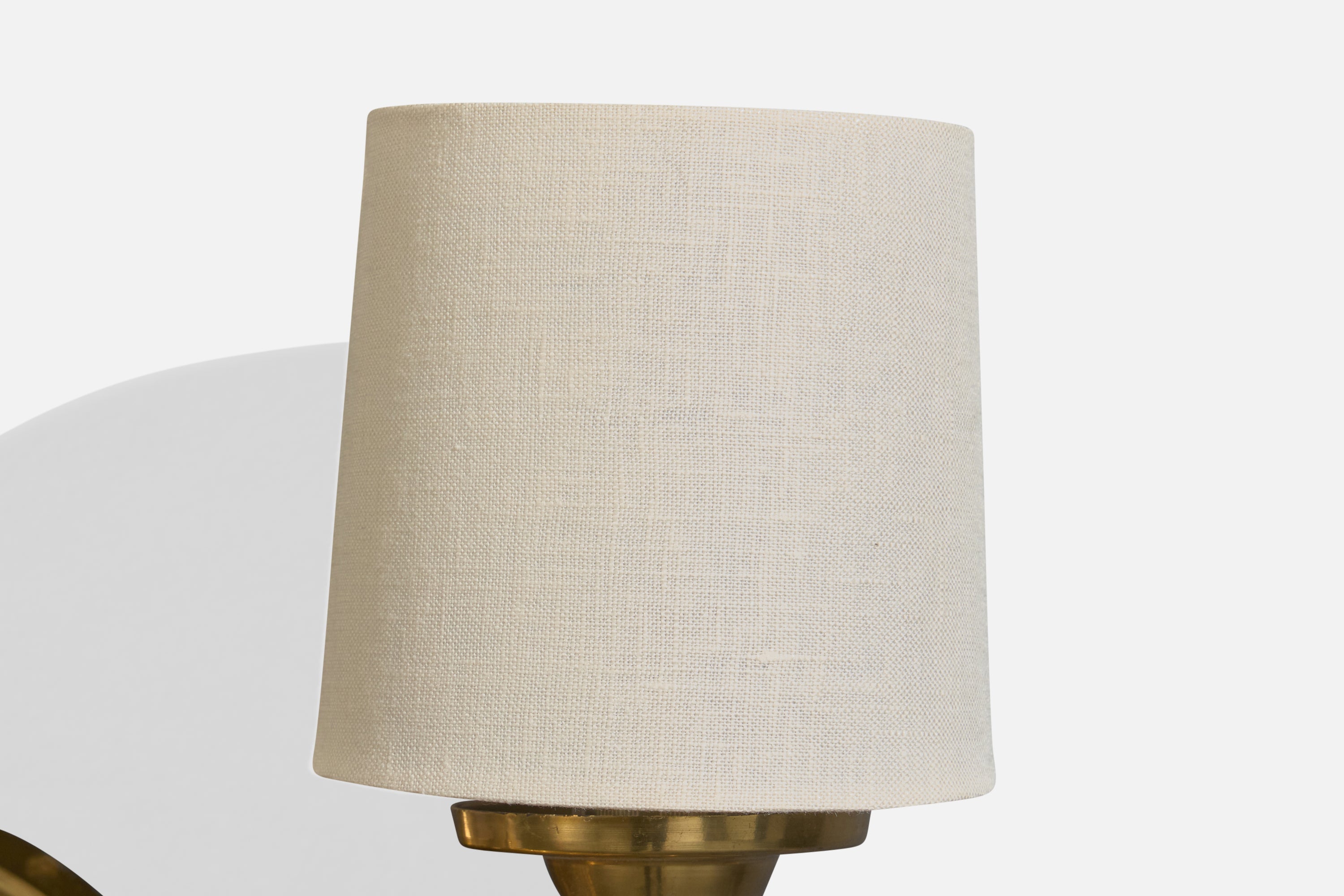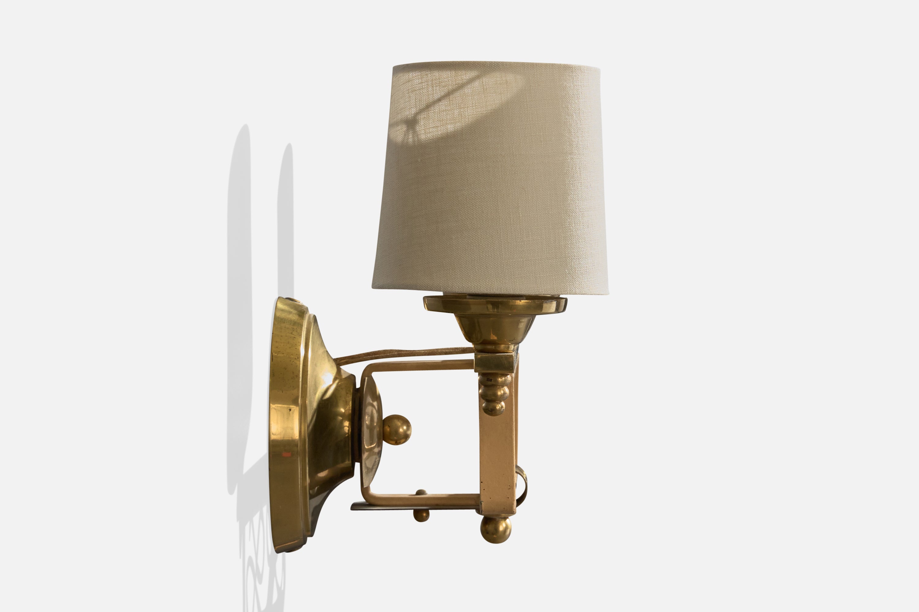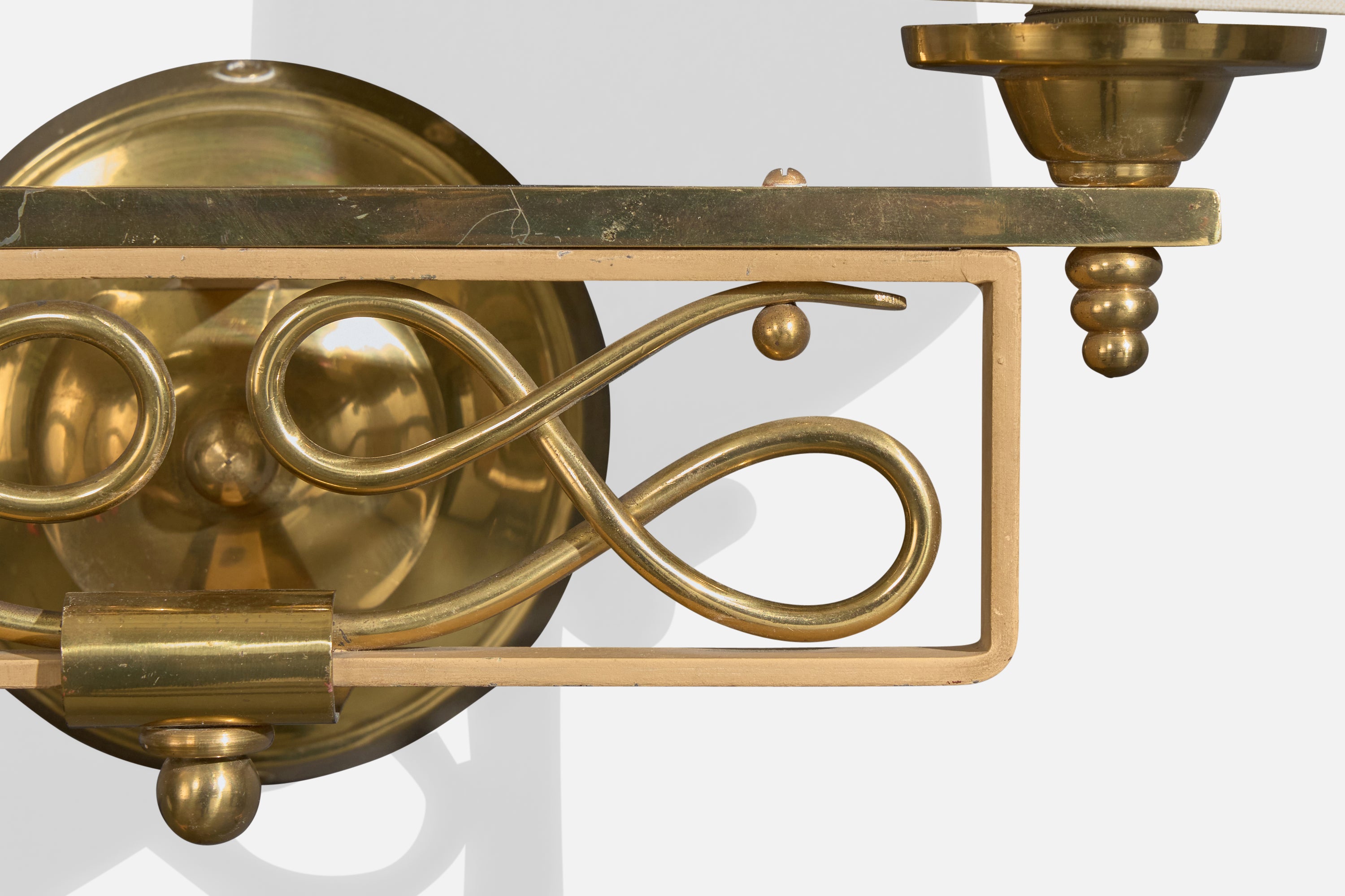 French Designer, Wall Lights, Brass, Fabric, France, 1950s