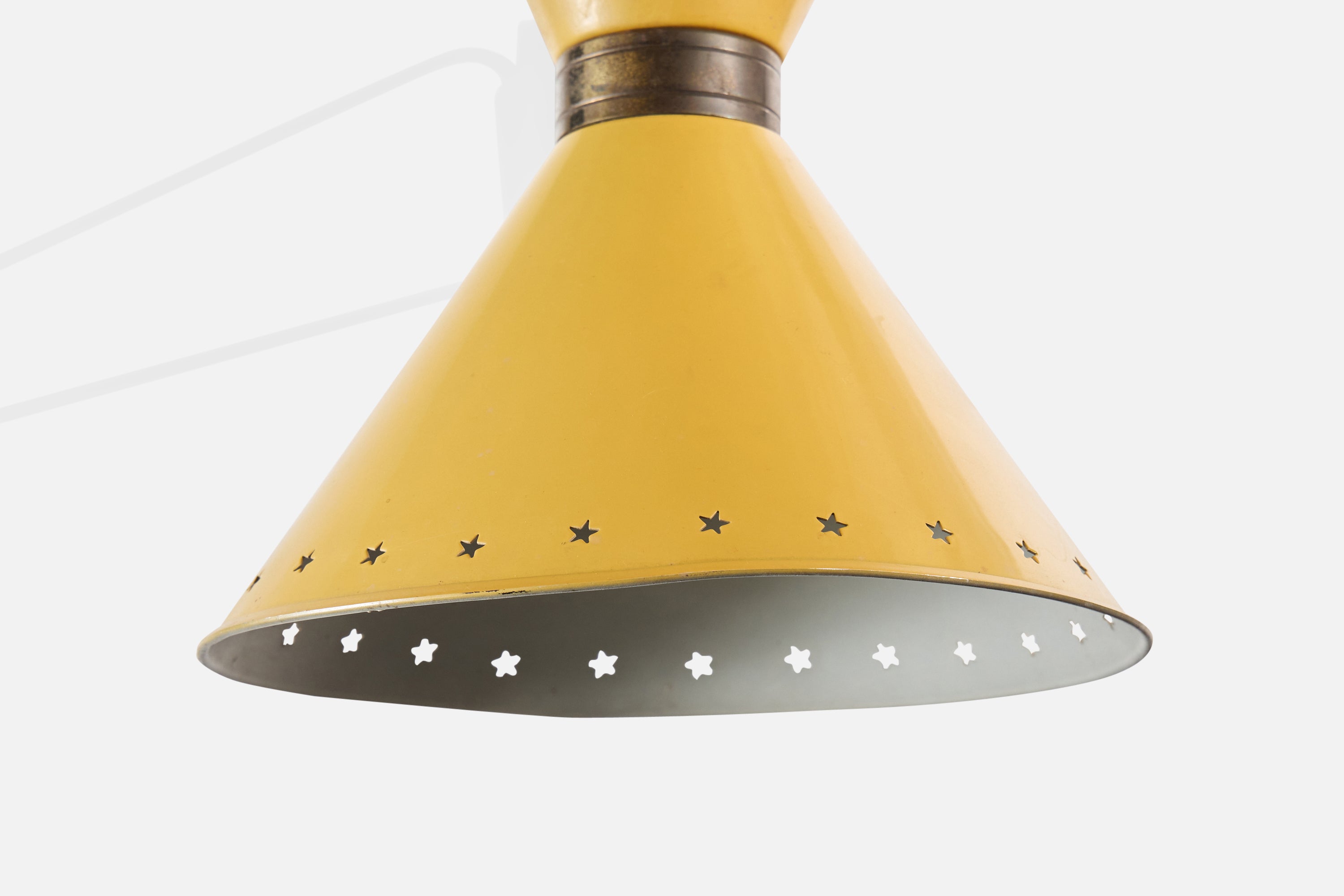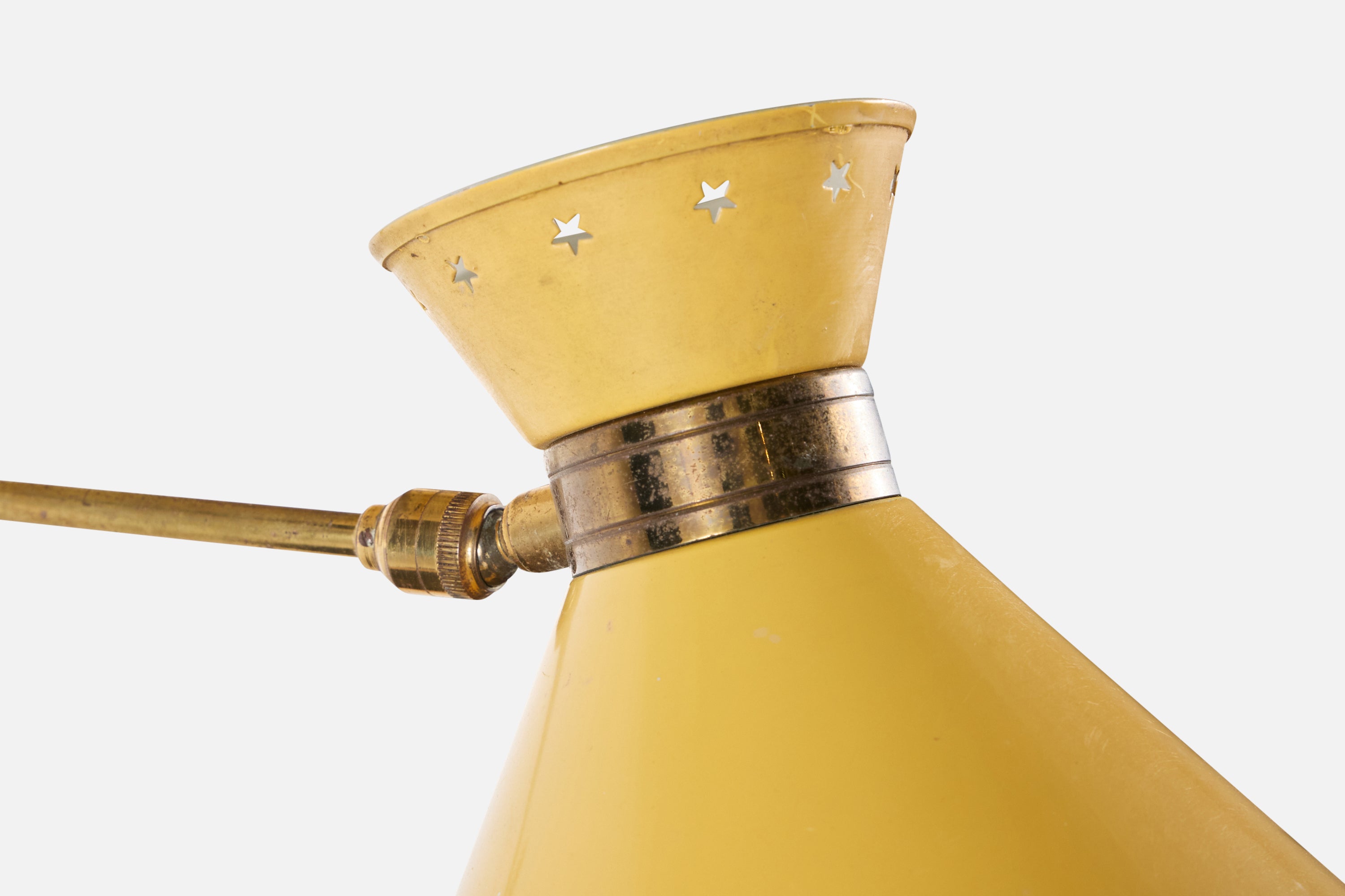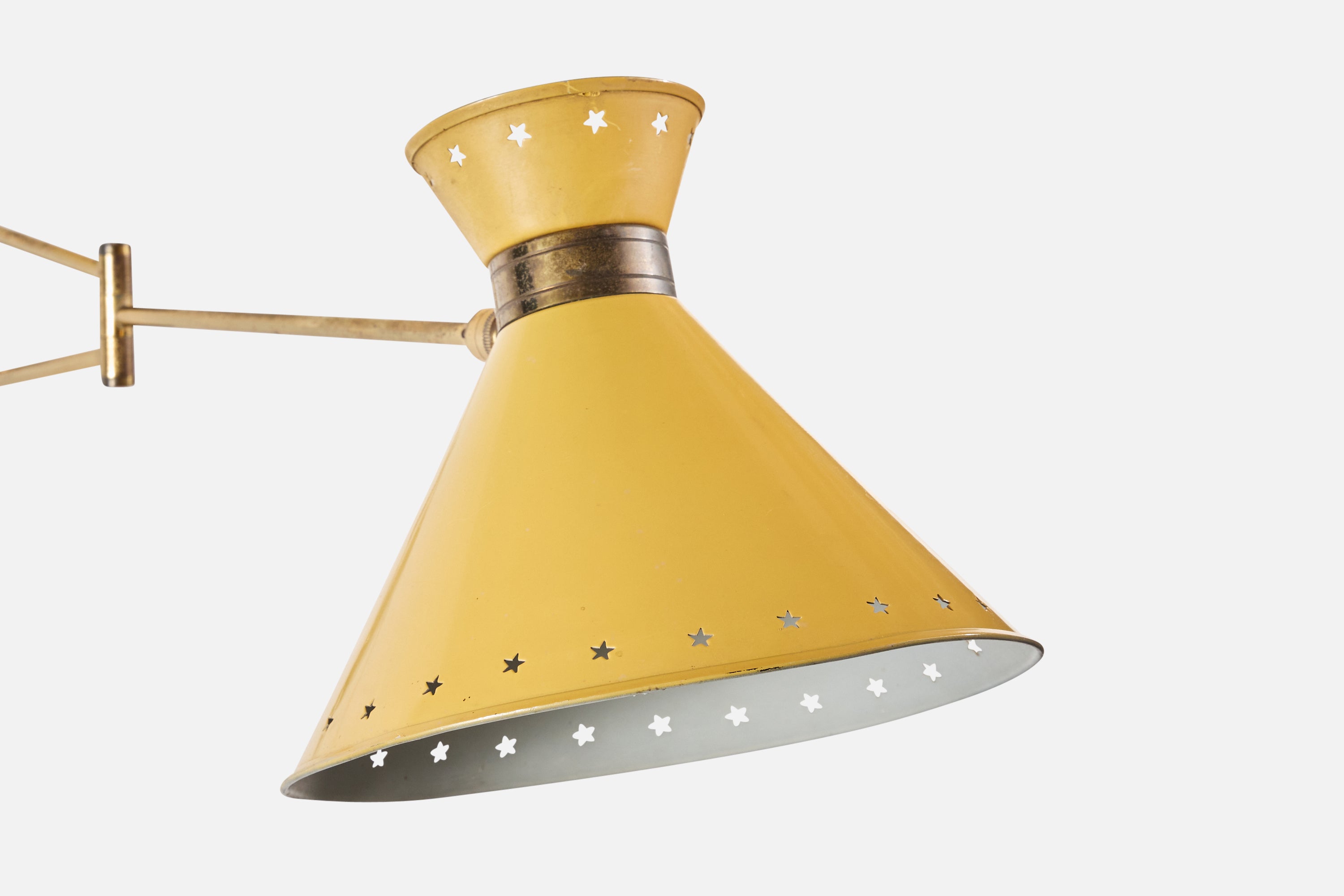 An adjustable brass and yellow-lacquered metal wall light designed and produced in France, c. 1950s.