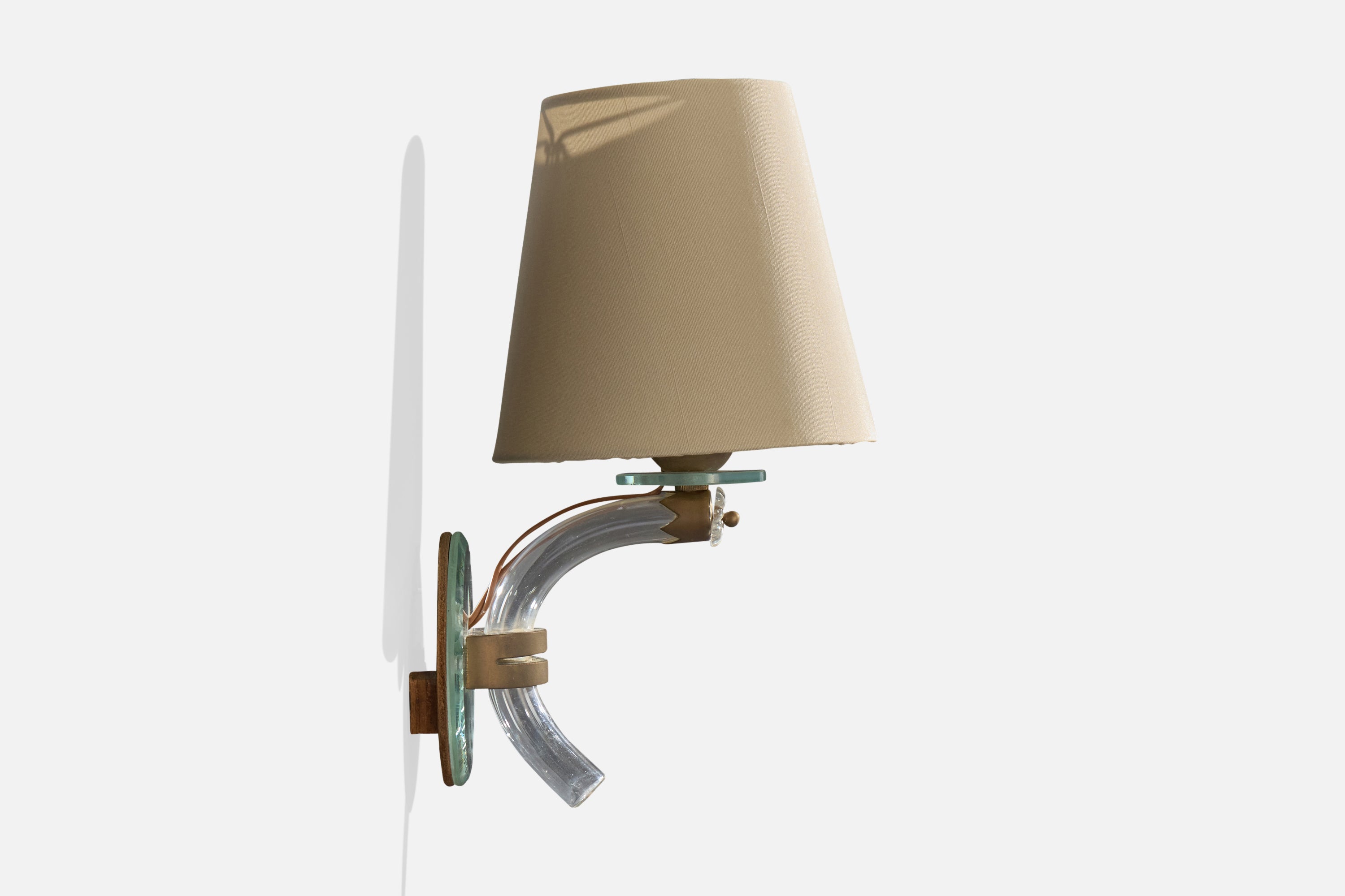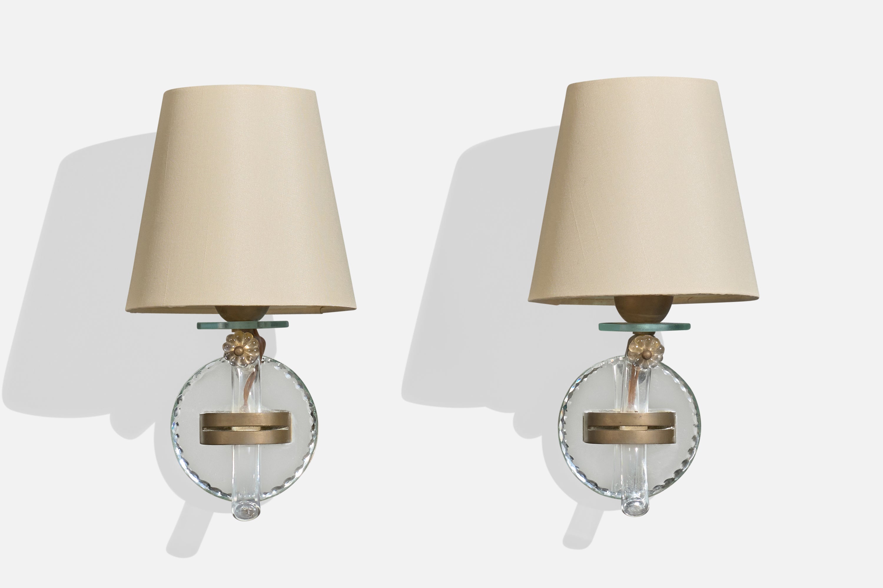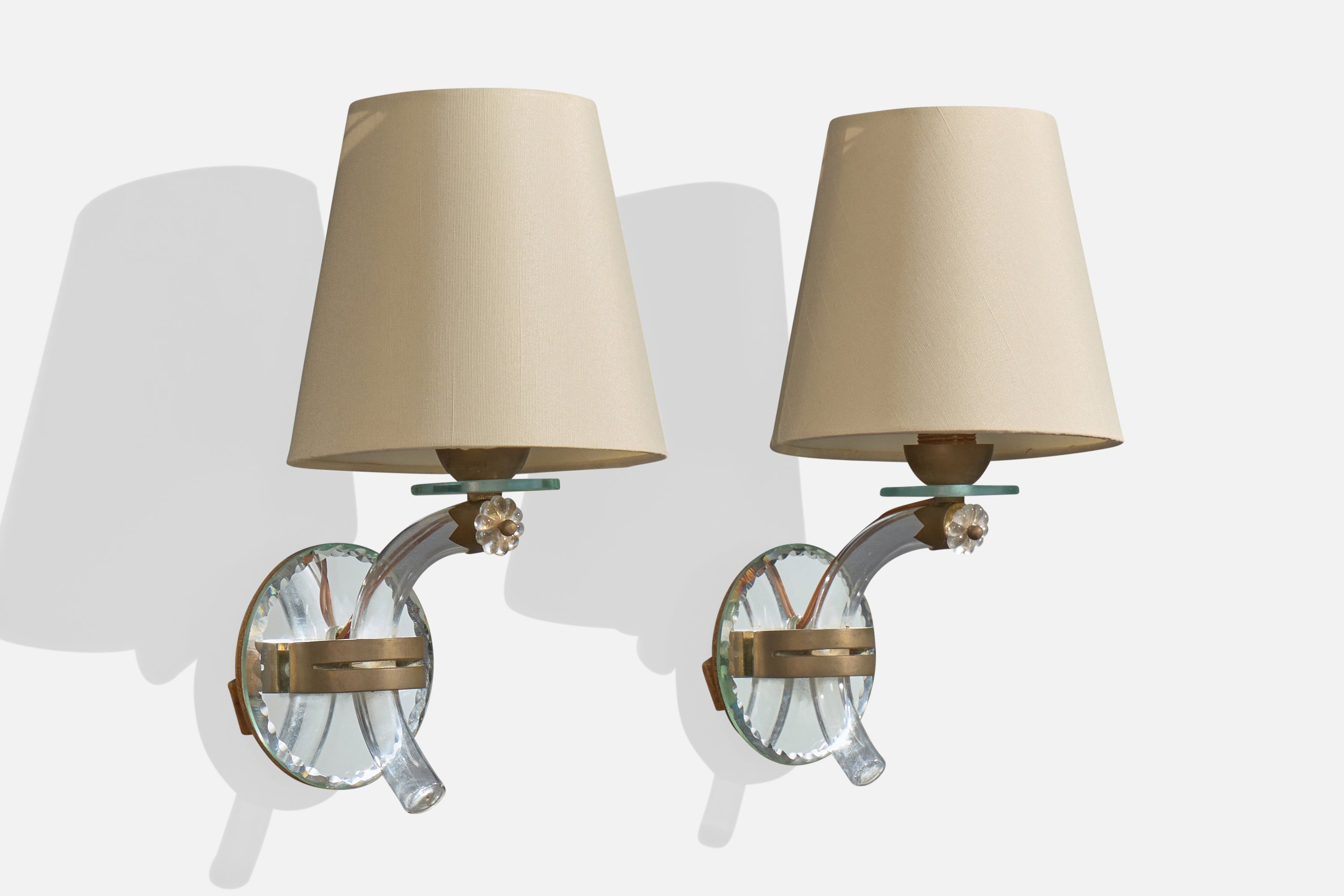 French Designer, Wall Lights, Acrylic, Brass, Glass, Mirror, Fabric, France, 1950s