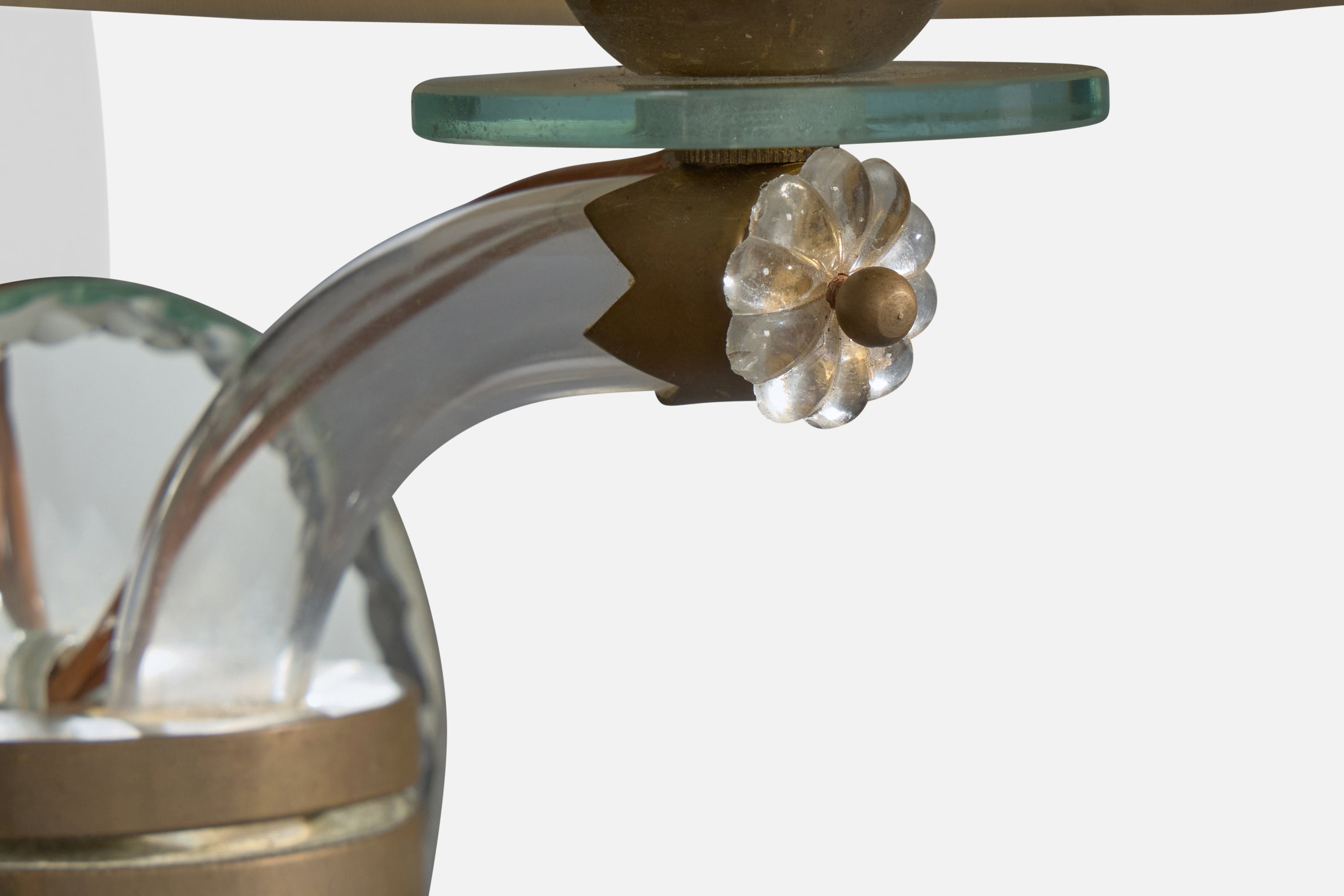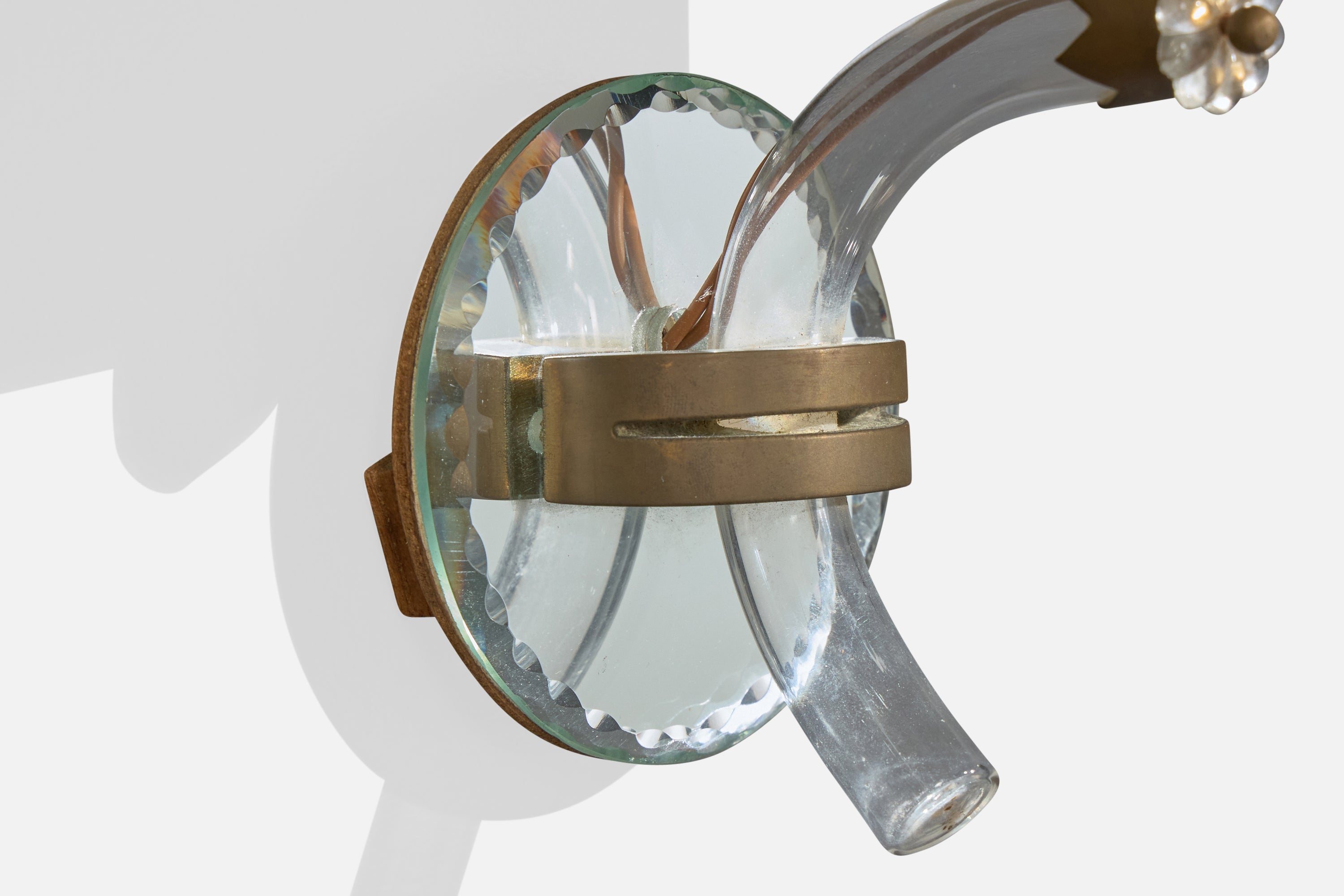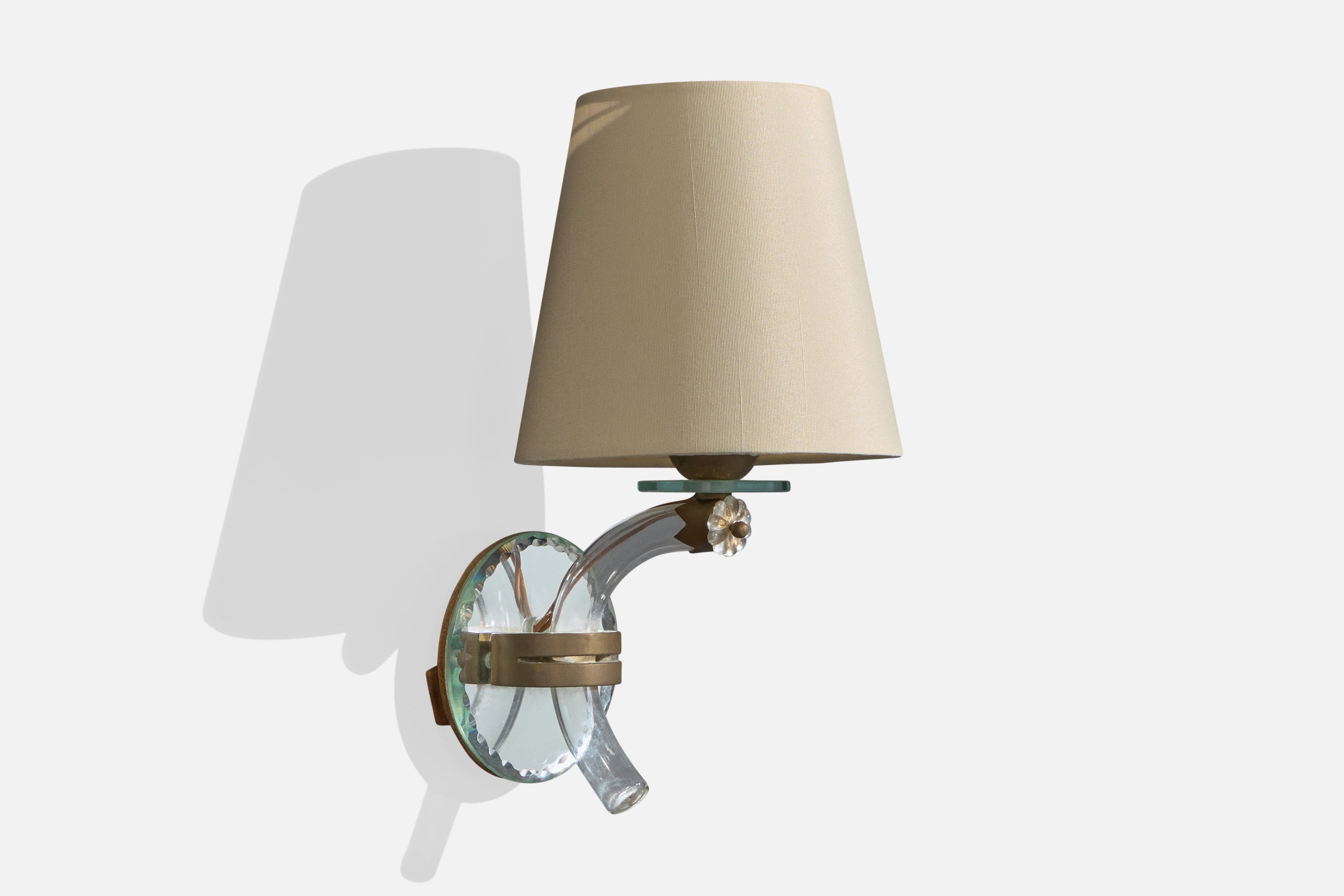 French Designer, Wall Lights, Acrylic, Brass, Glass, Mirror, Fabric, France, 1950s