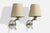 A pair of acrylic, brass, mirror, glass and cream-white fabric wall lights designed and produced in France, c. 1950s