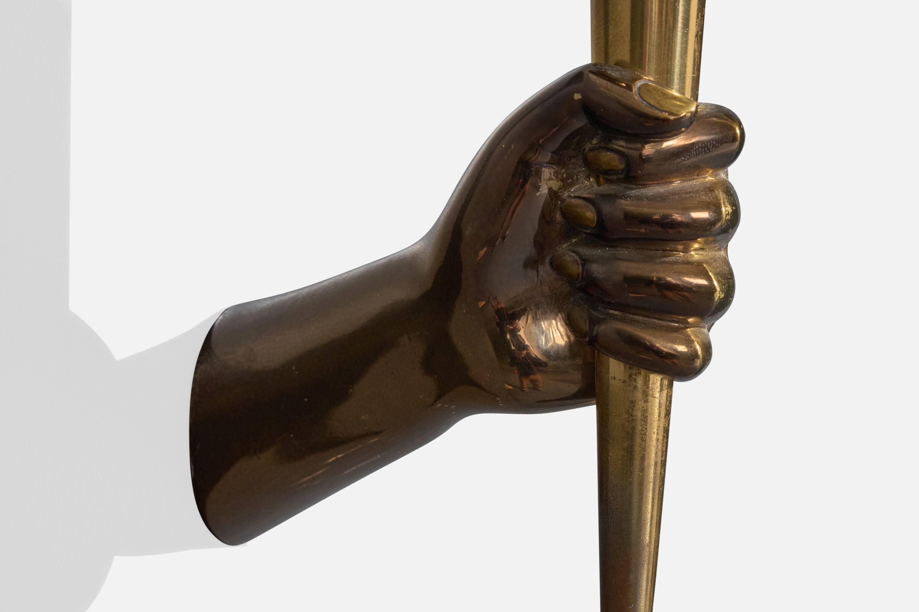 French Designer, Wall Lights, Brass, Glass, France, 1950s