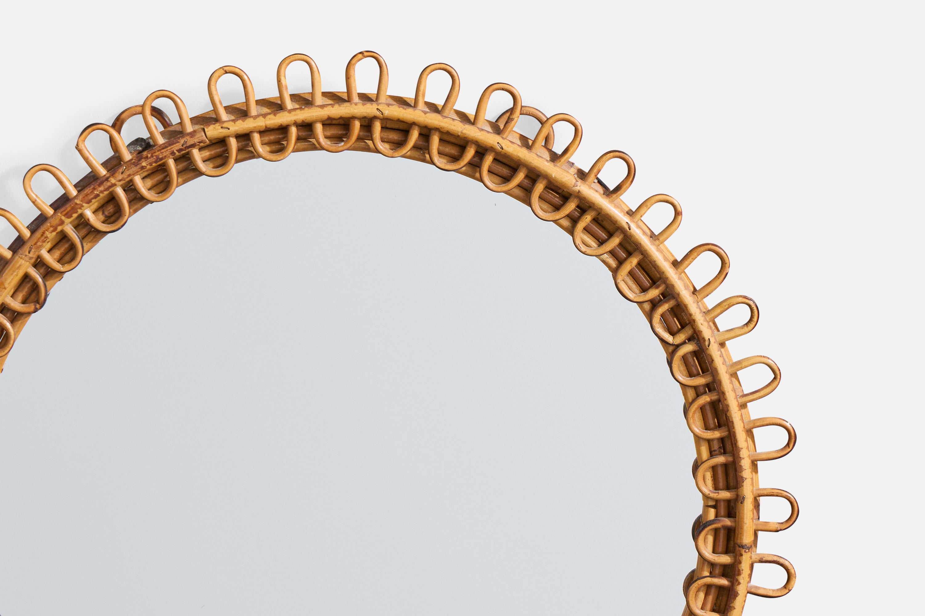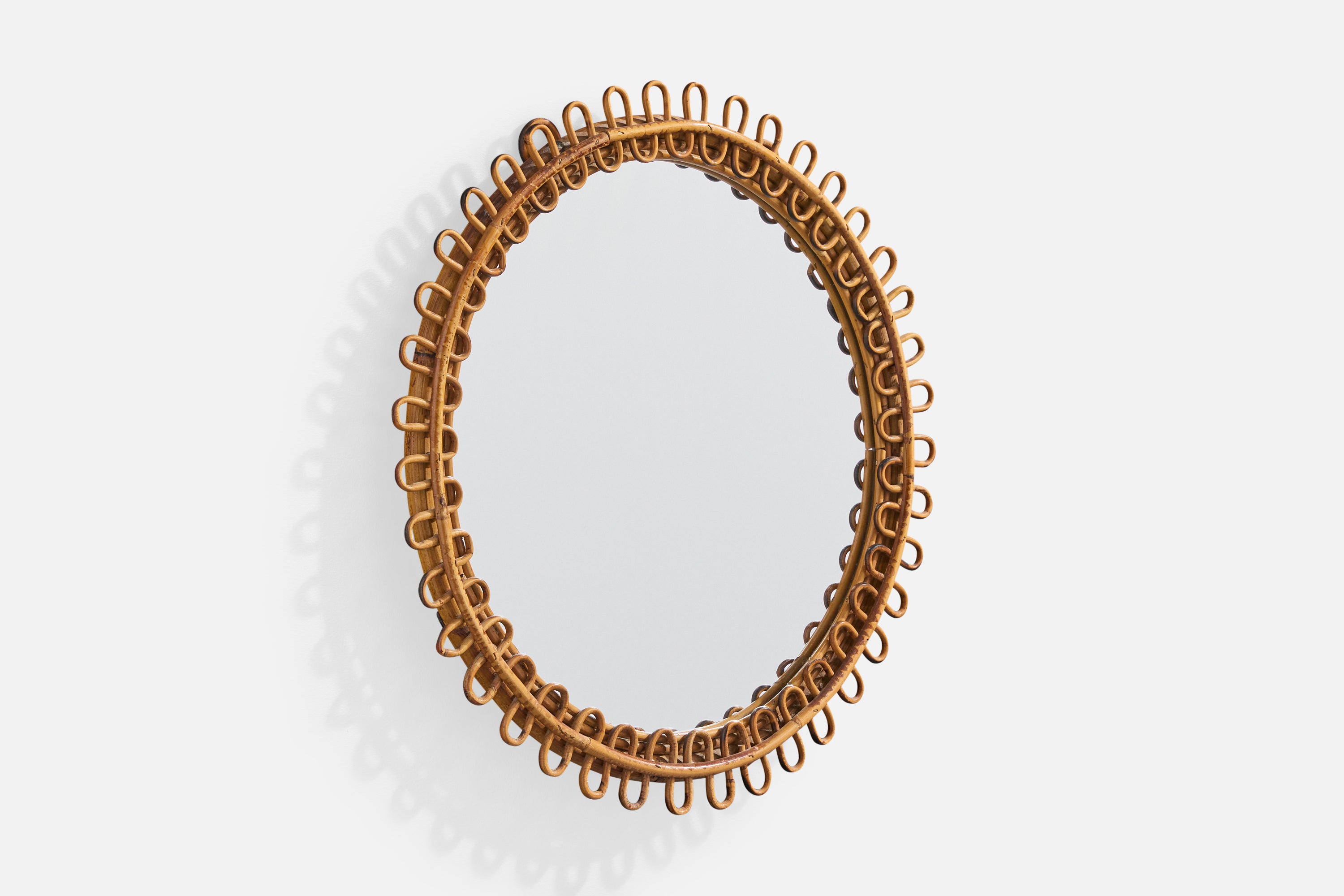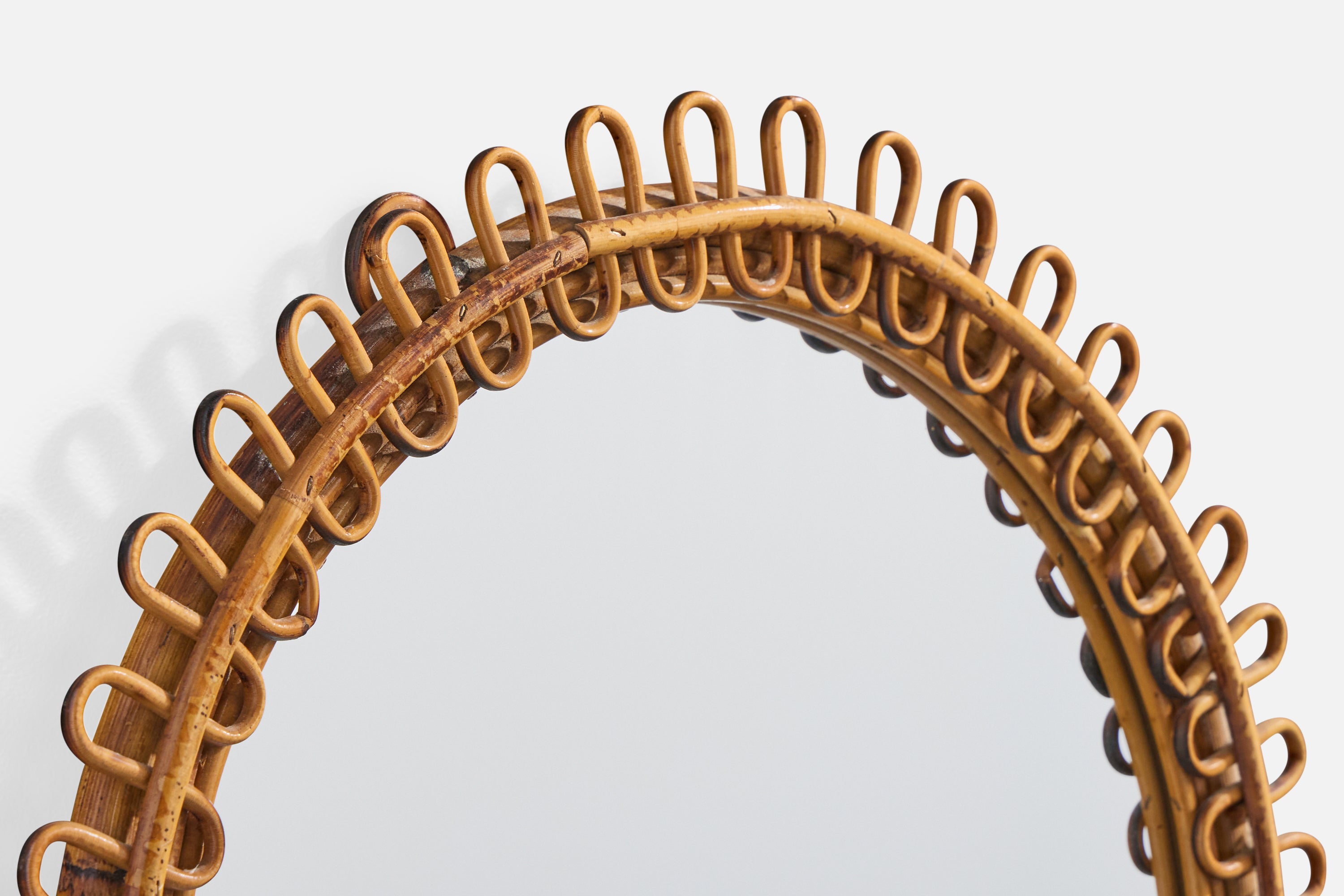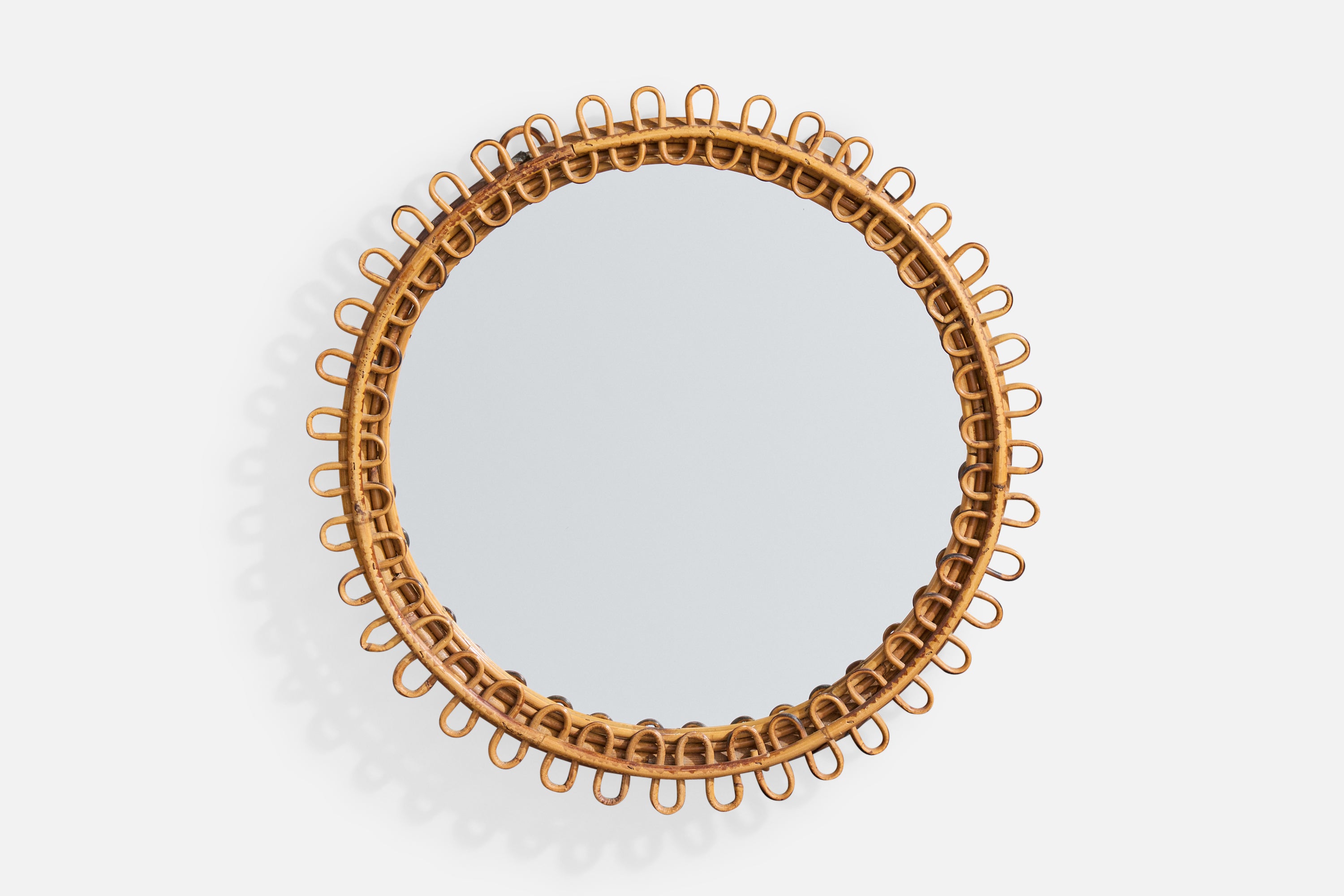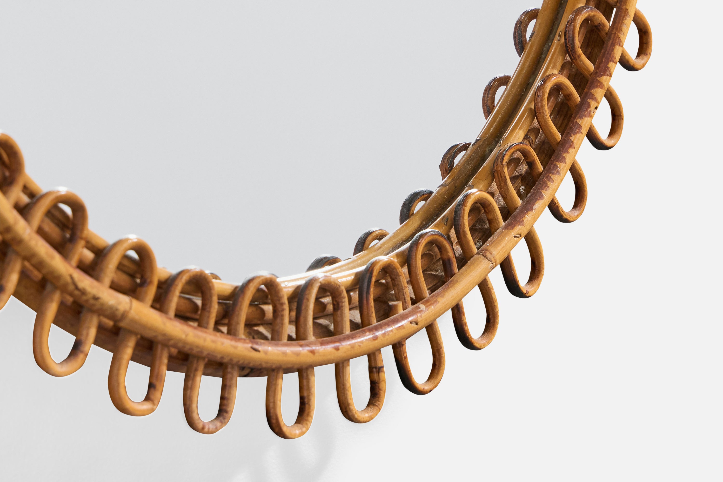 Italian Designer, Wall Mirror, Bamboo, Rattan, Italy, 1960s