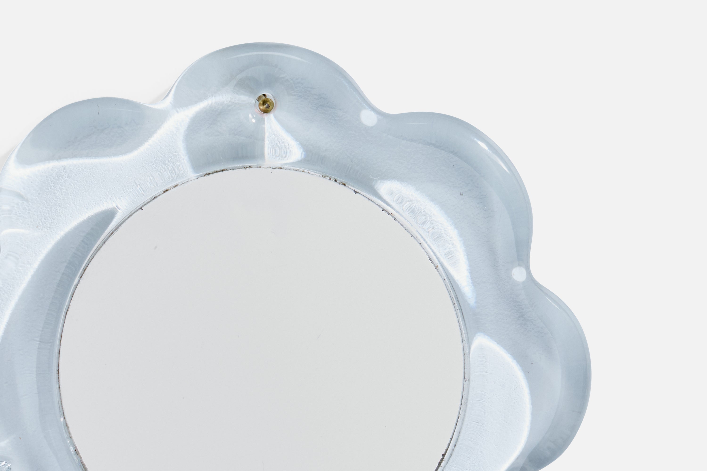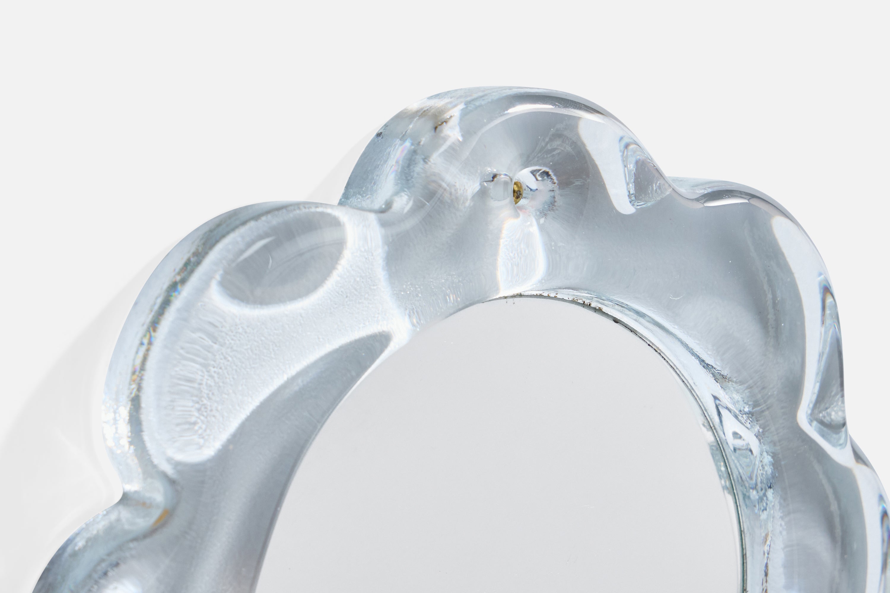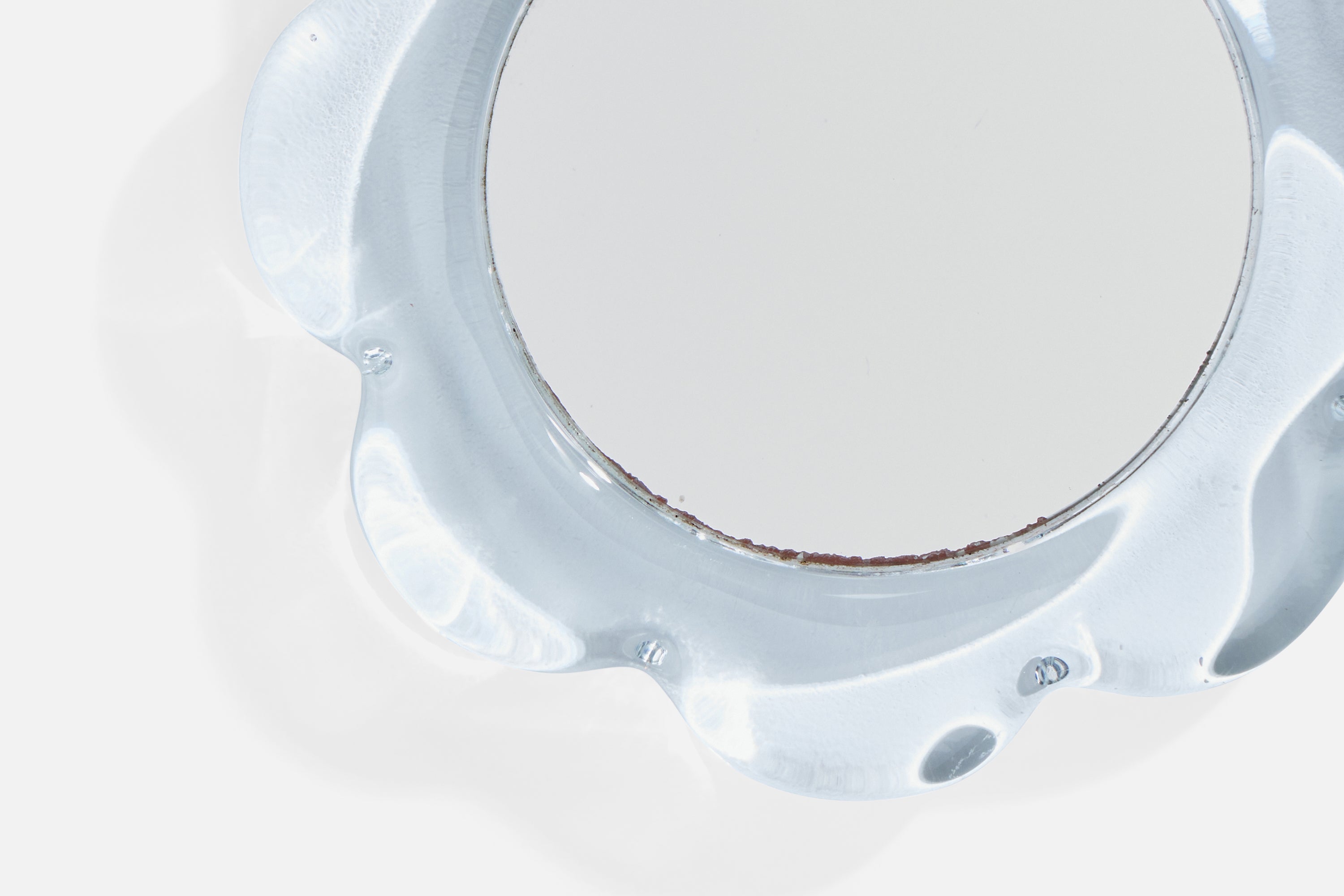 A small blown glass wall mirror produced by Pukebergs Glasbruk, Sweden, c. 1970s.