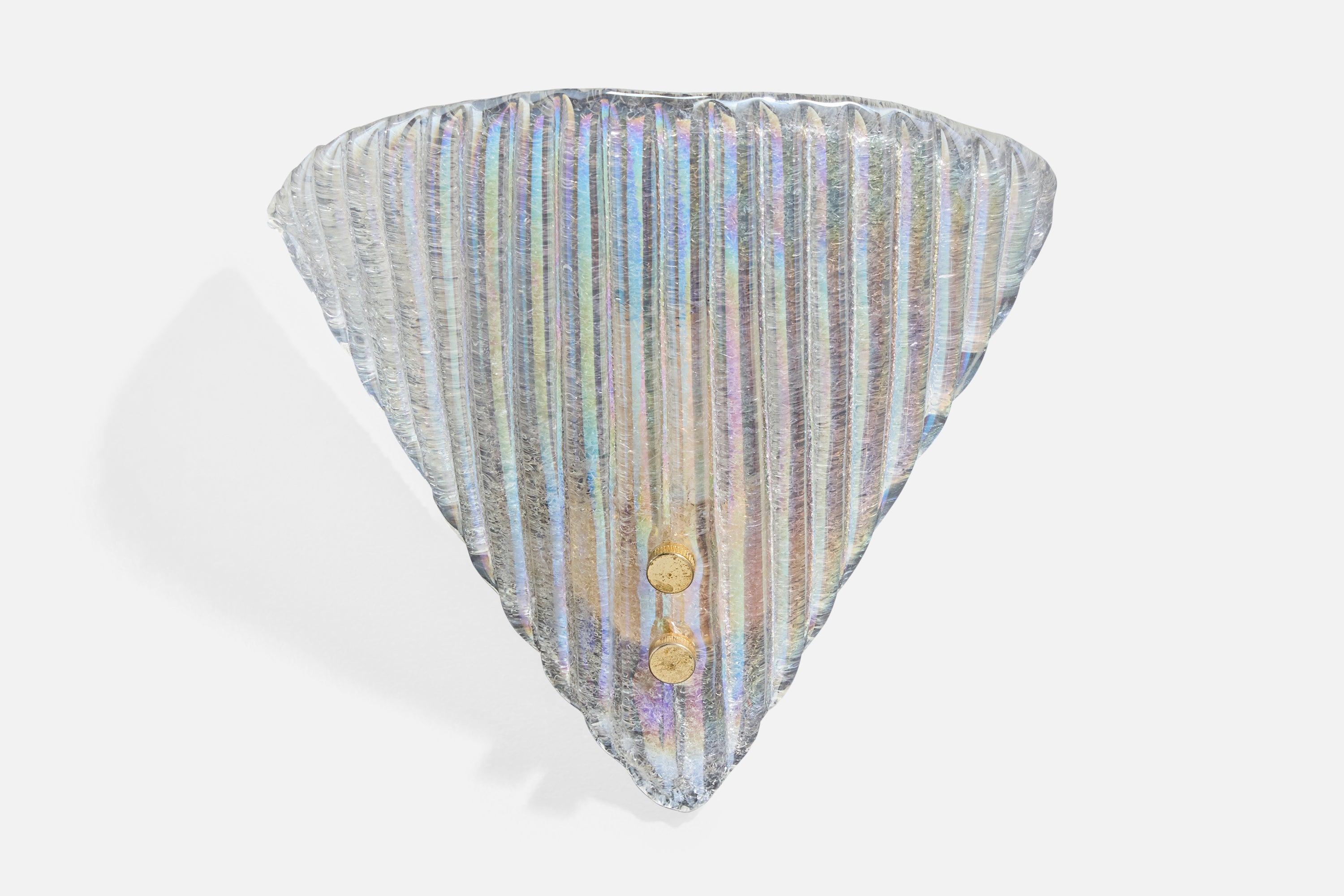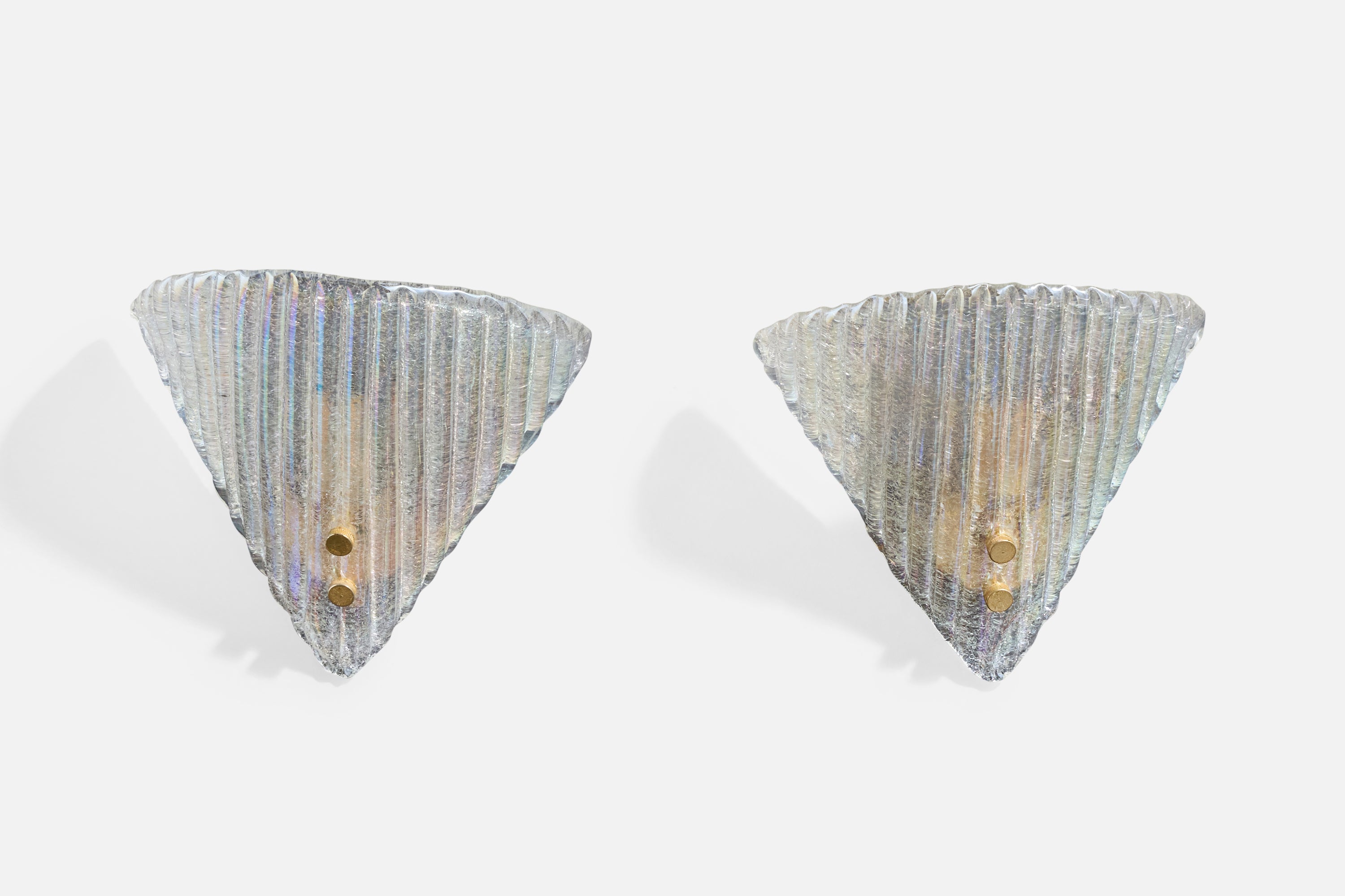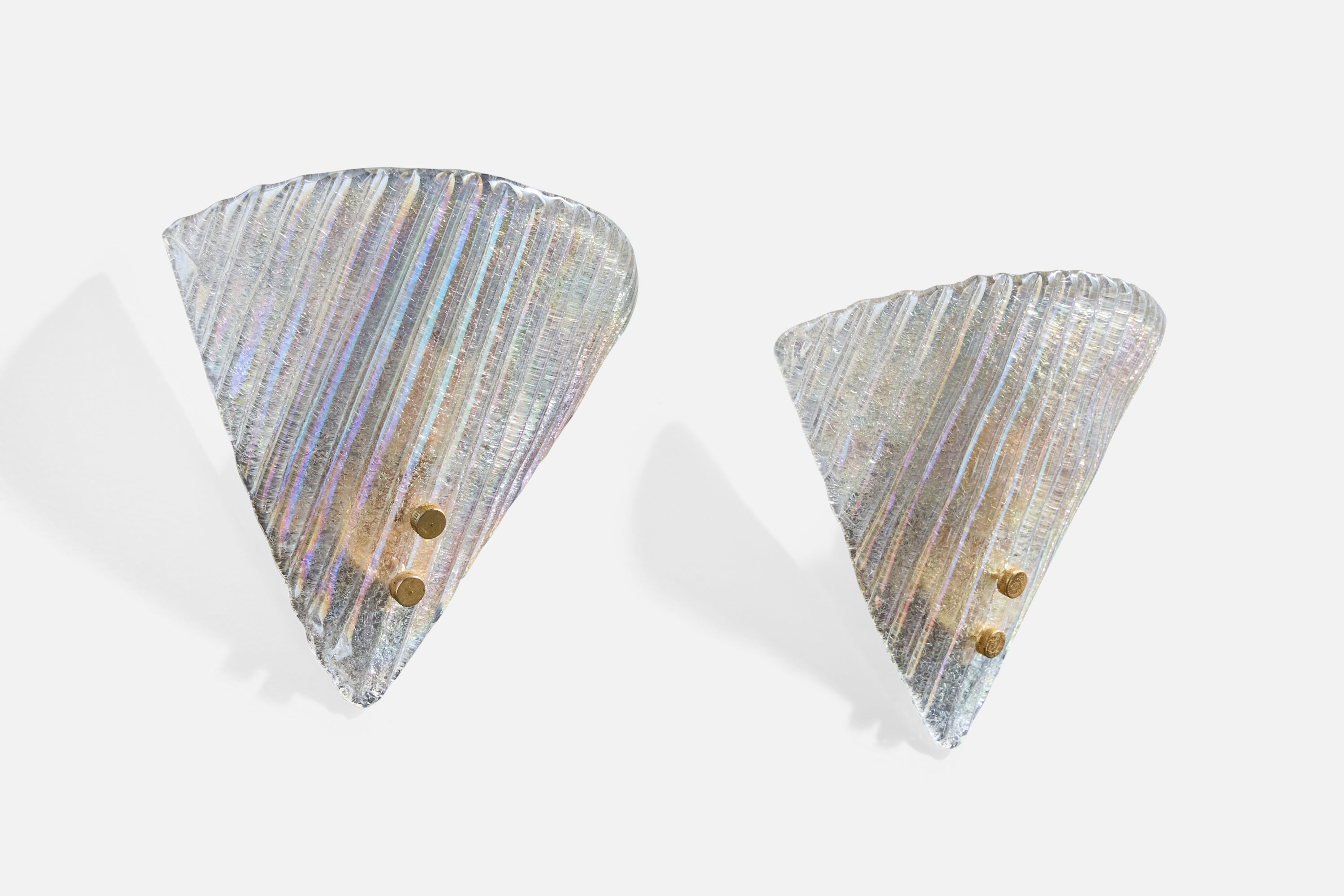 Italian Designer, Wall Lights, Glass, Brass, Italy, 1980s