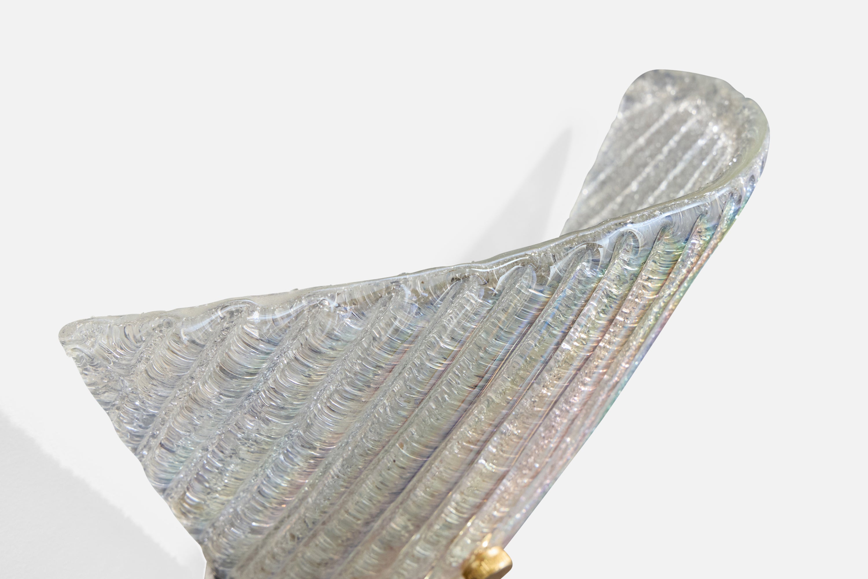 A pair of Murano glass and brass wall lights designed and produced in Italy, c. 1980s.