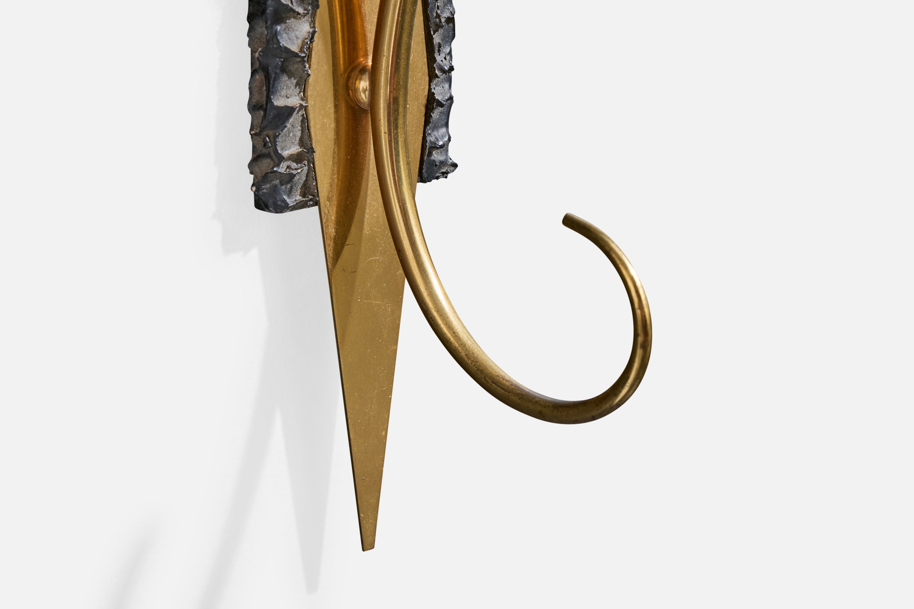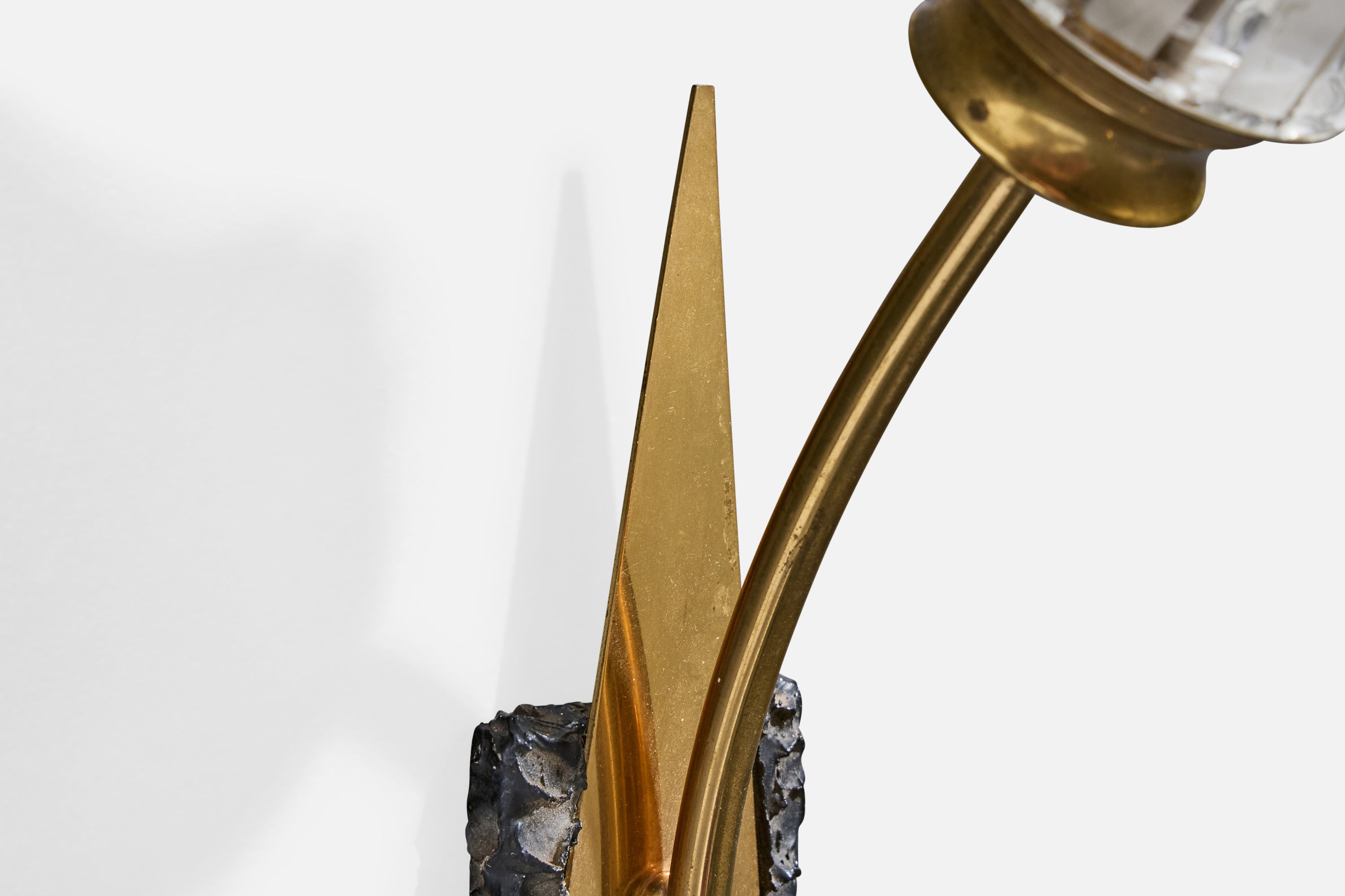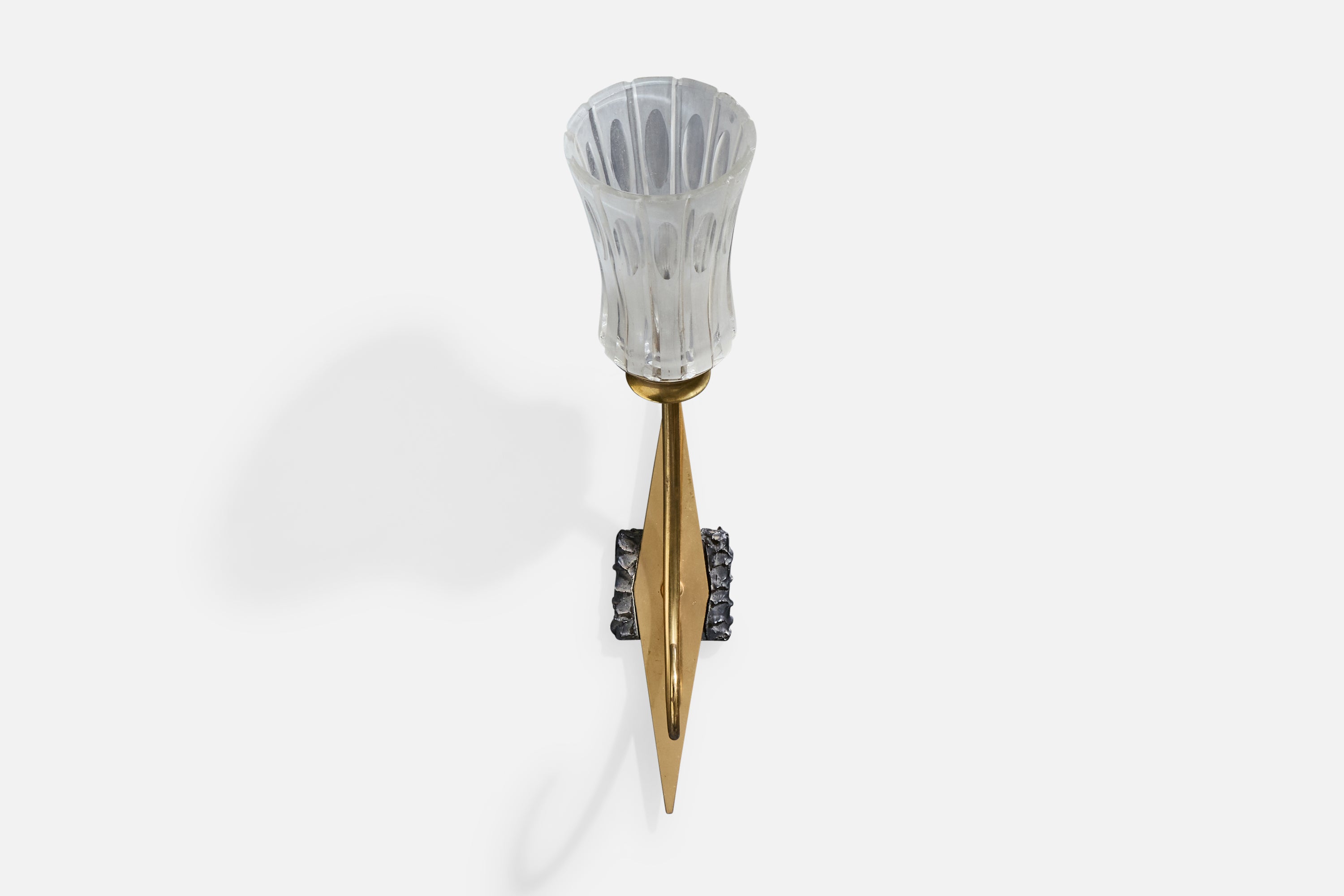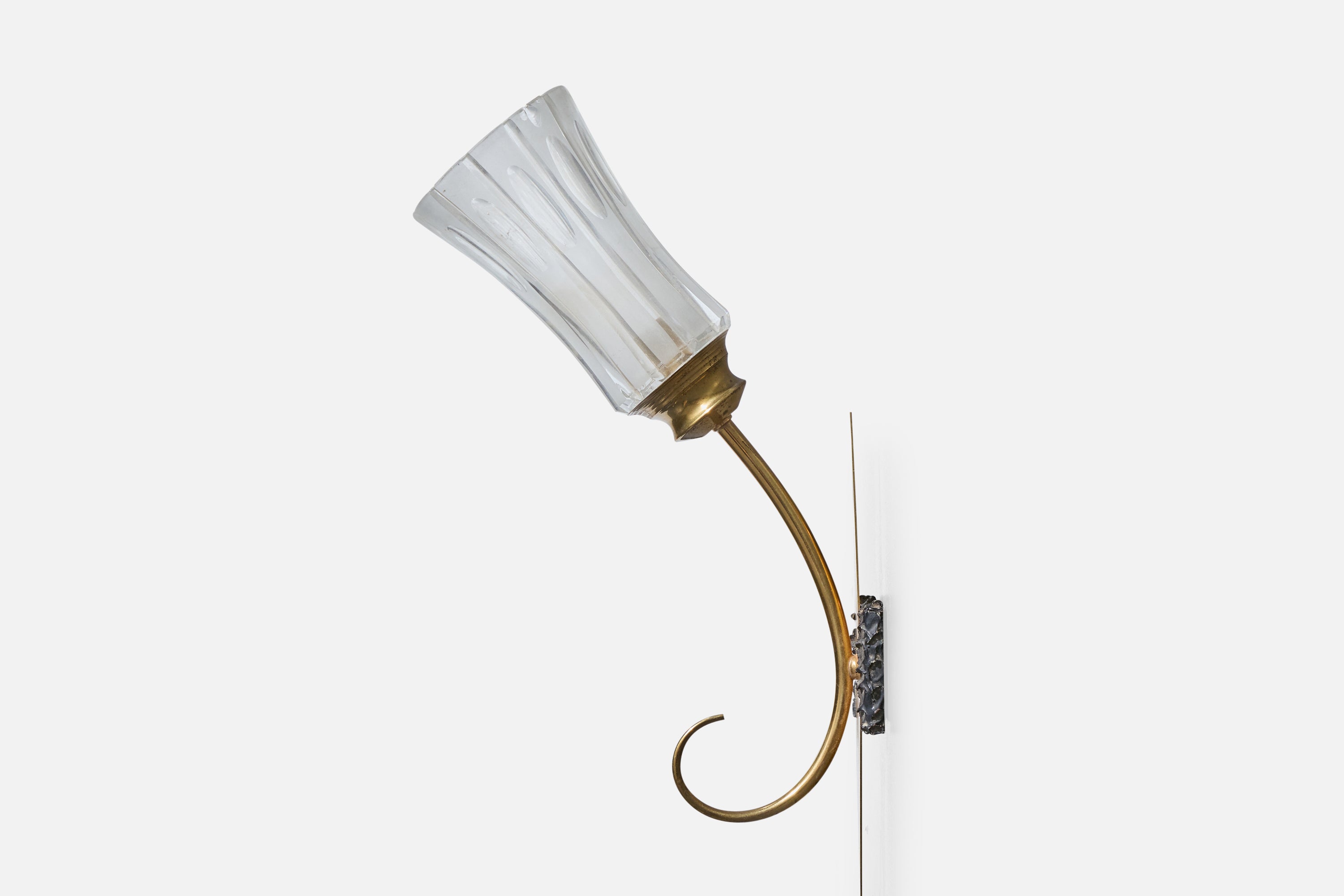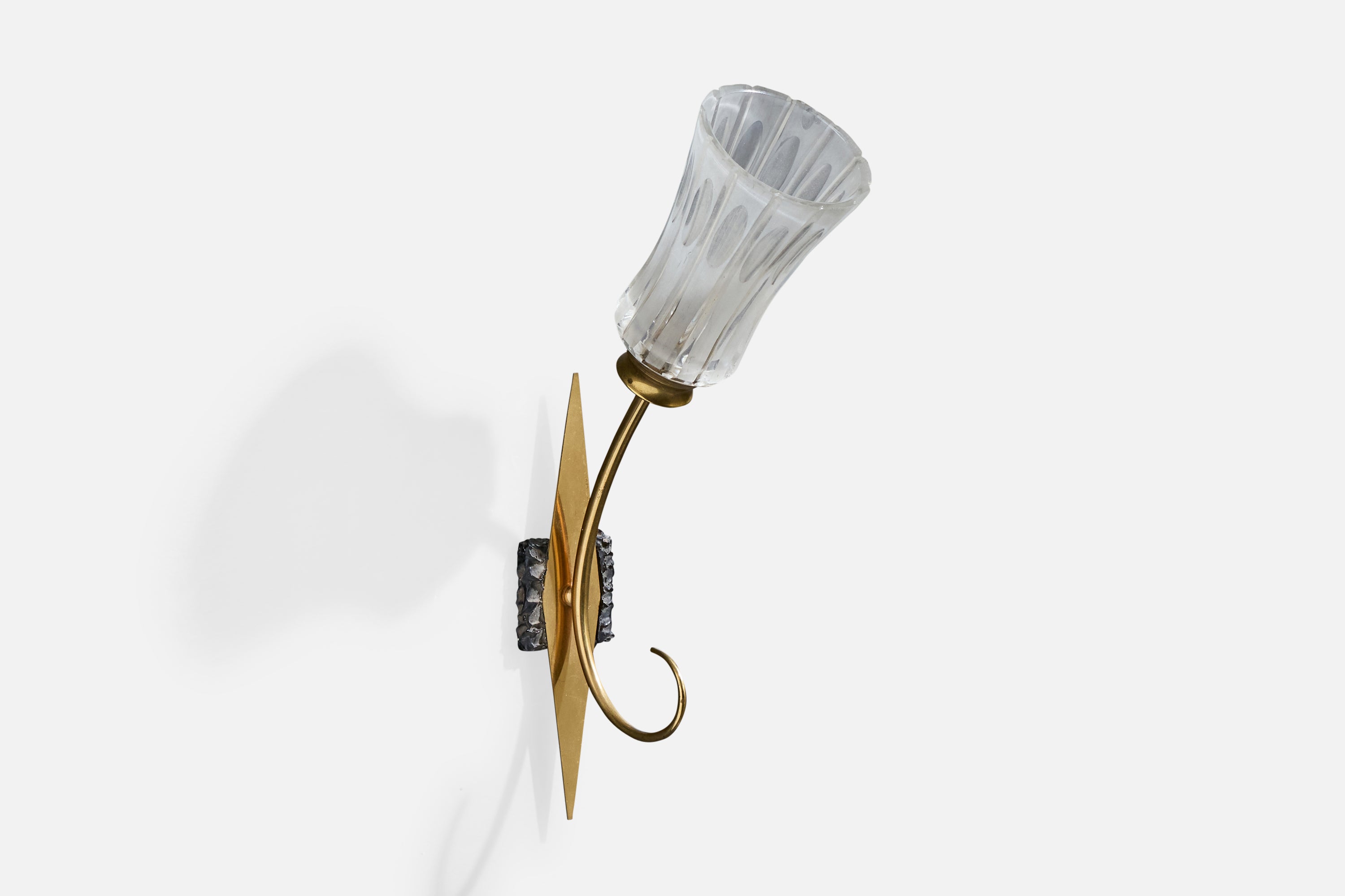 Italian Designer, Wall Lights, Brass, Glass, Metal, Italy, 1950s