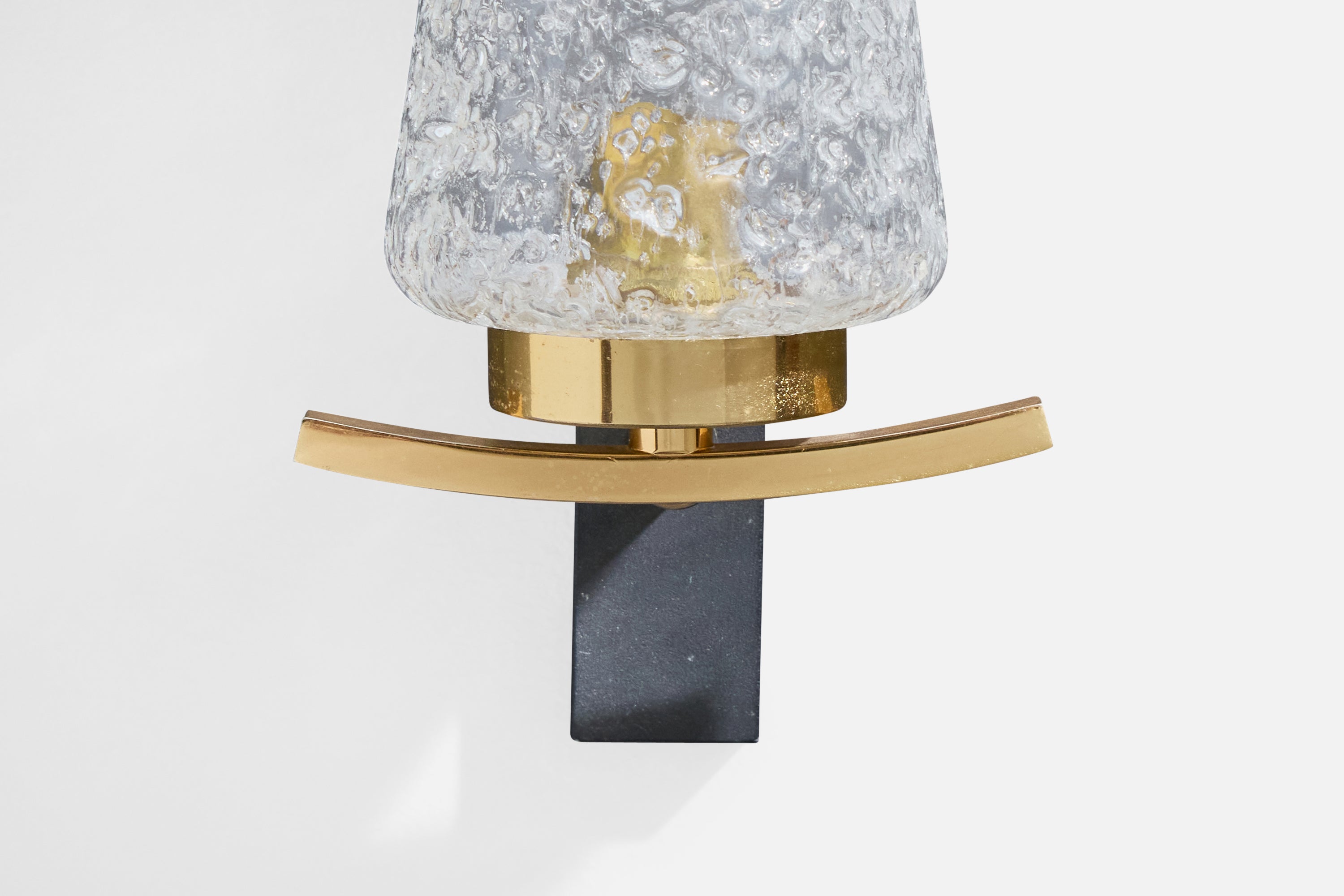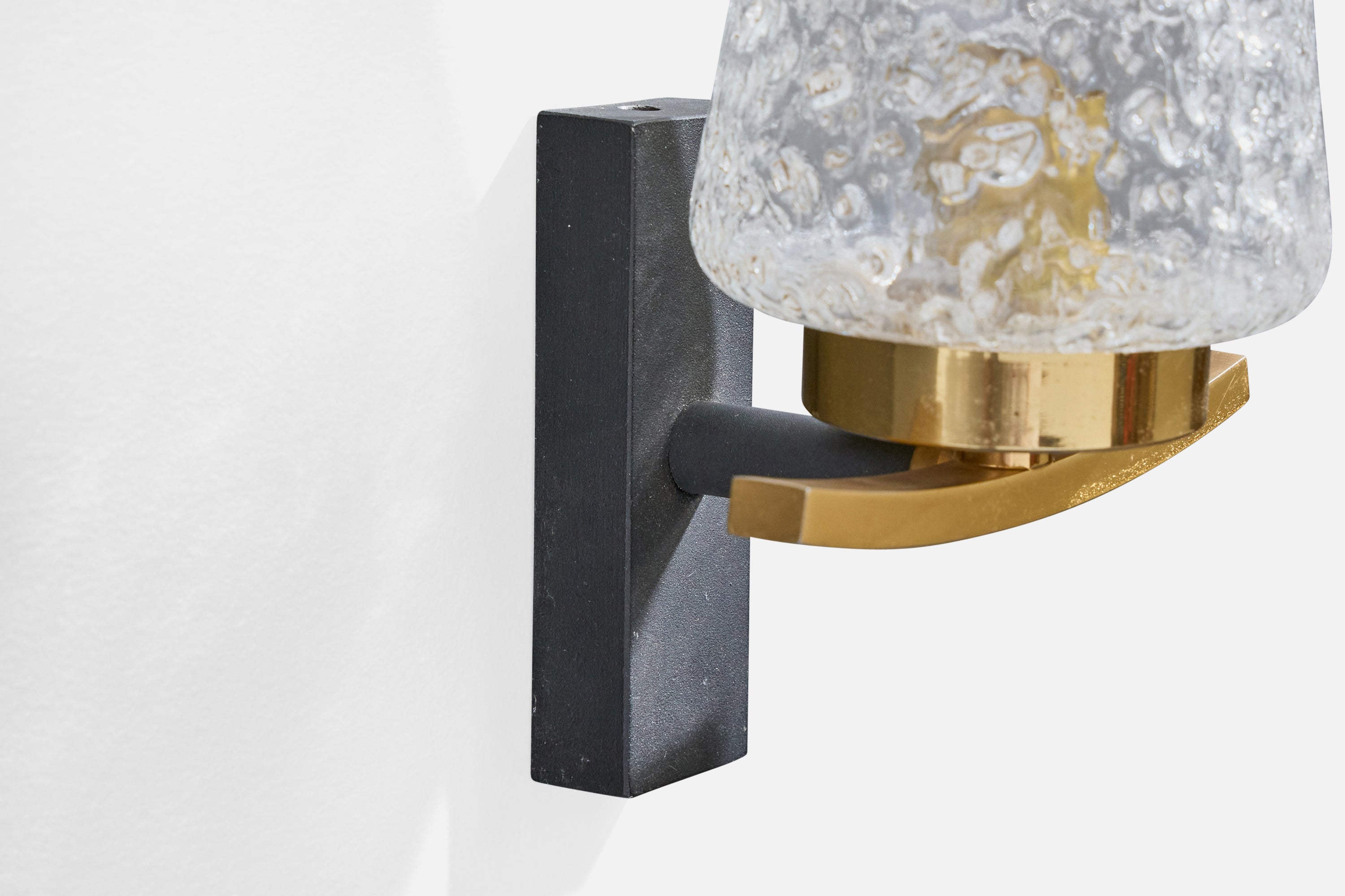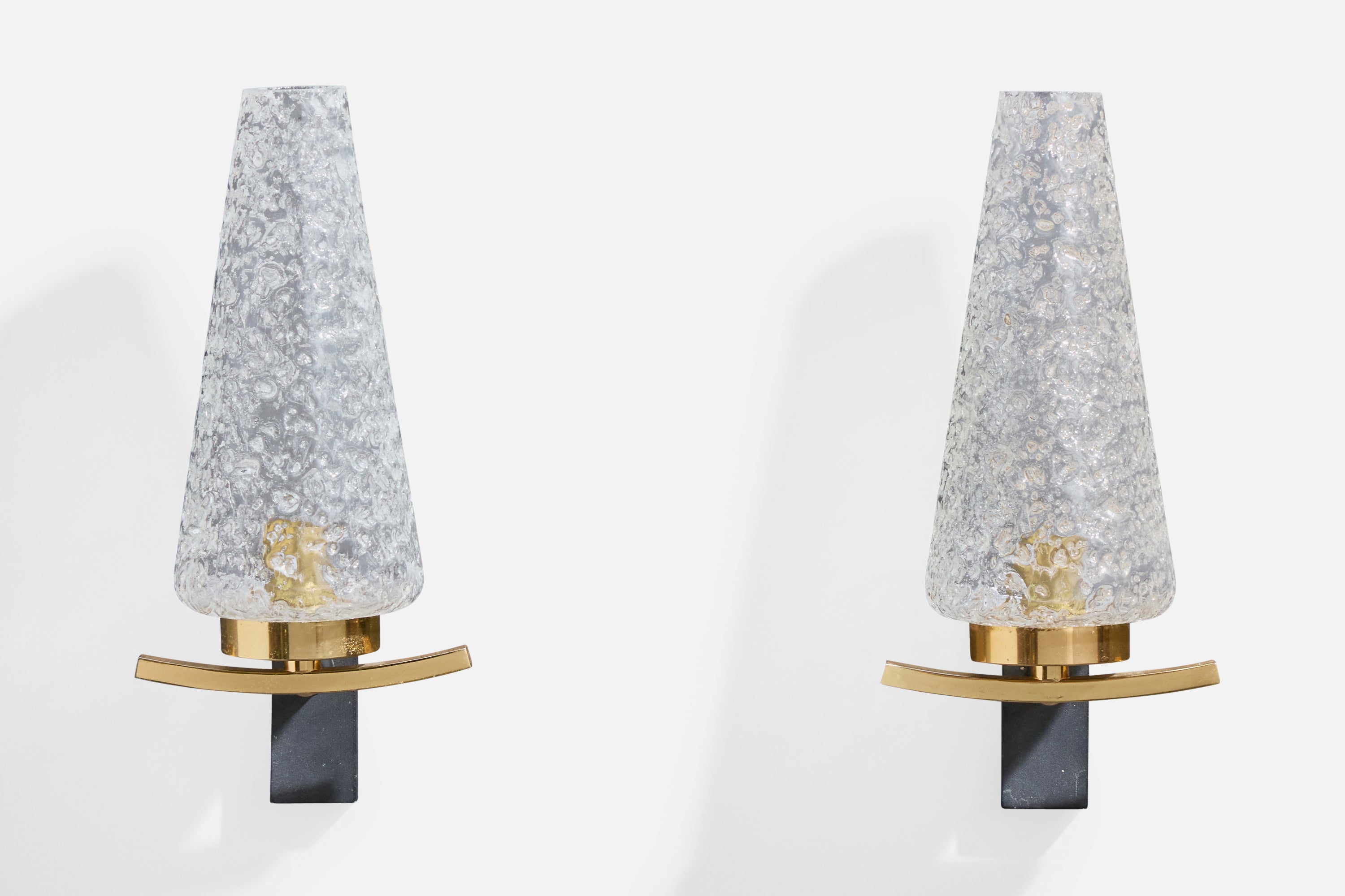 French Designer, Wall Lights, Brass, Metal, Glass, France, 1950s