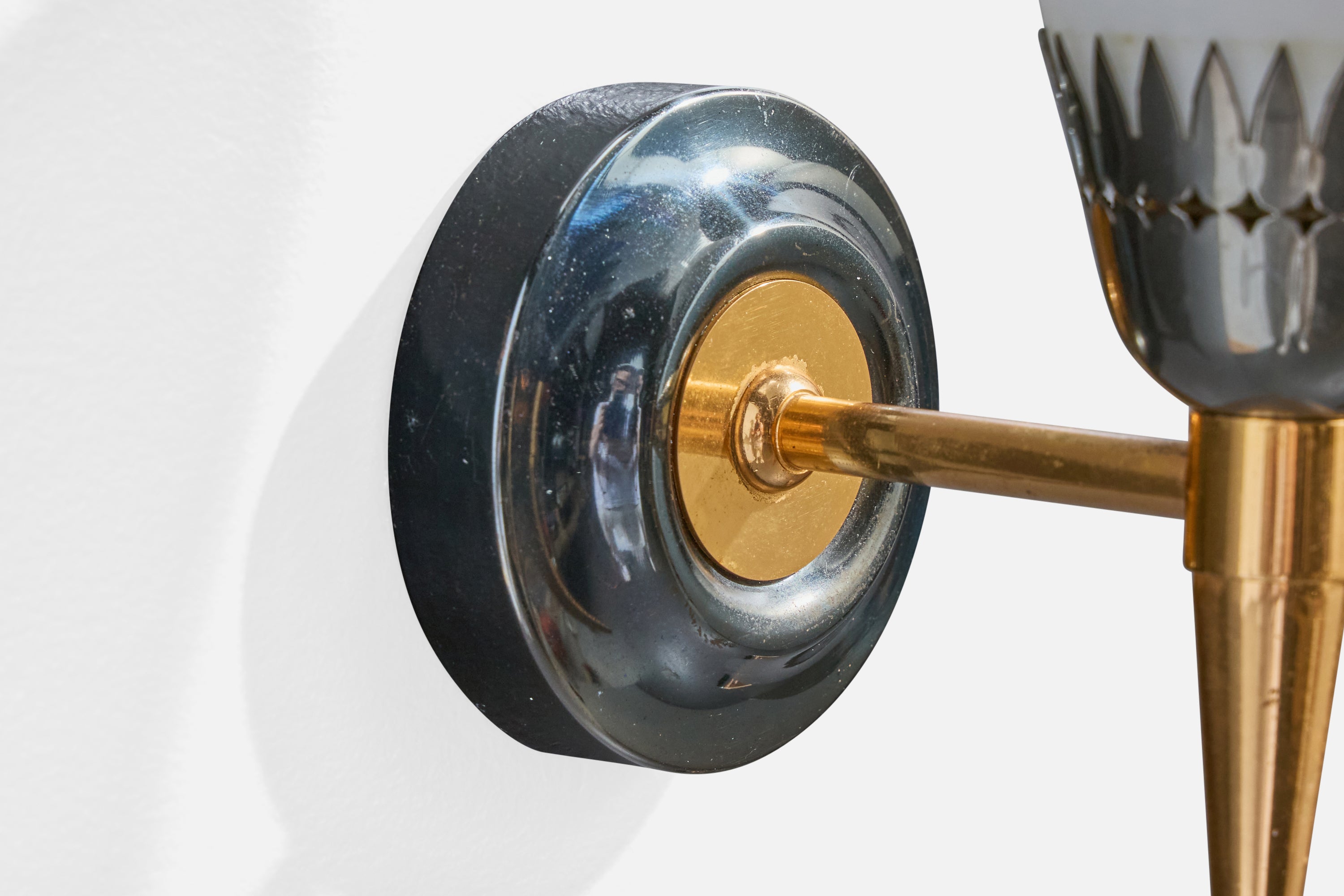 French Designer, Wall Lights, Brass, Metal, France, 1950s