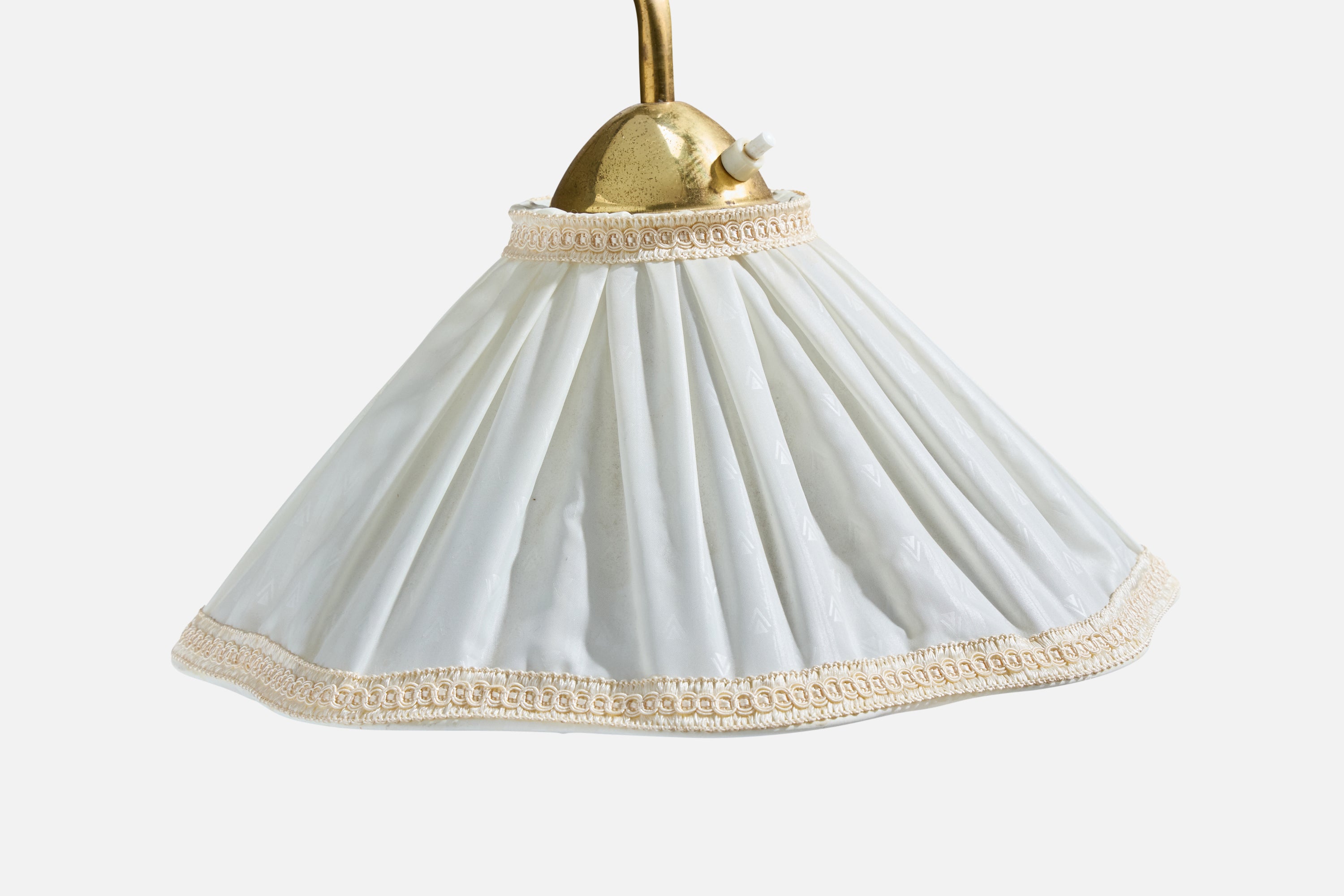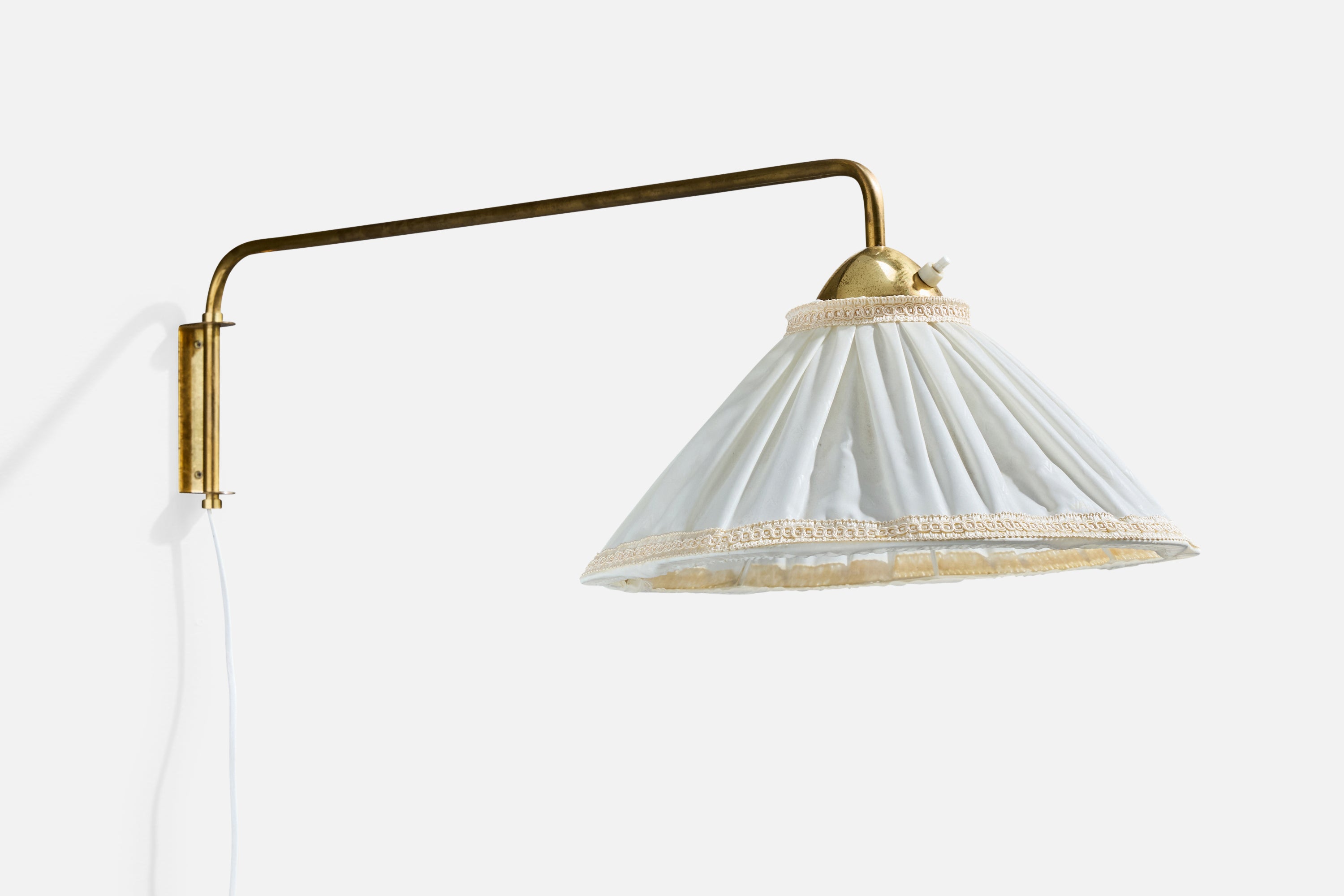 Swedish Designer, Wall Light, Brass, Fabric, Sweden, 1940s
