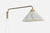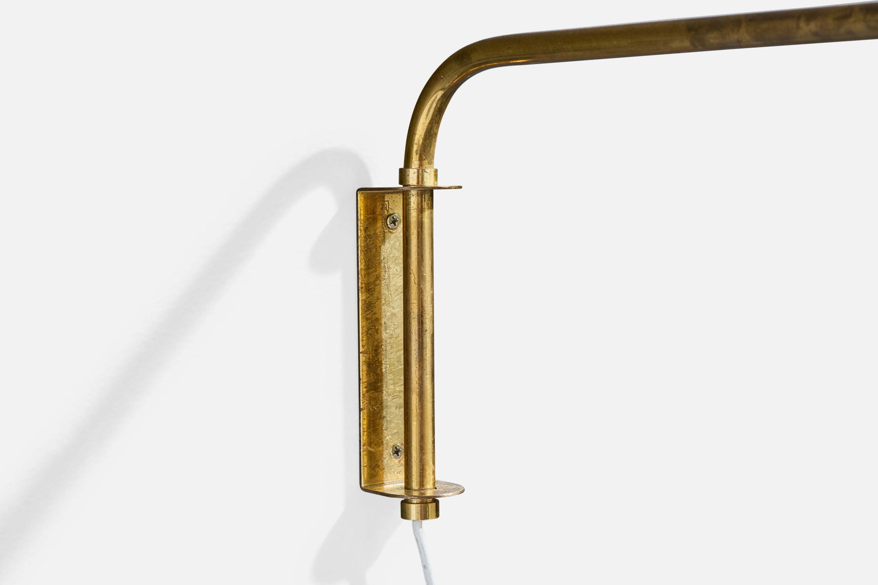 An adjustable brass and white fabric wall light designed and produced in Sweden, c. 1940s.