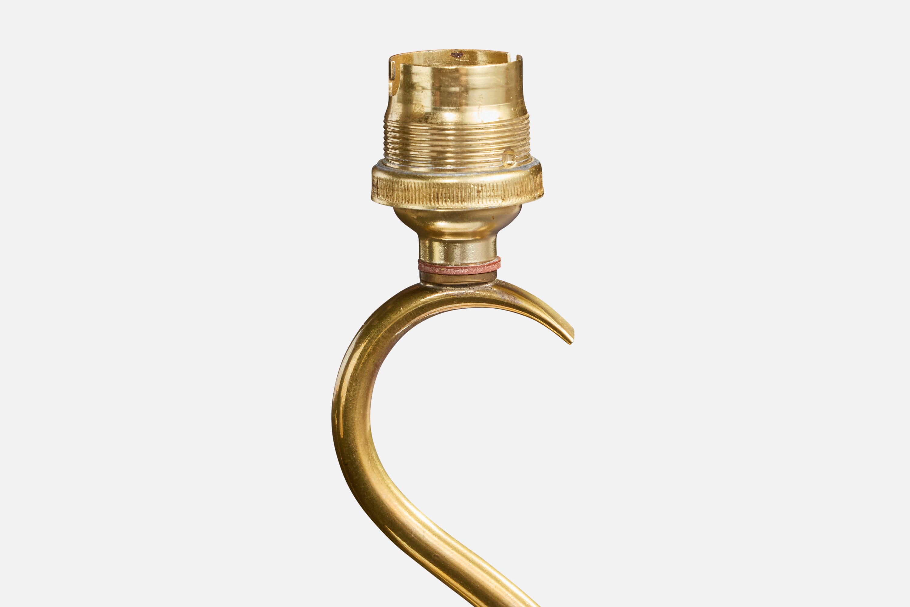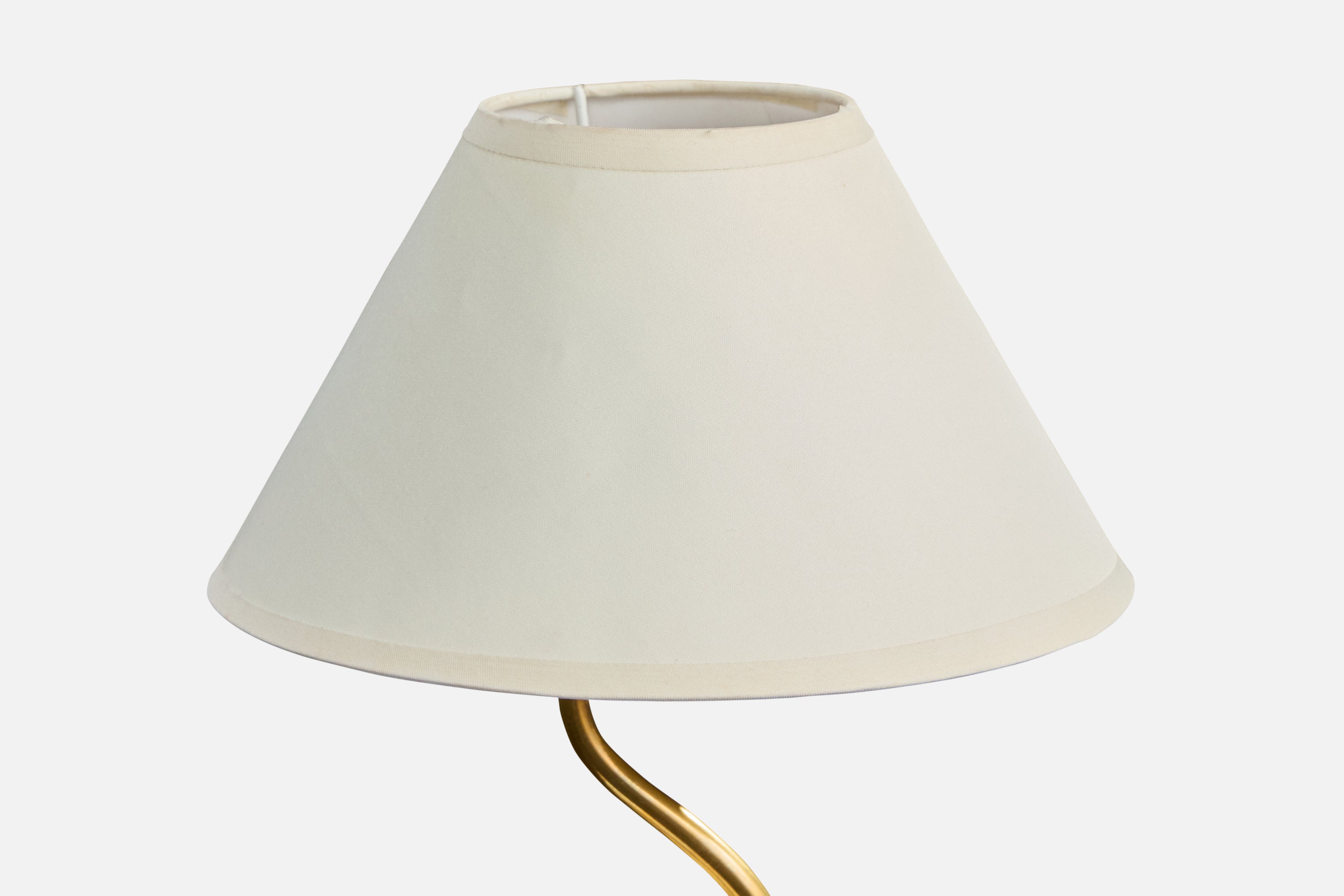 French Designer, Table Lamp, Brass, Ceramic, Fabric, France, 1950s