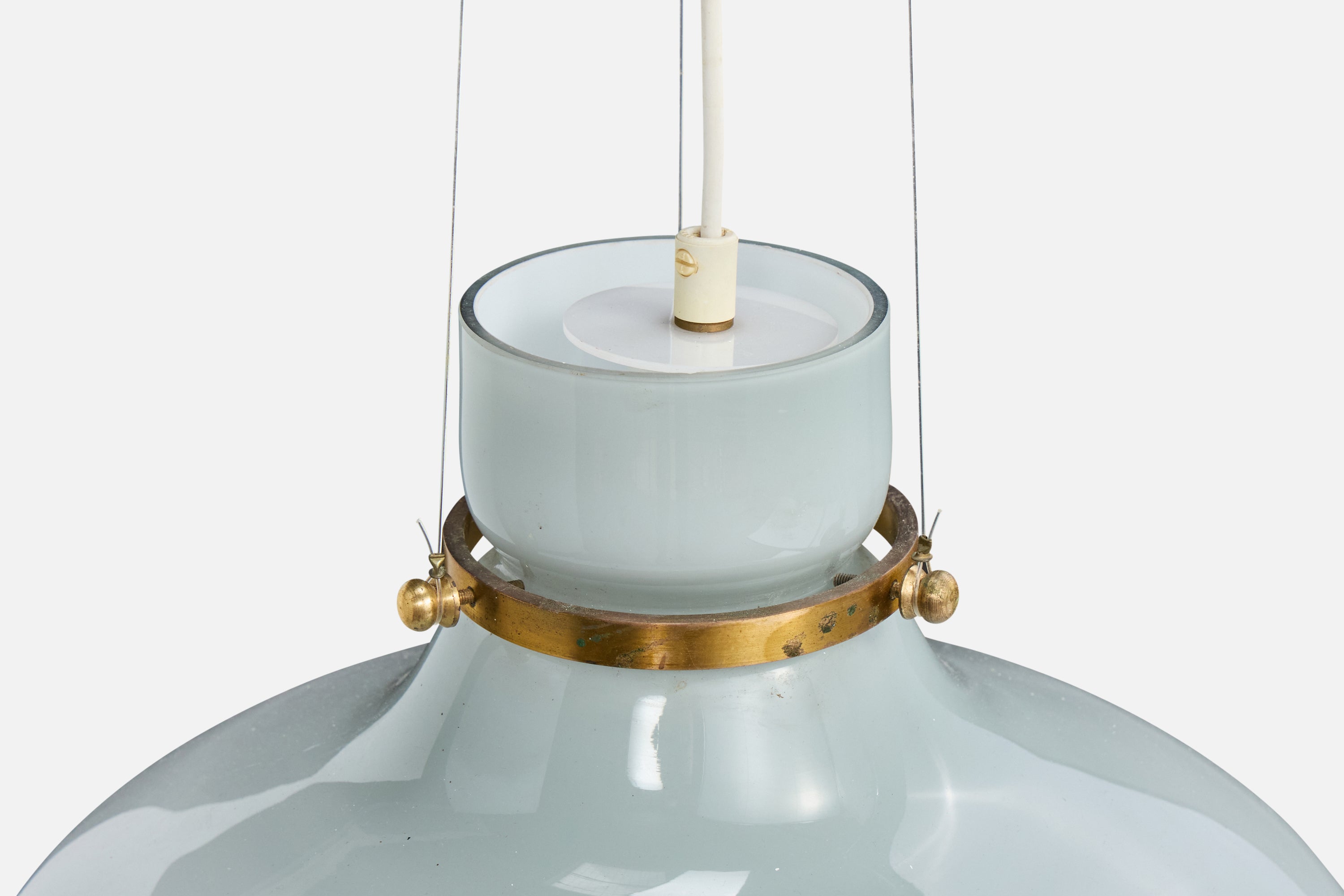 Italian Designer, Pendant Light, Glass, Brass, Italy, 1950s