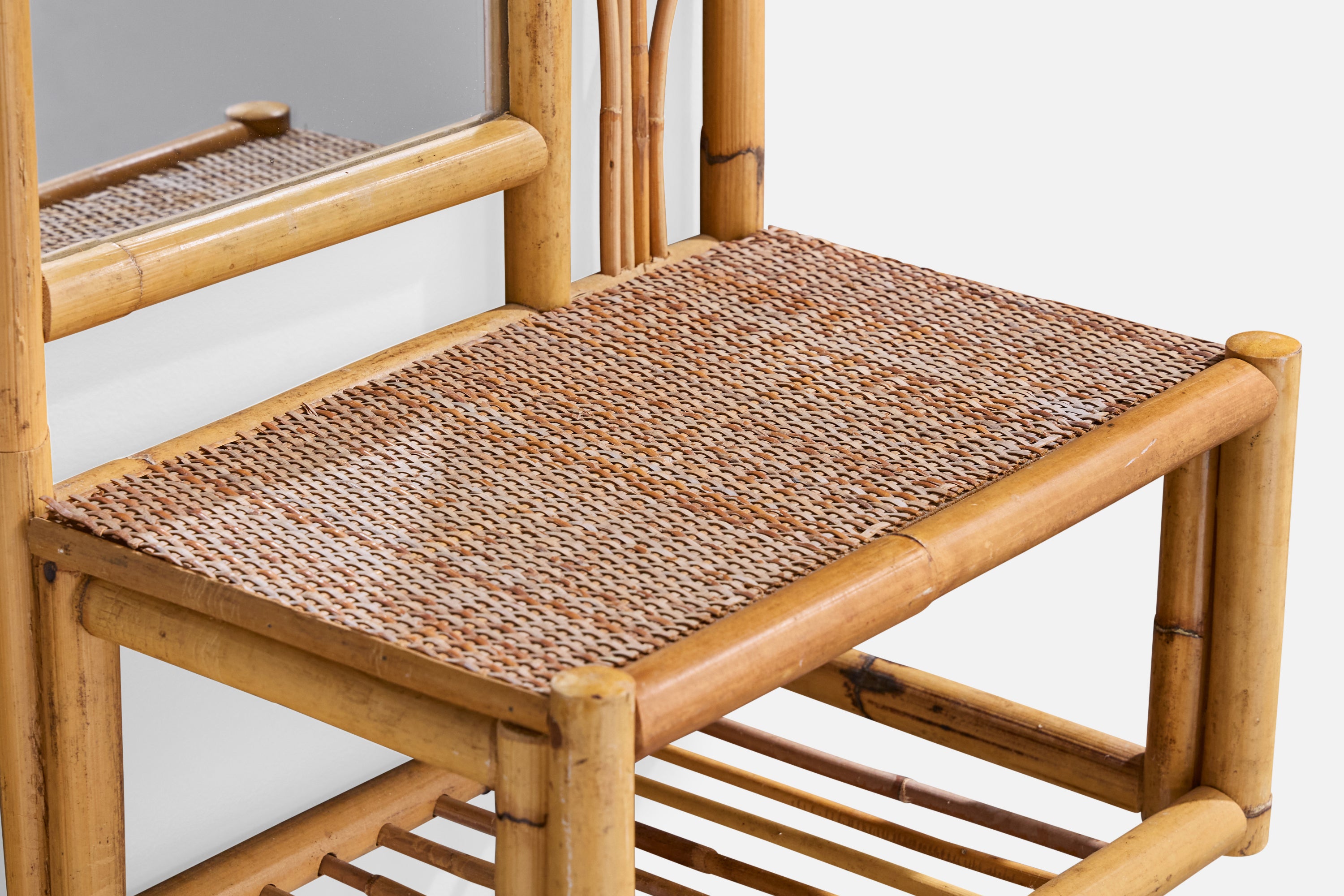 American Designer, Wall Mirror with Console, Bamboo, Rattan, USA, 1950s