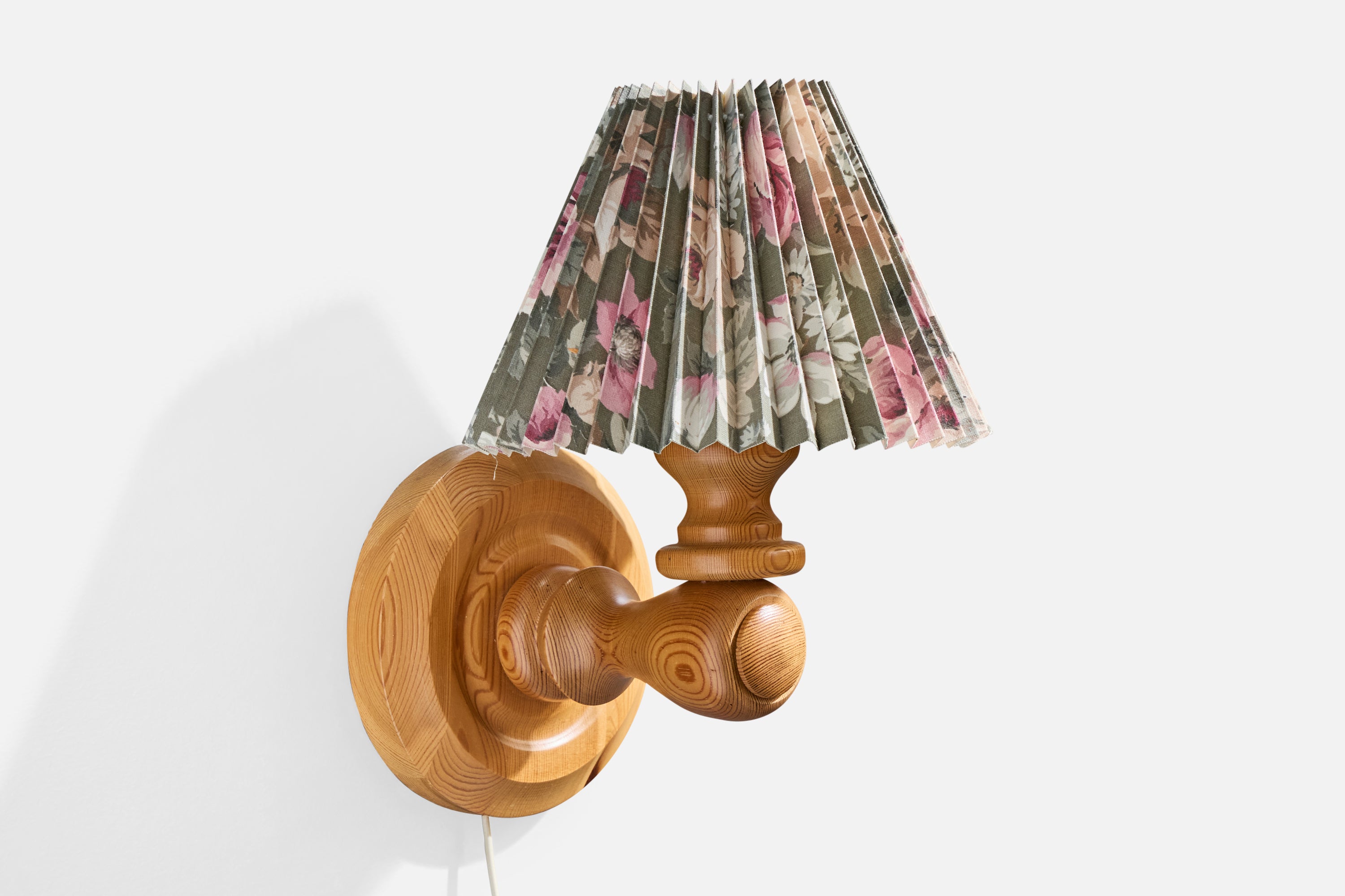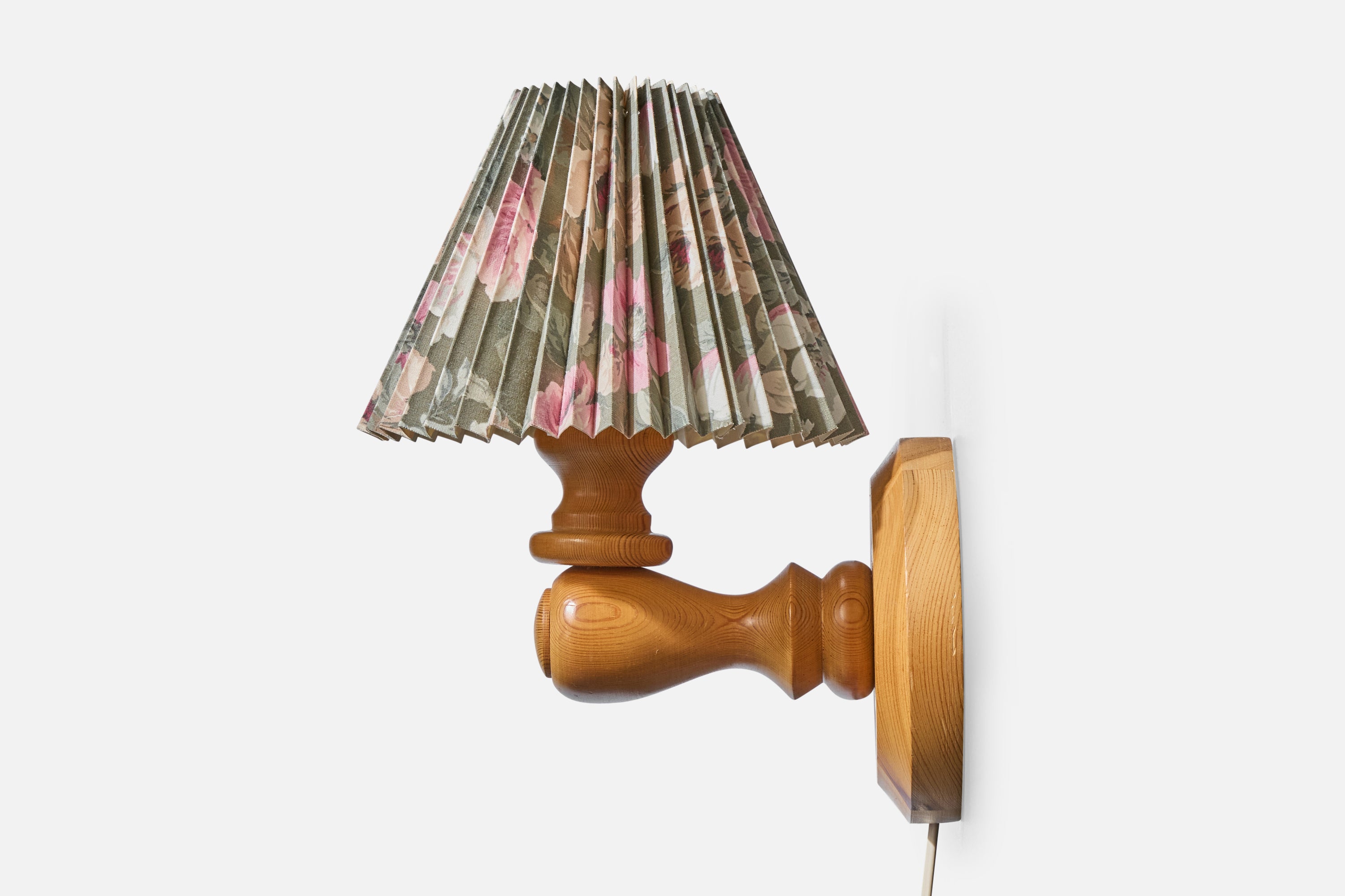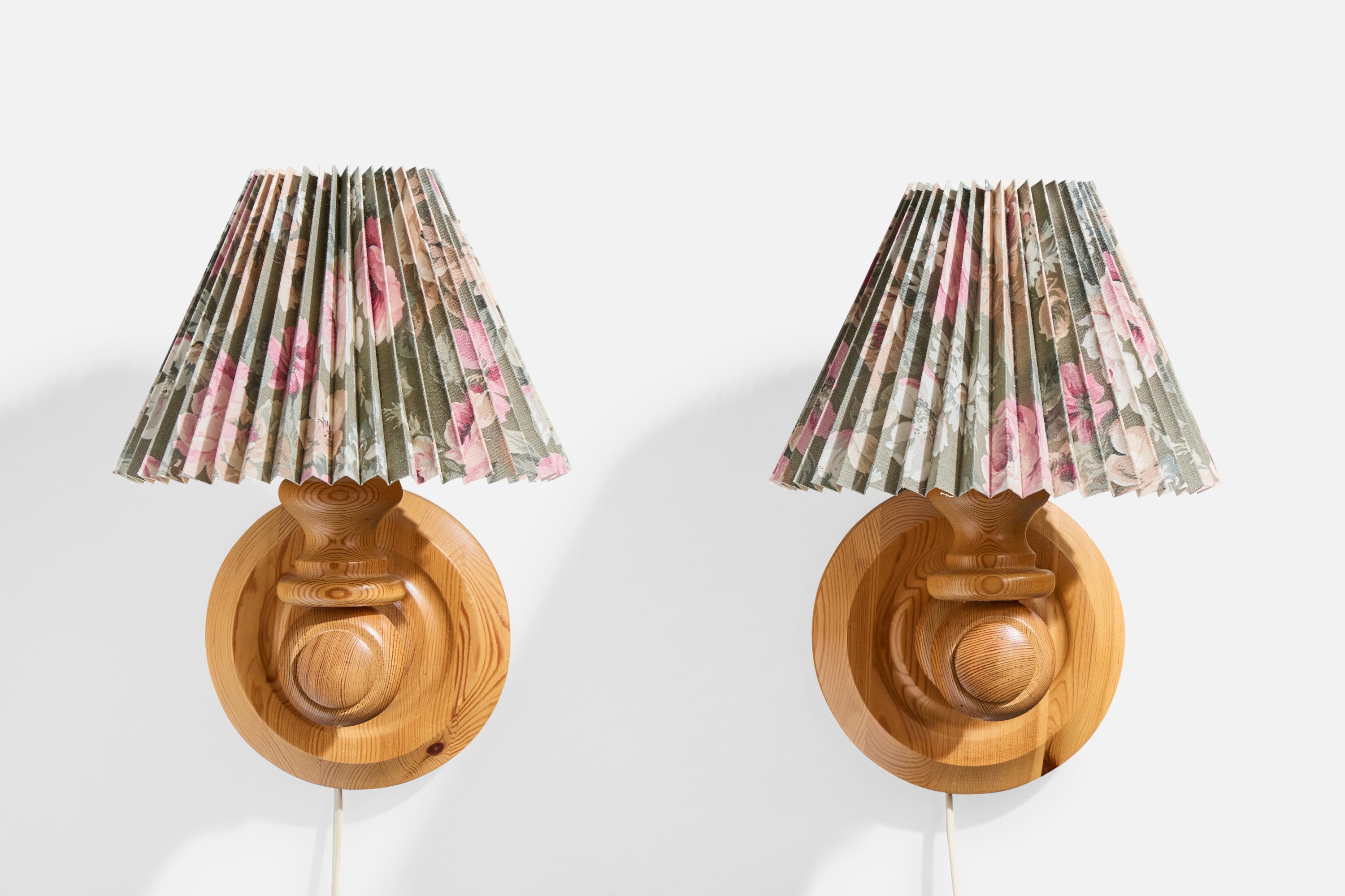 Swedish Designer, Wall Lights, Pine, Fabric, Sweden, 1970s