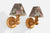 A pair of pine and floral-printed fabric wall lights designed and produced in Sweden, c. 1970s.