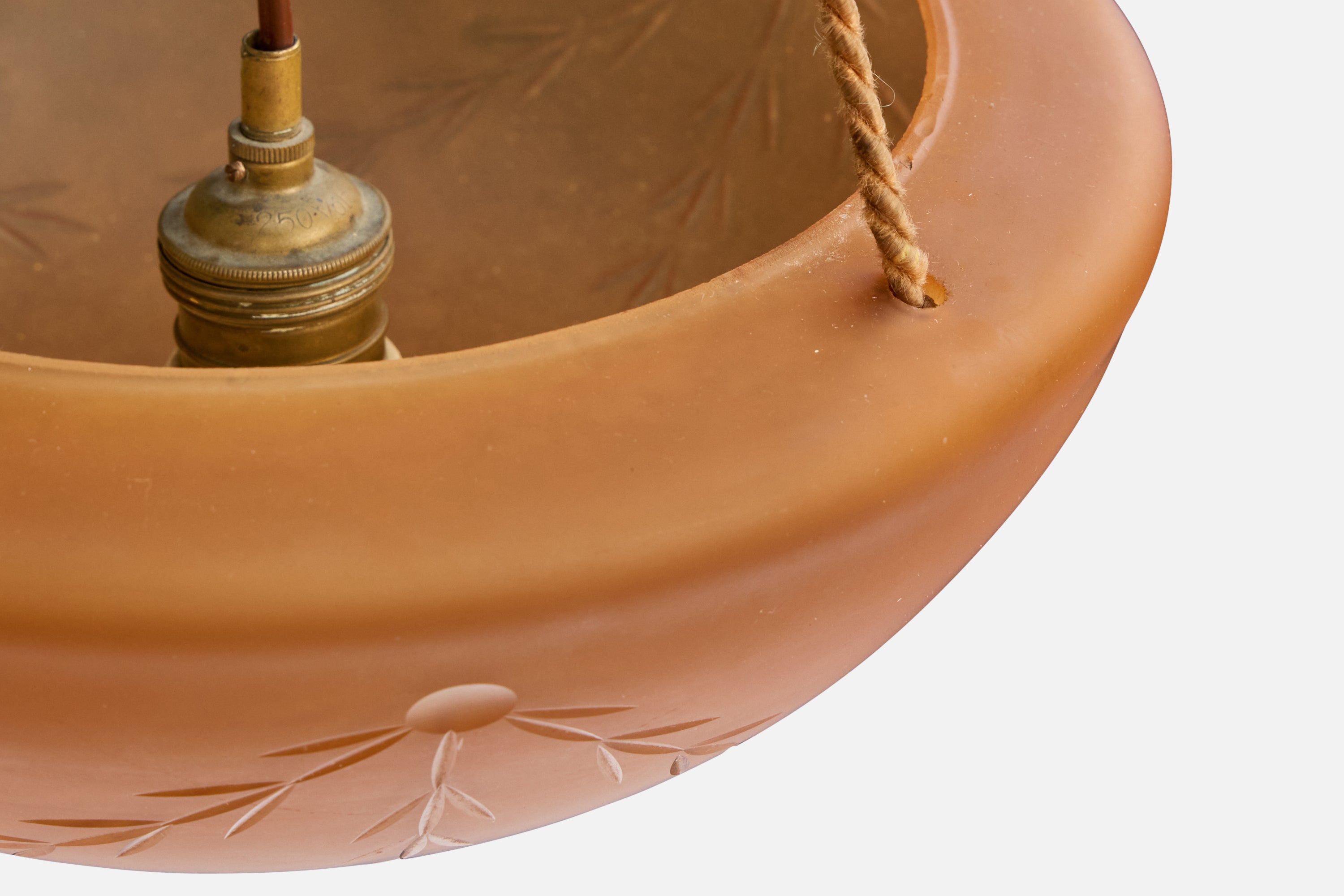 Arvid Böhlmarks Lampfabrik Attribution, Pendant Light, Glass, Rope, Sweden, 1930