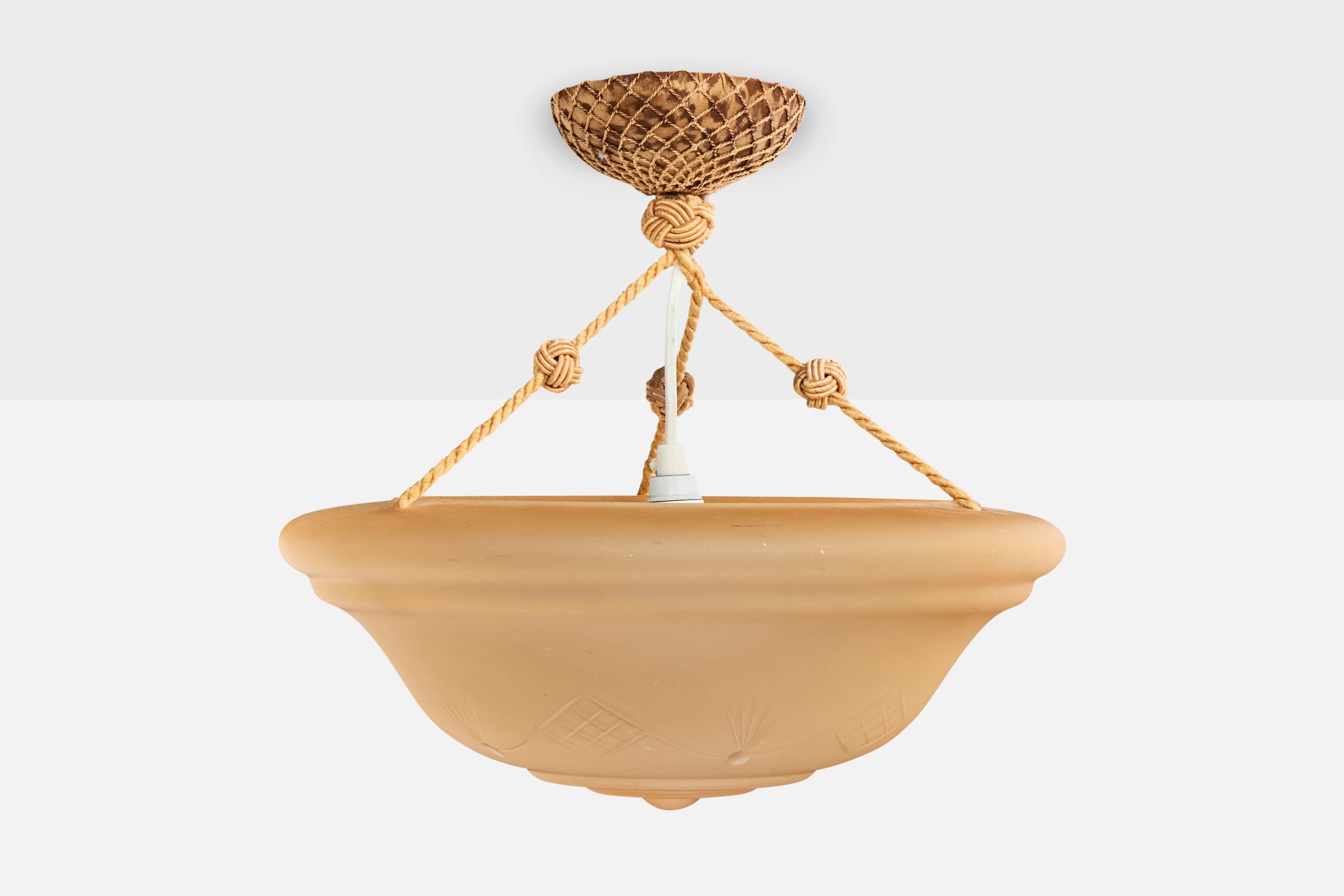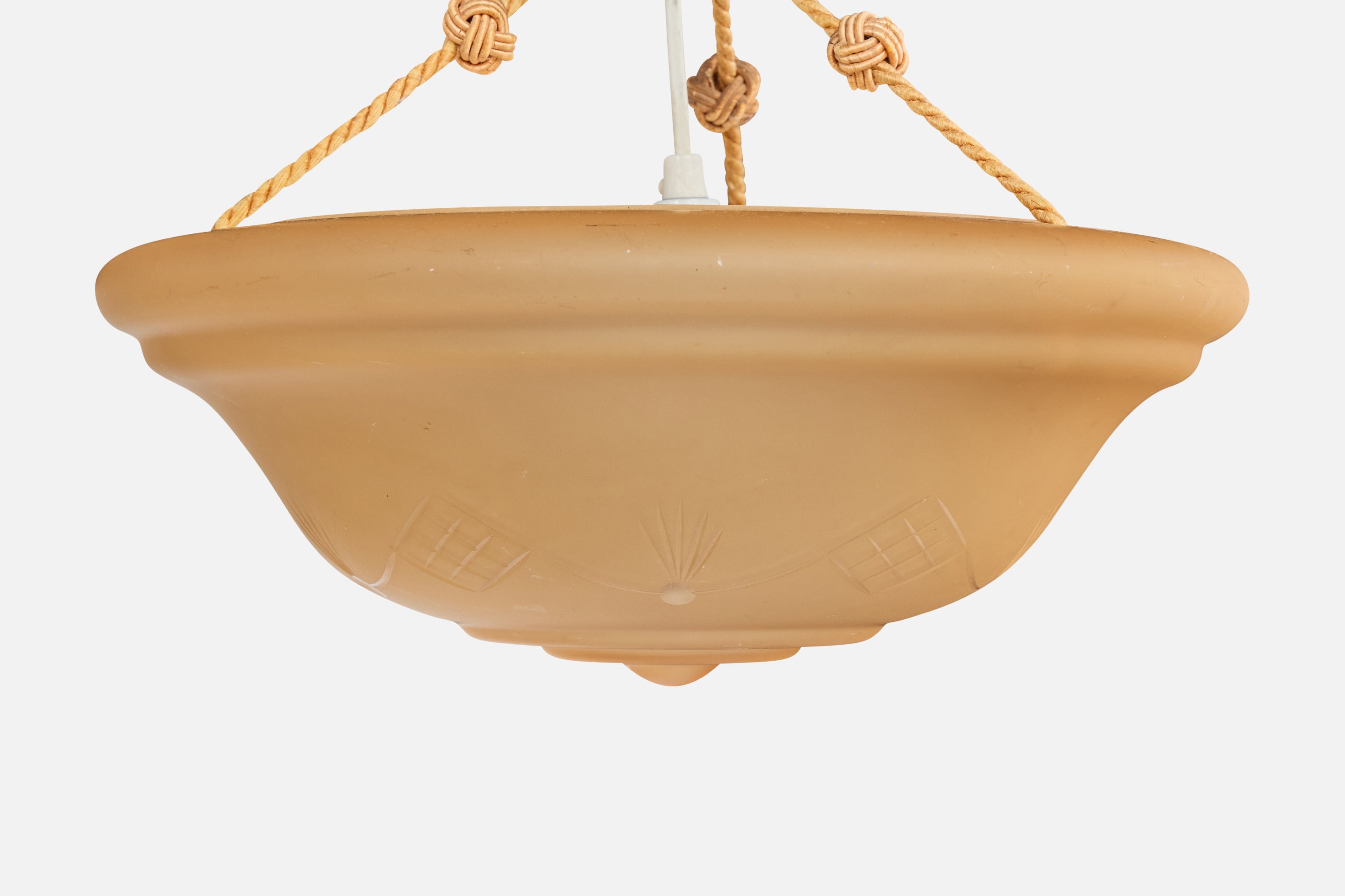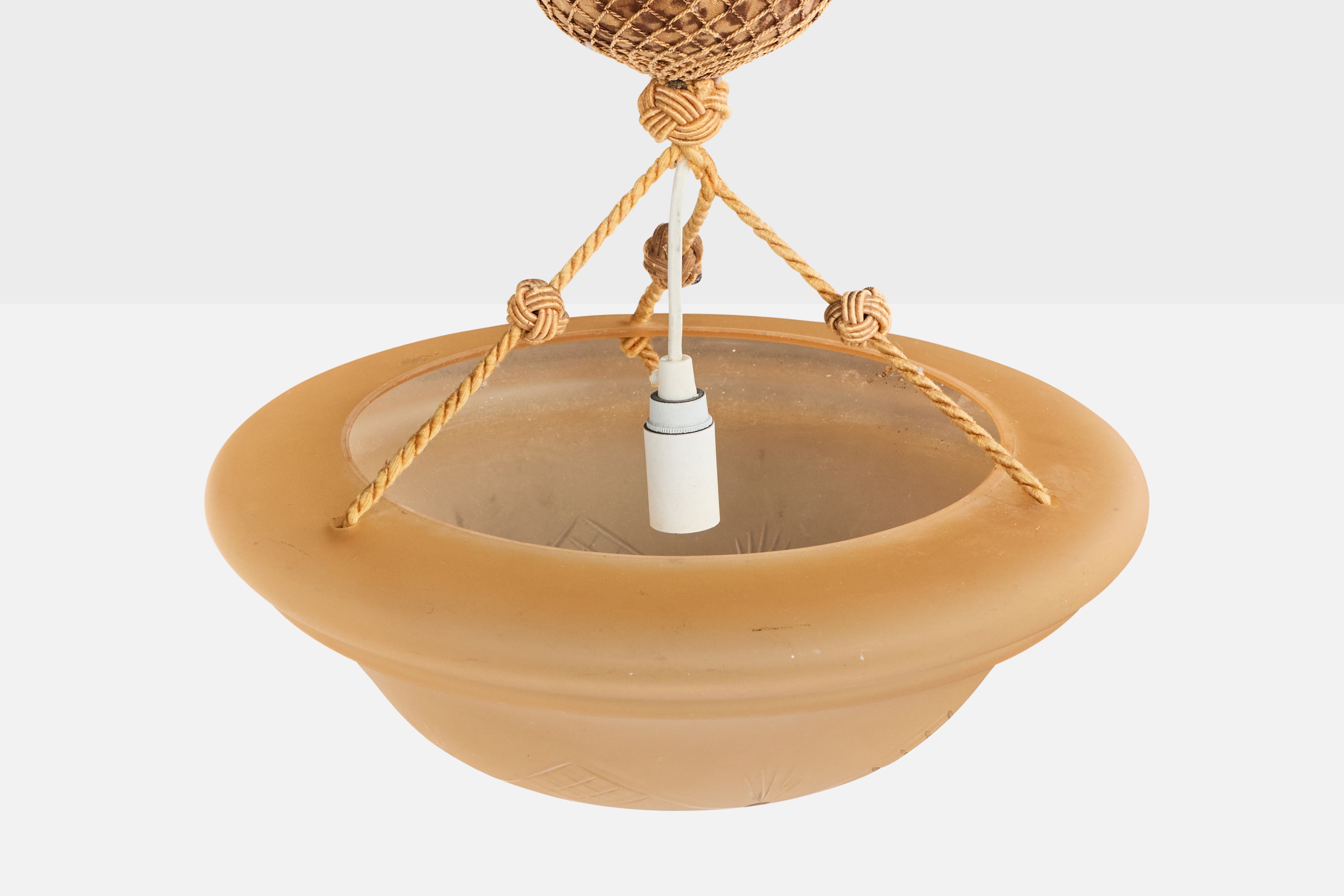 Arvid Böhlmarks Lampfabrik Attribution, Pendant Light, Glass, Rope, Sweden, 1930