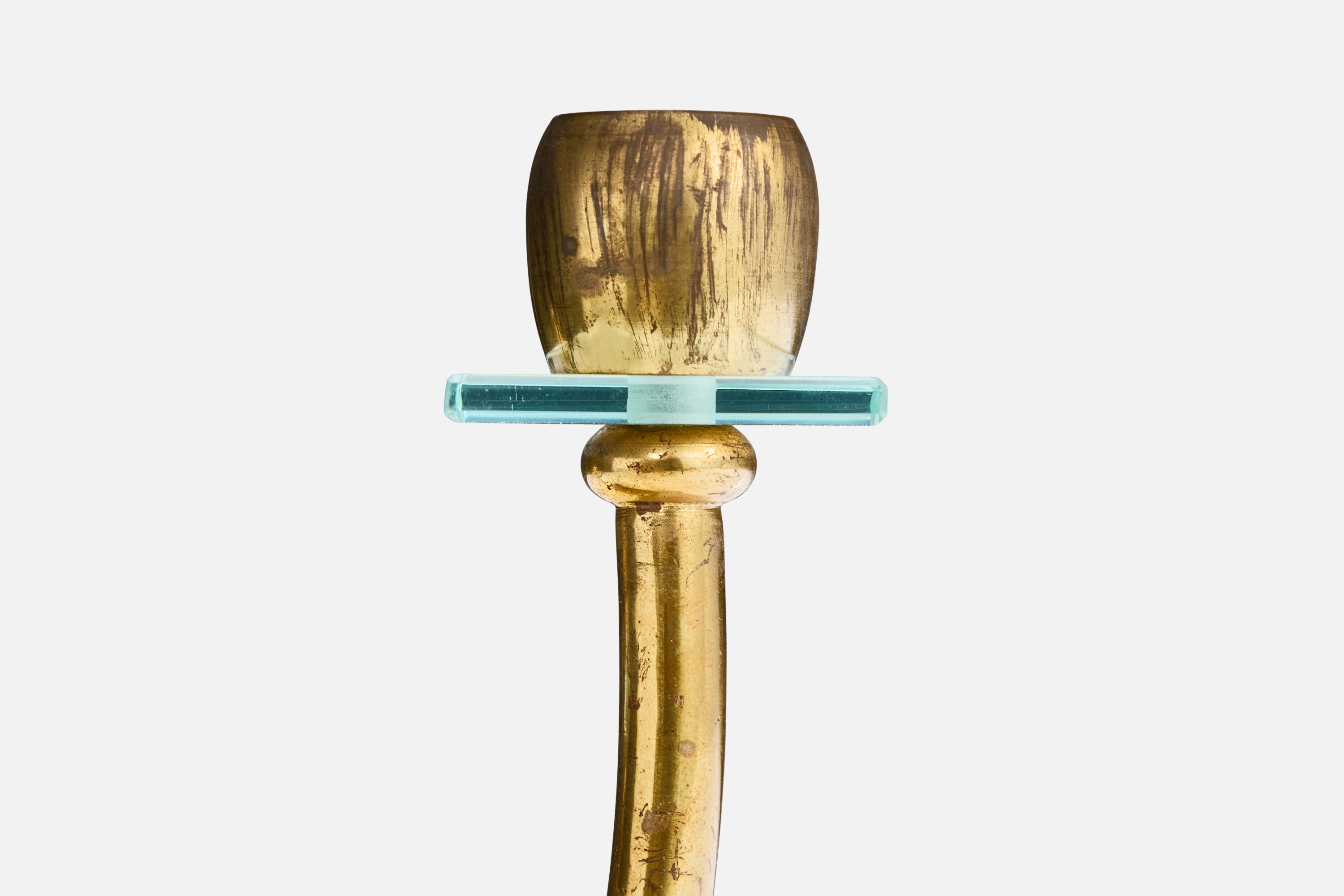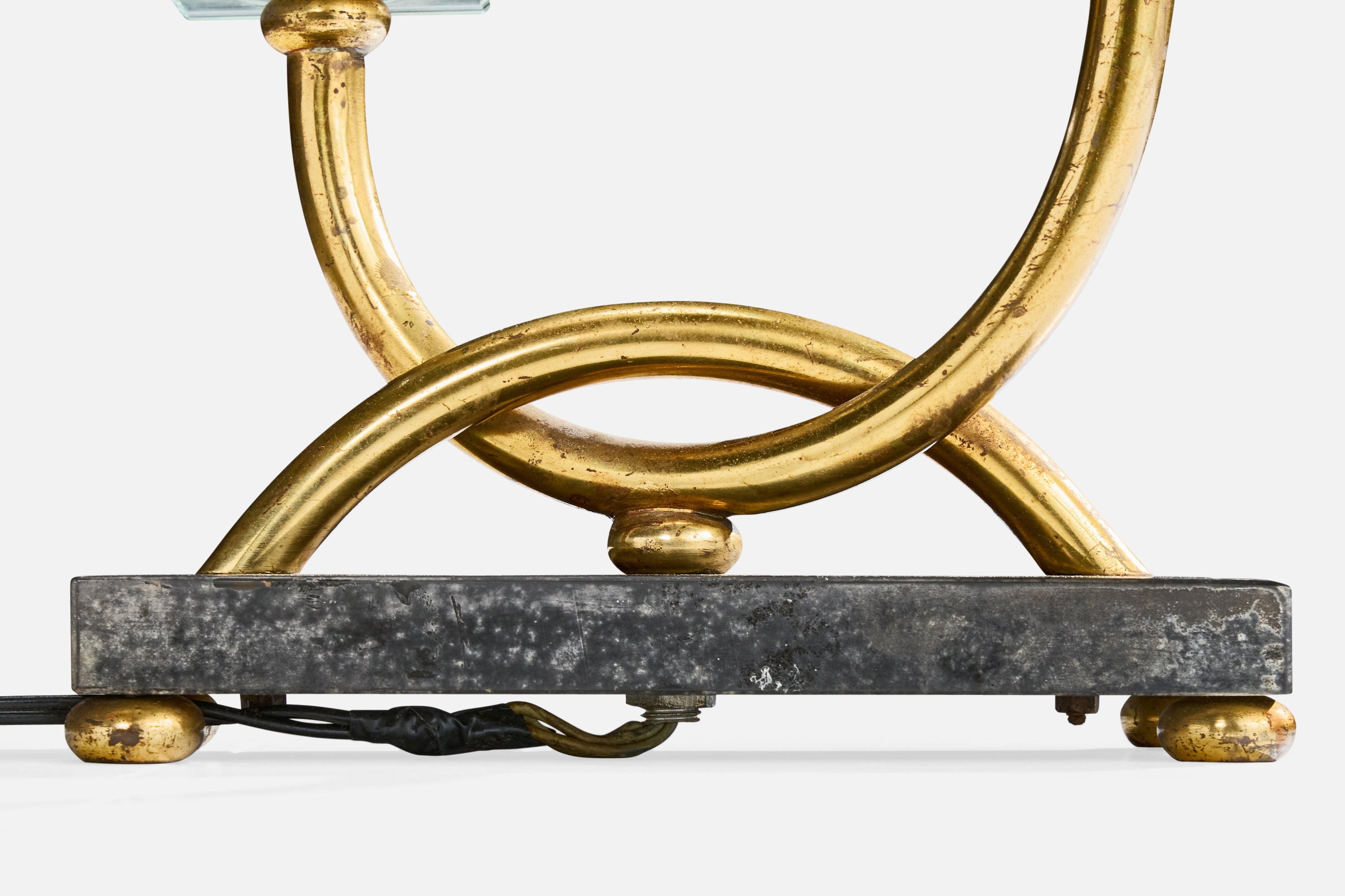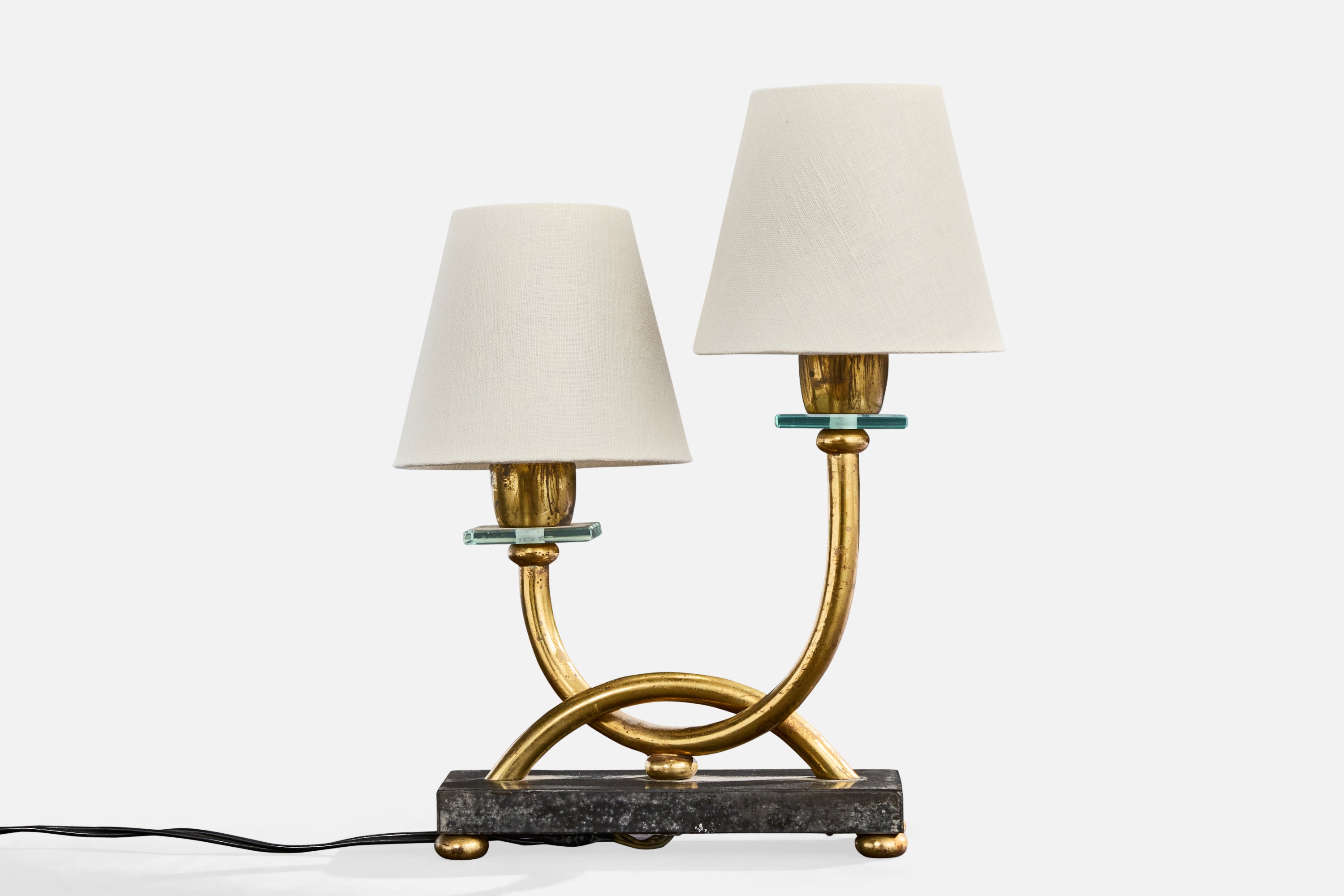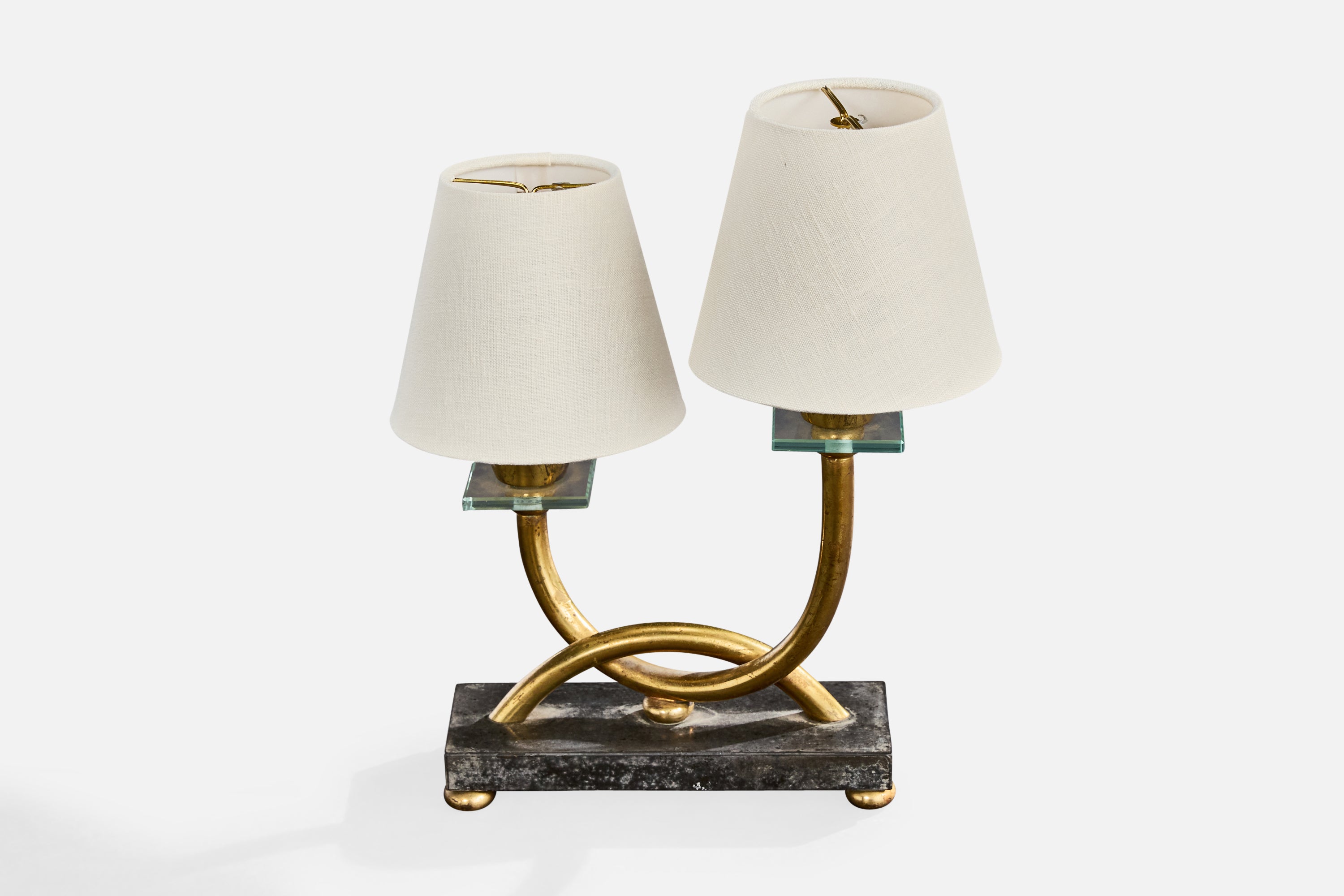 French Designer, Table Lamps, Brass, Glass, Marble, Fabric, France, 1940s