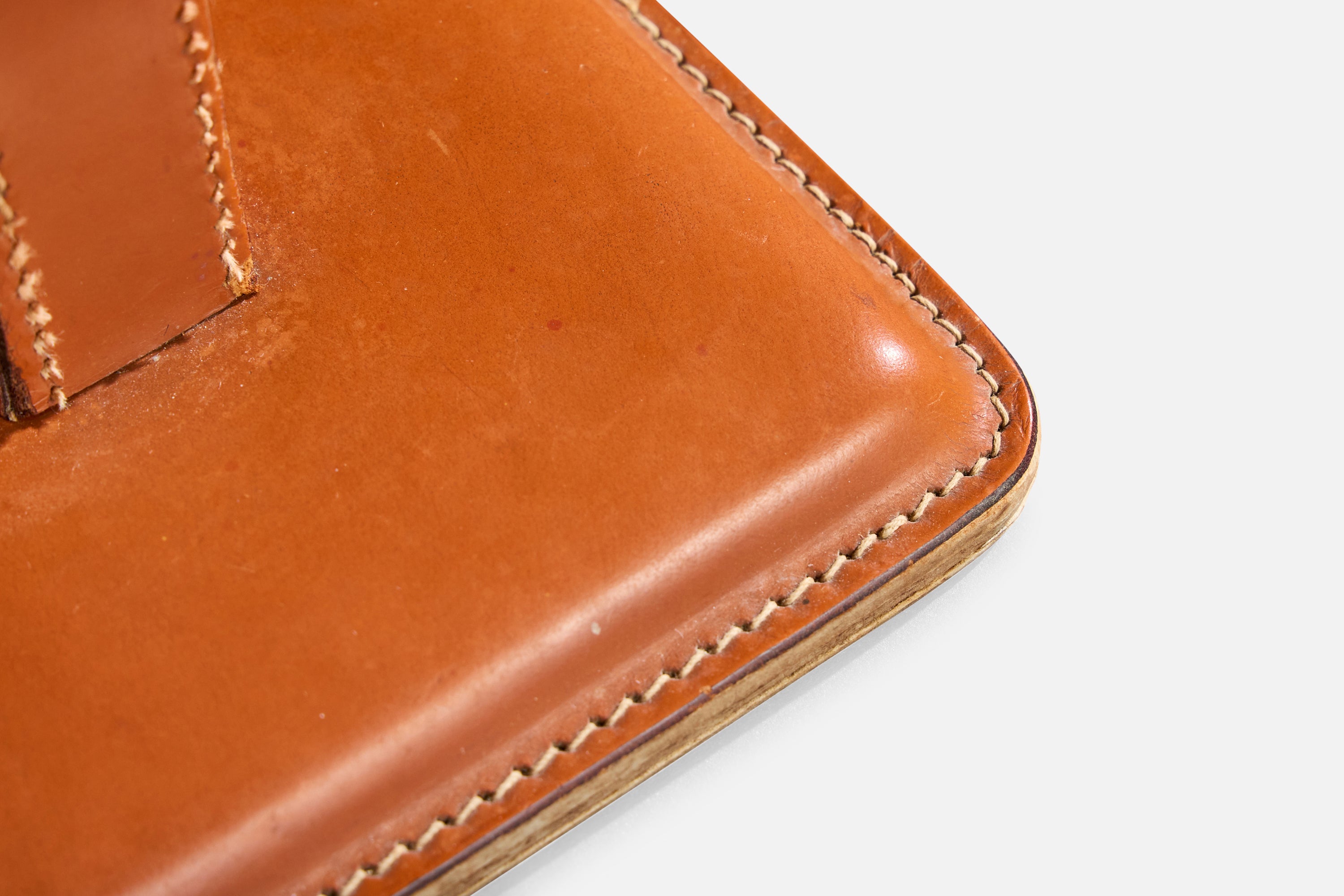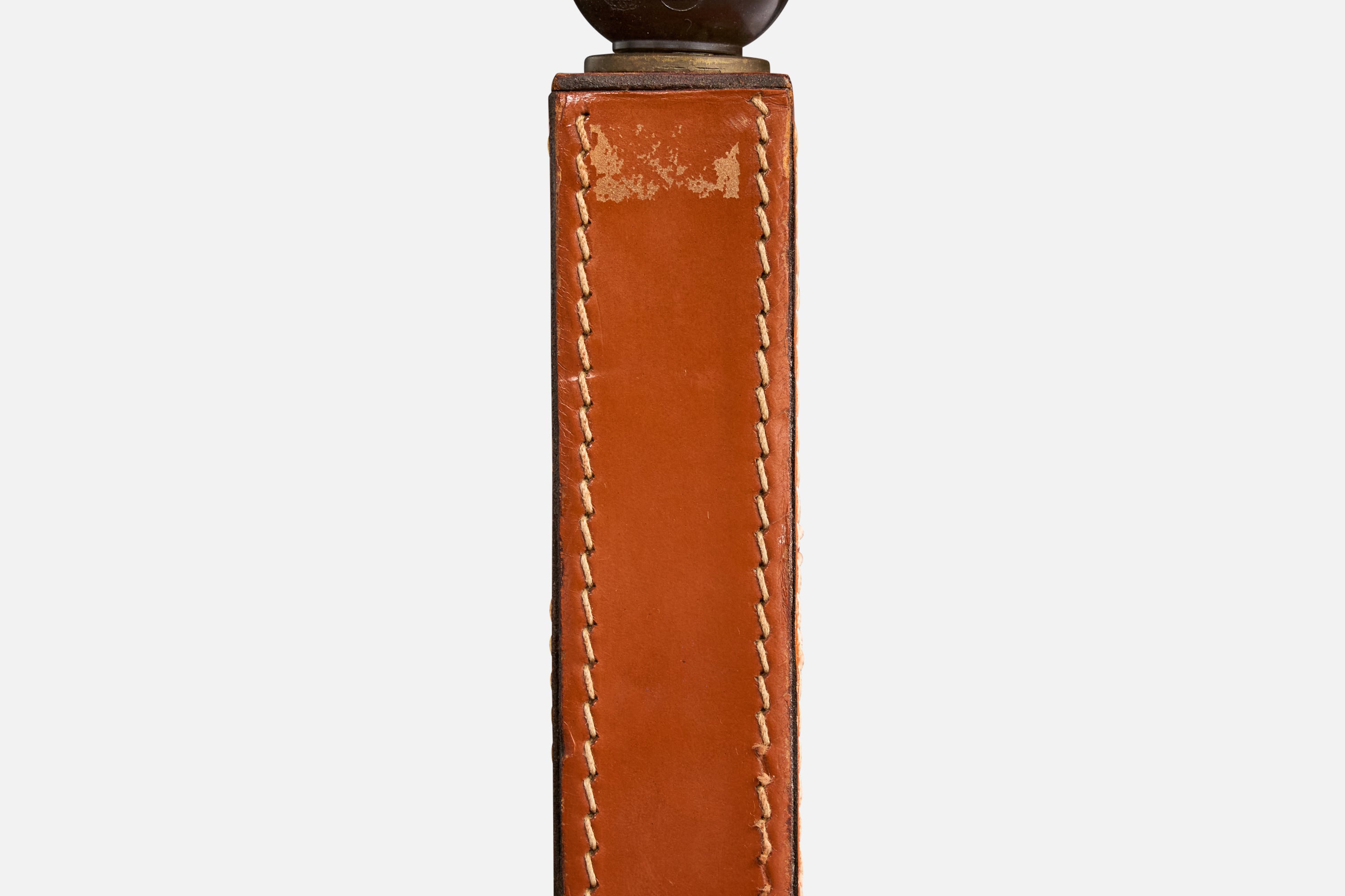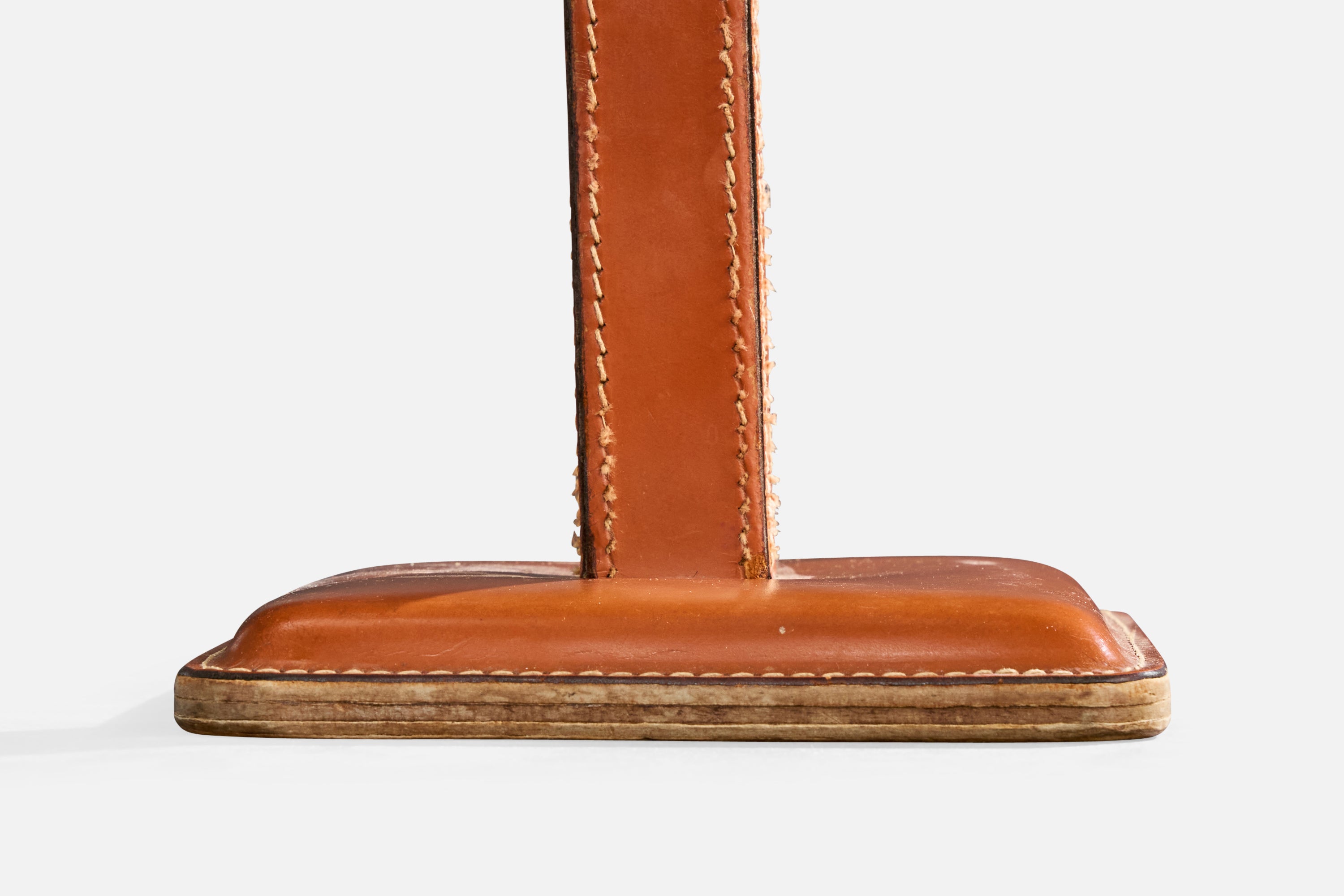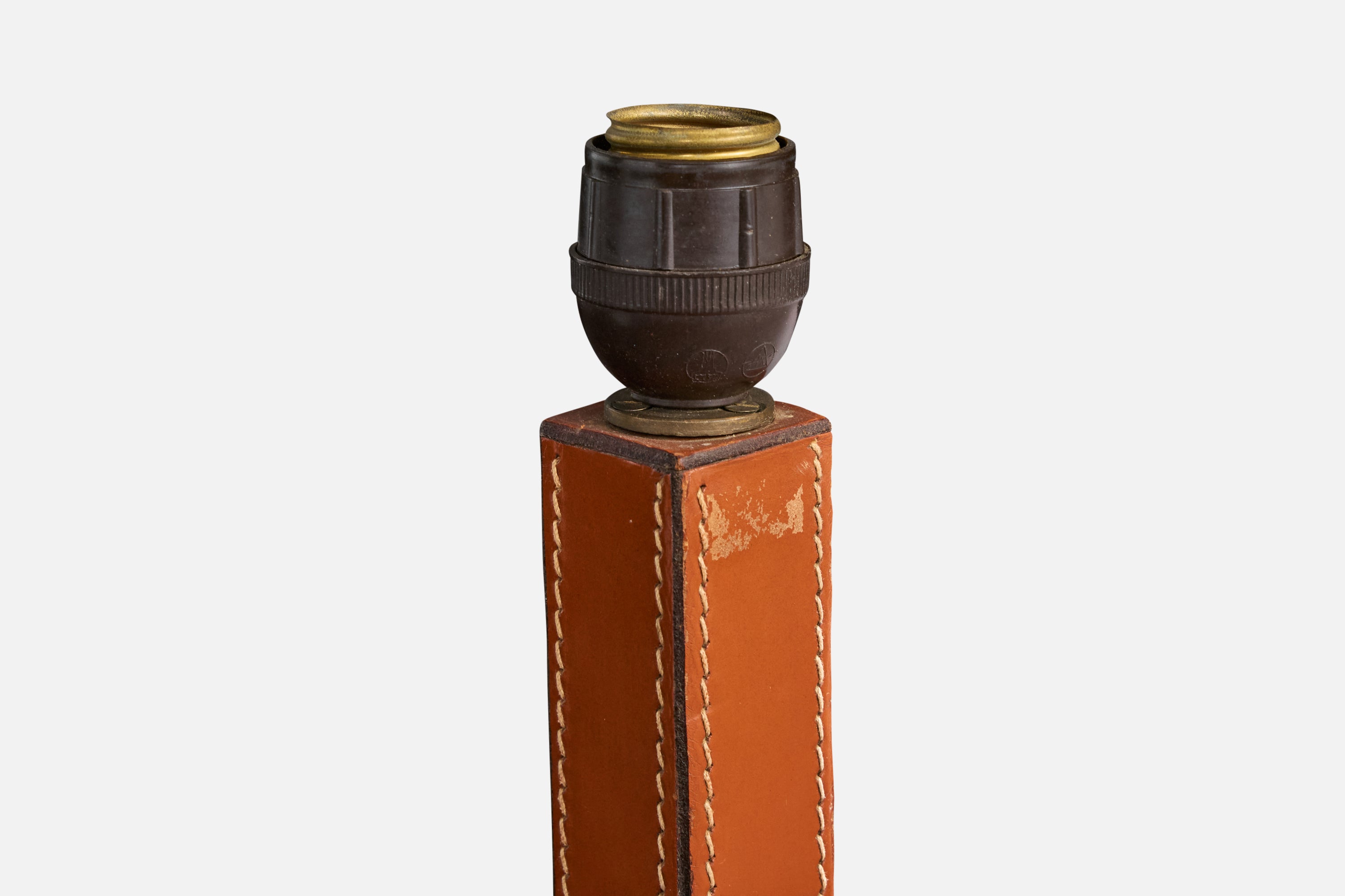 A stitched brown leather table lamp designed and produced in France, c. 1950s