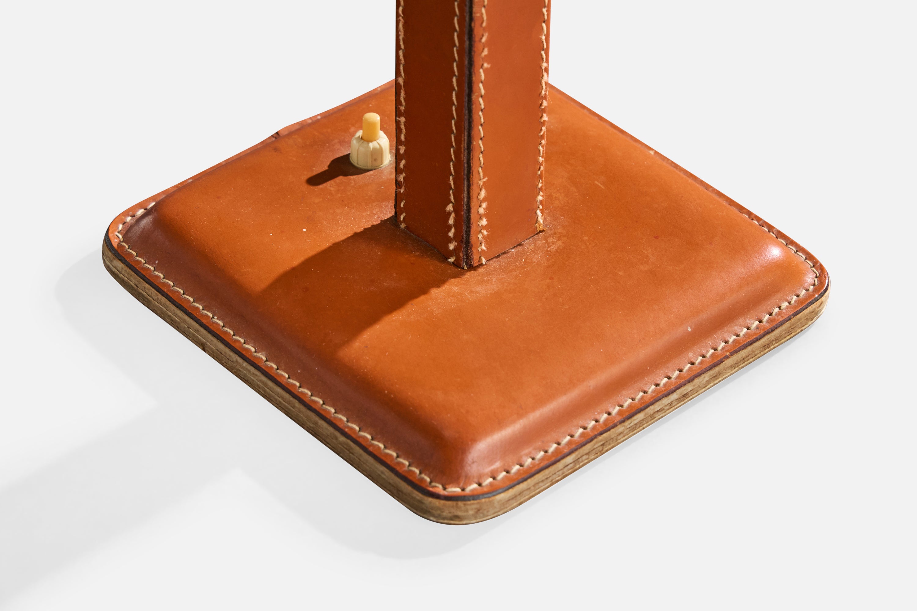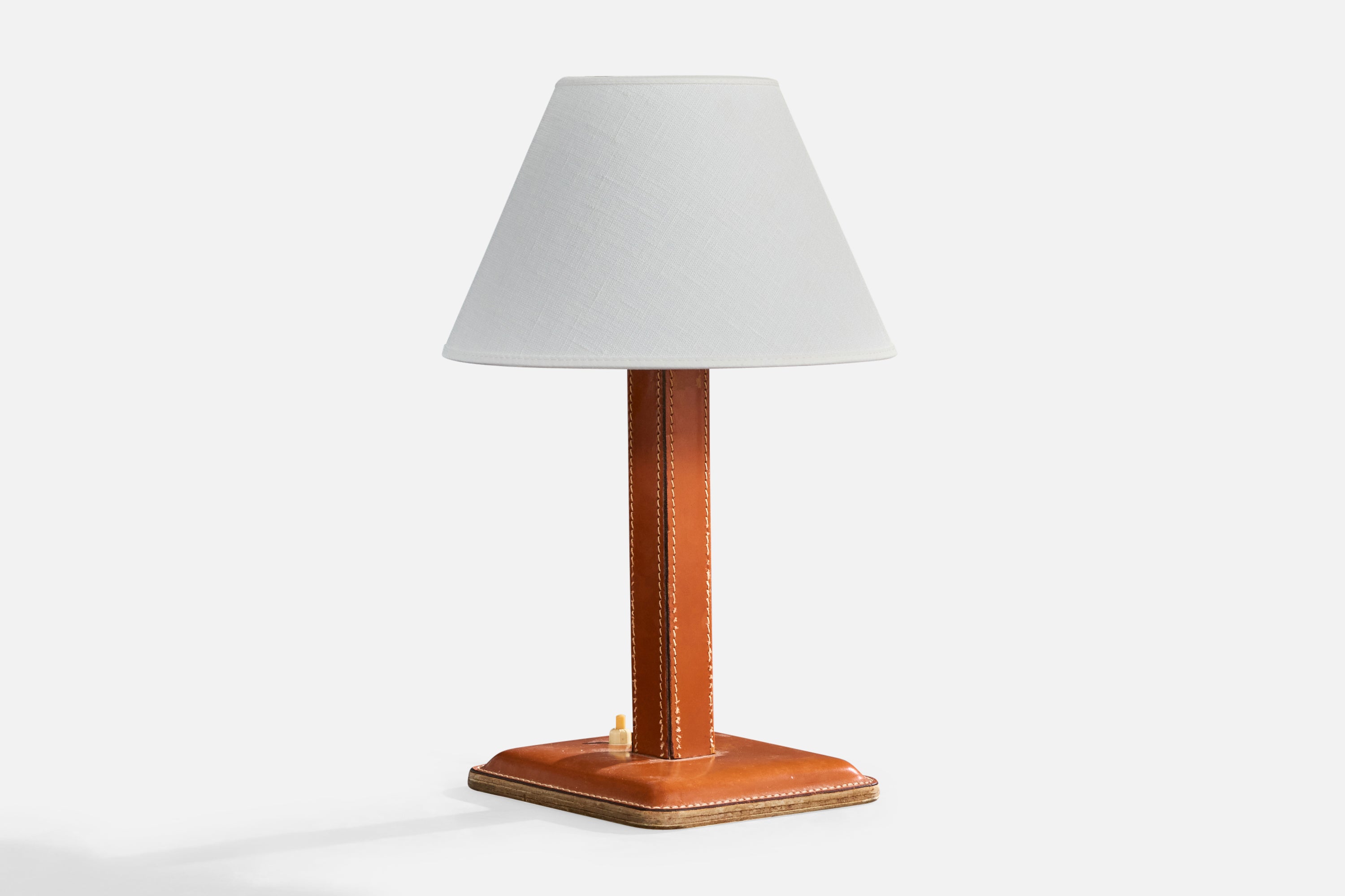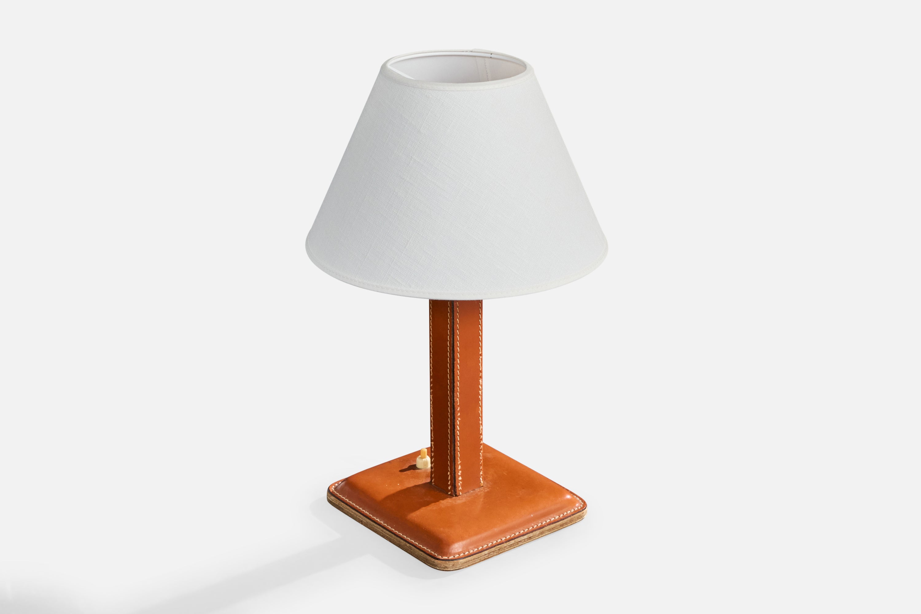 French Designer, Table Lamp, Leather, France, 1950s