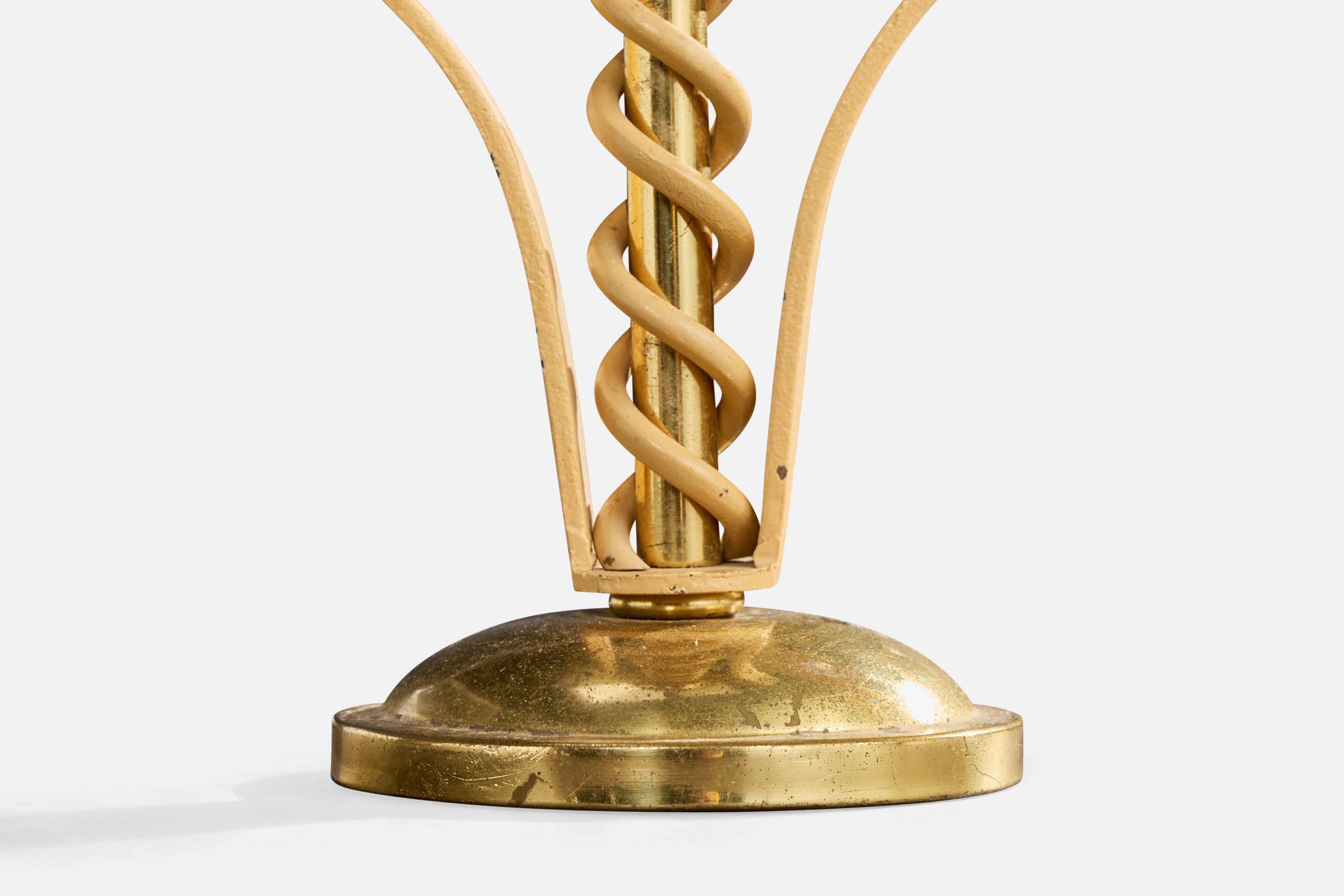 French Designer, Table Lamp, Brass, Metal, Glass, France, 1950s