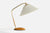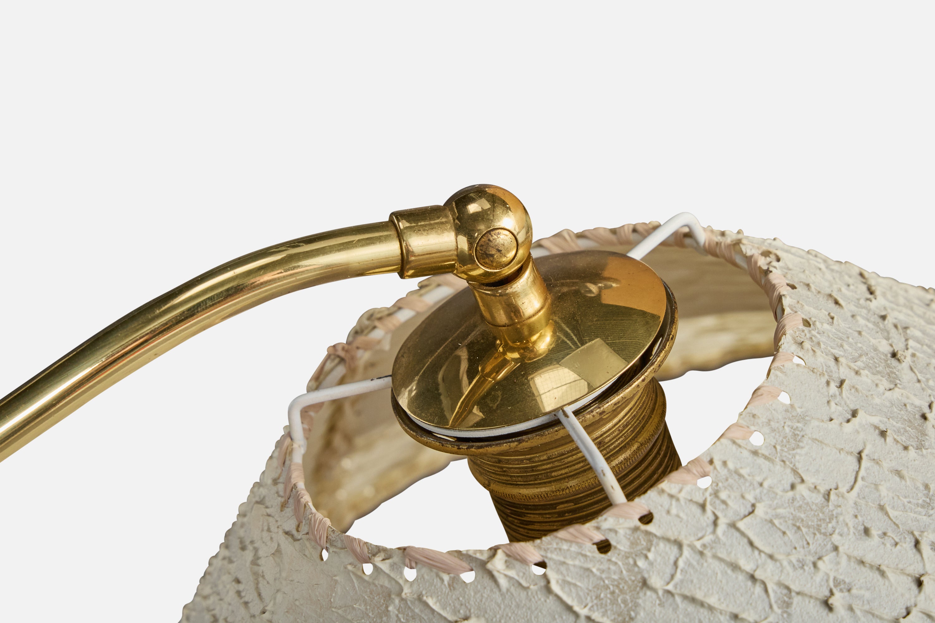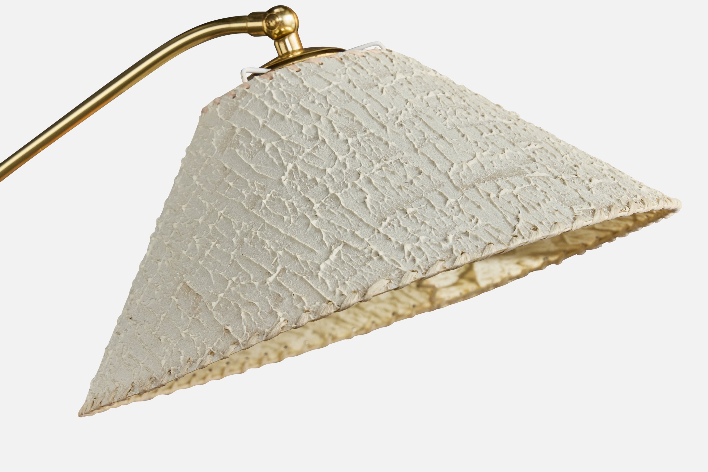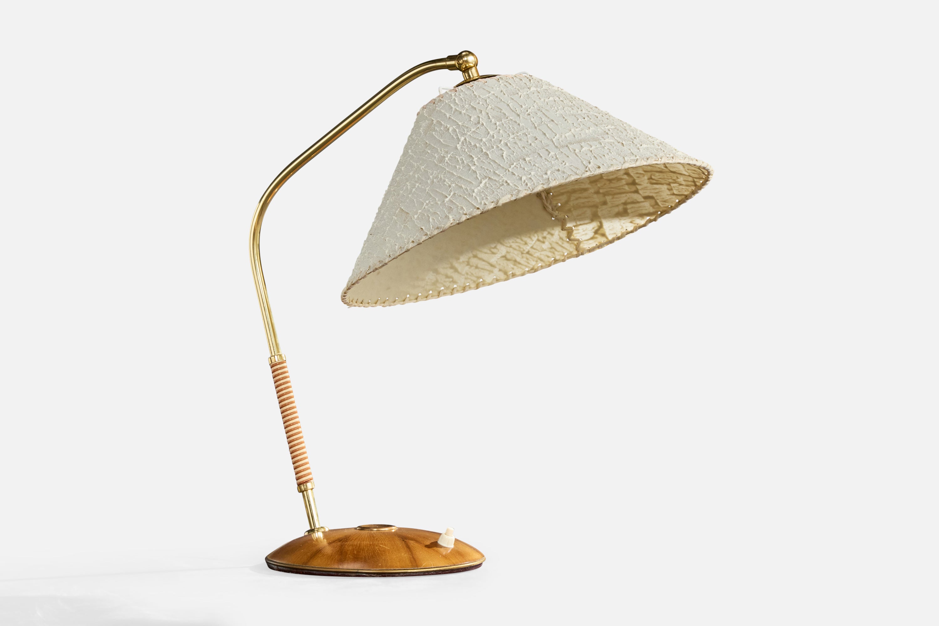 A wood, brass, rubber and off white parchment paper table lamp likely designed and produced in Austria, c. 1950s.
