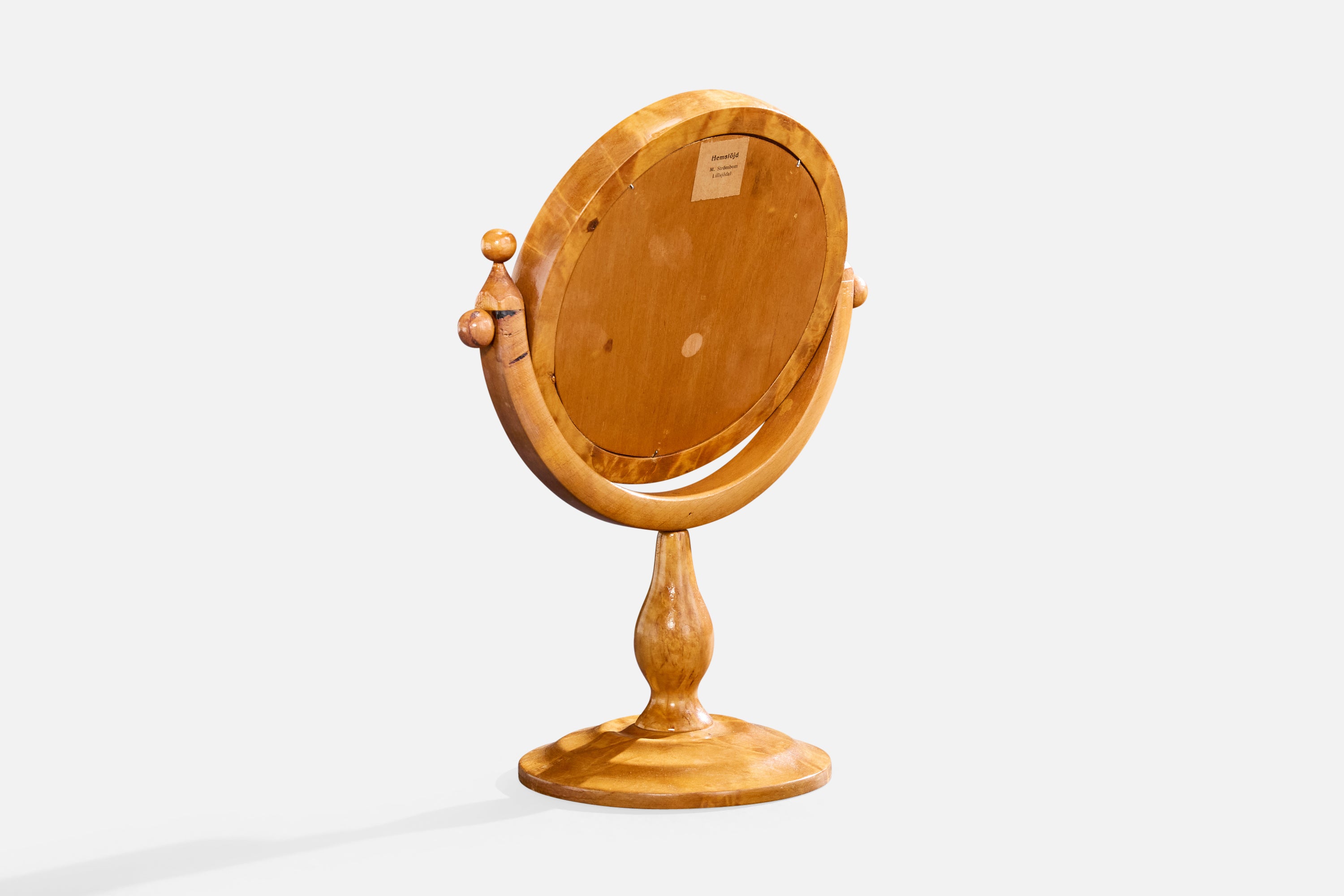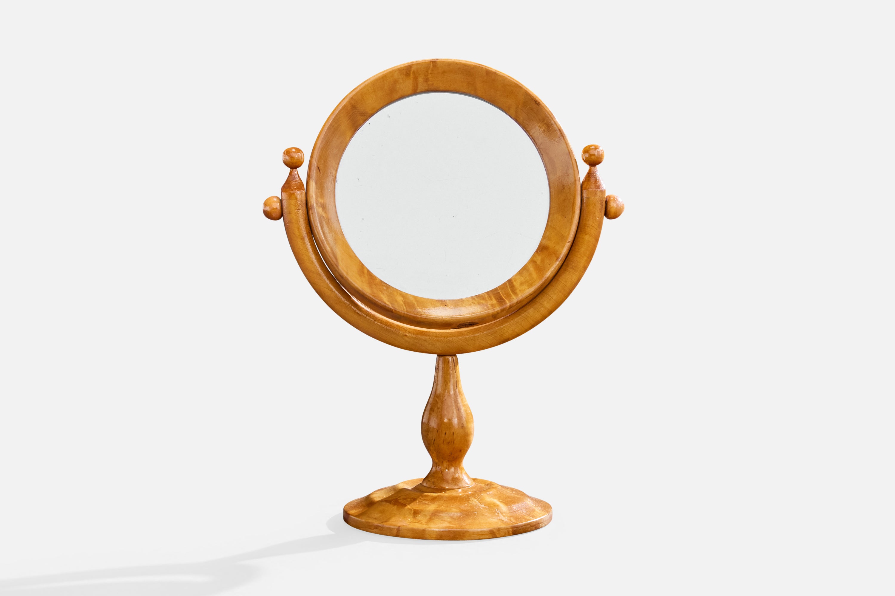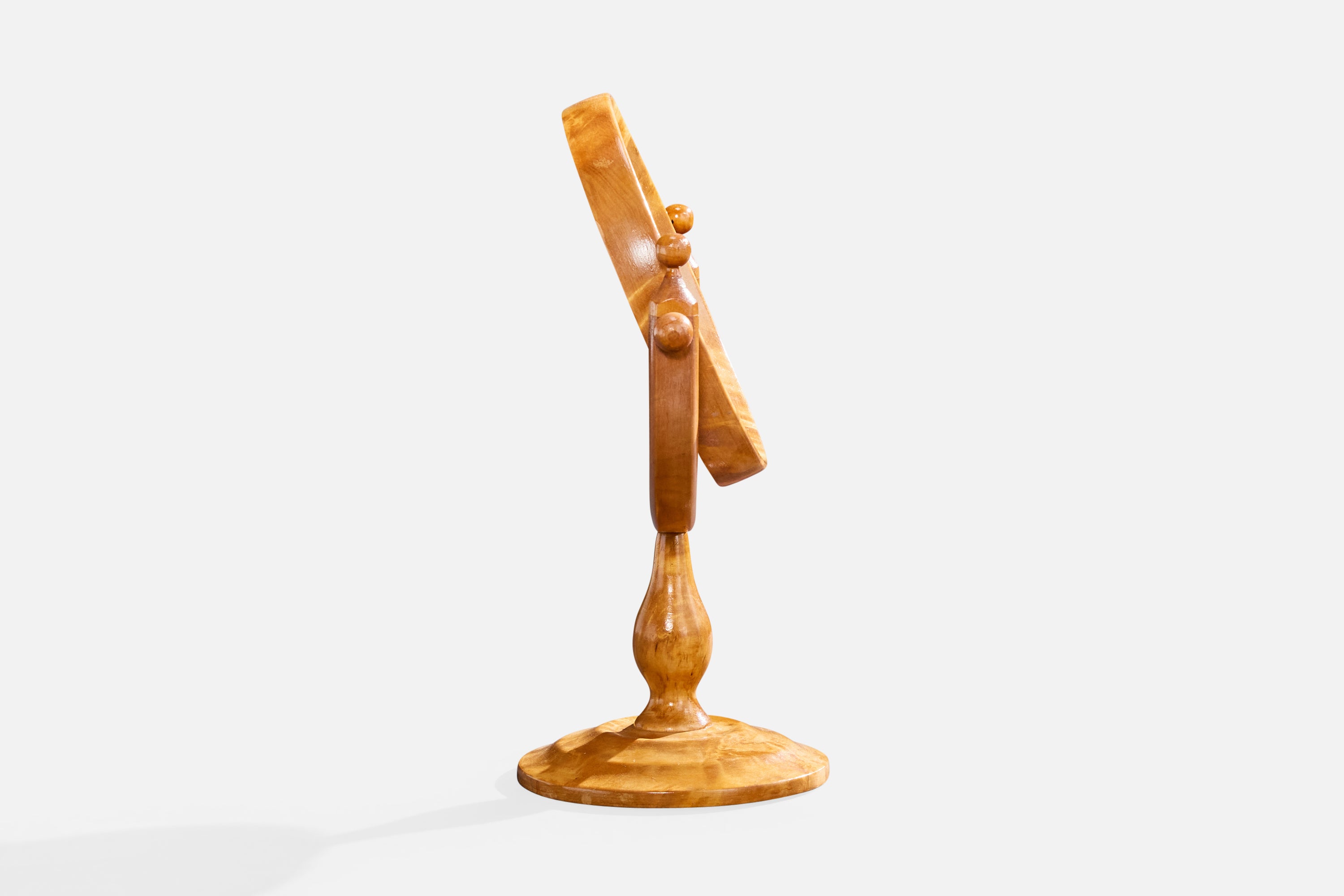 Swedish Designer, Table Mirror, Birch, Sweden, 1950s