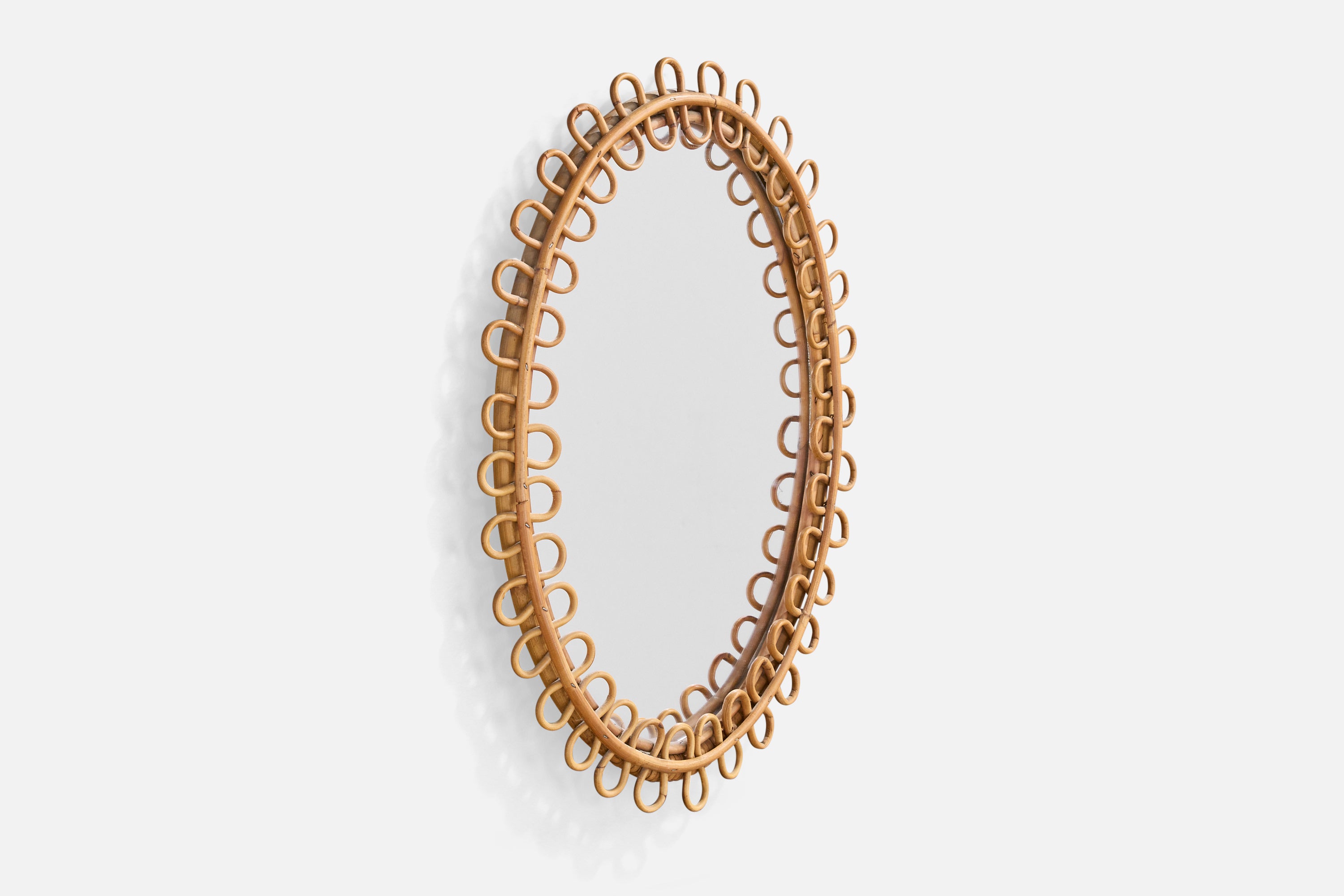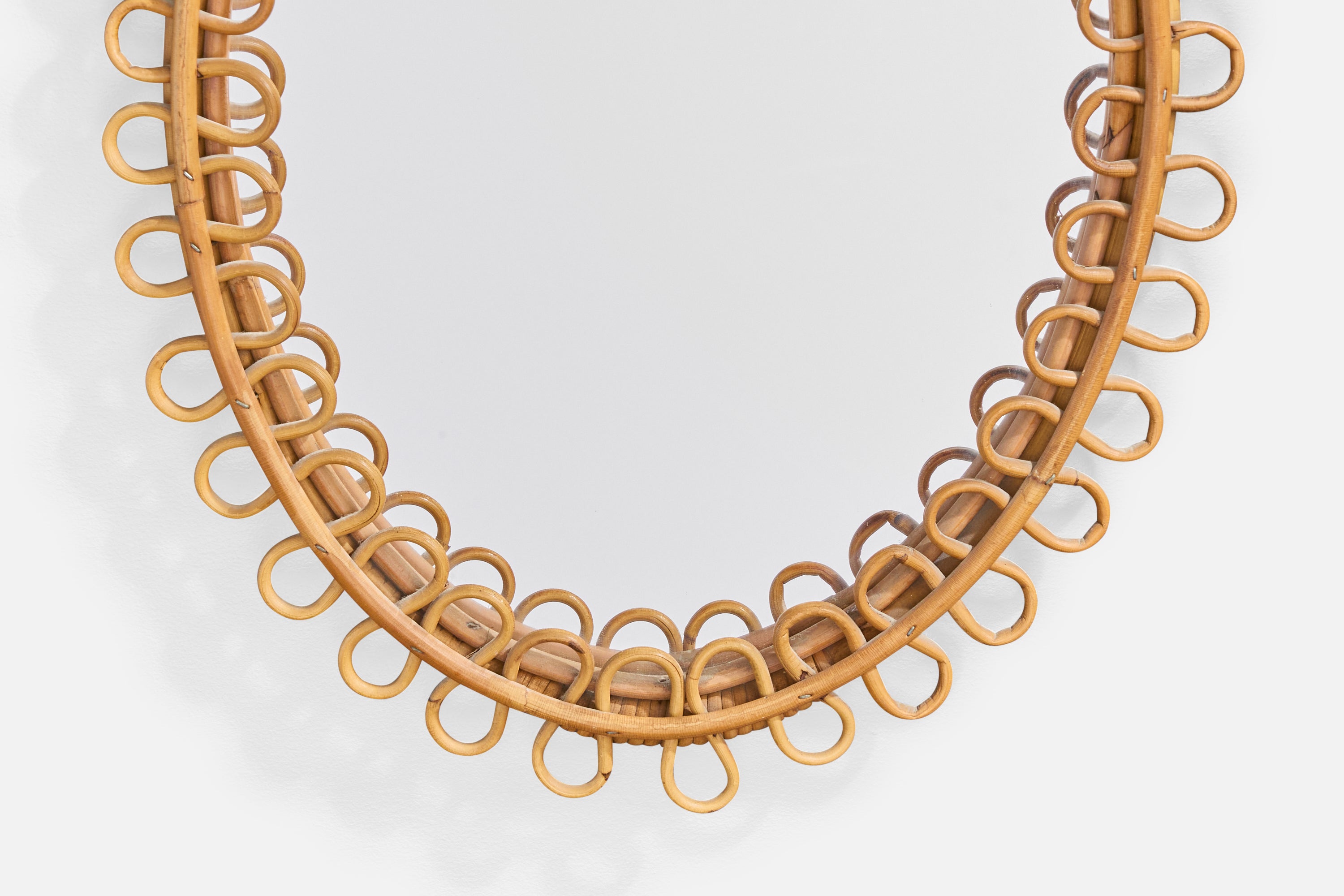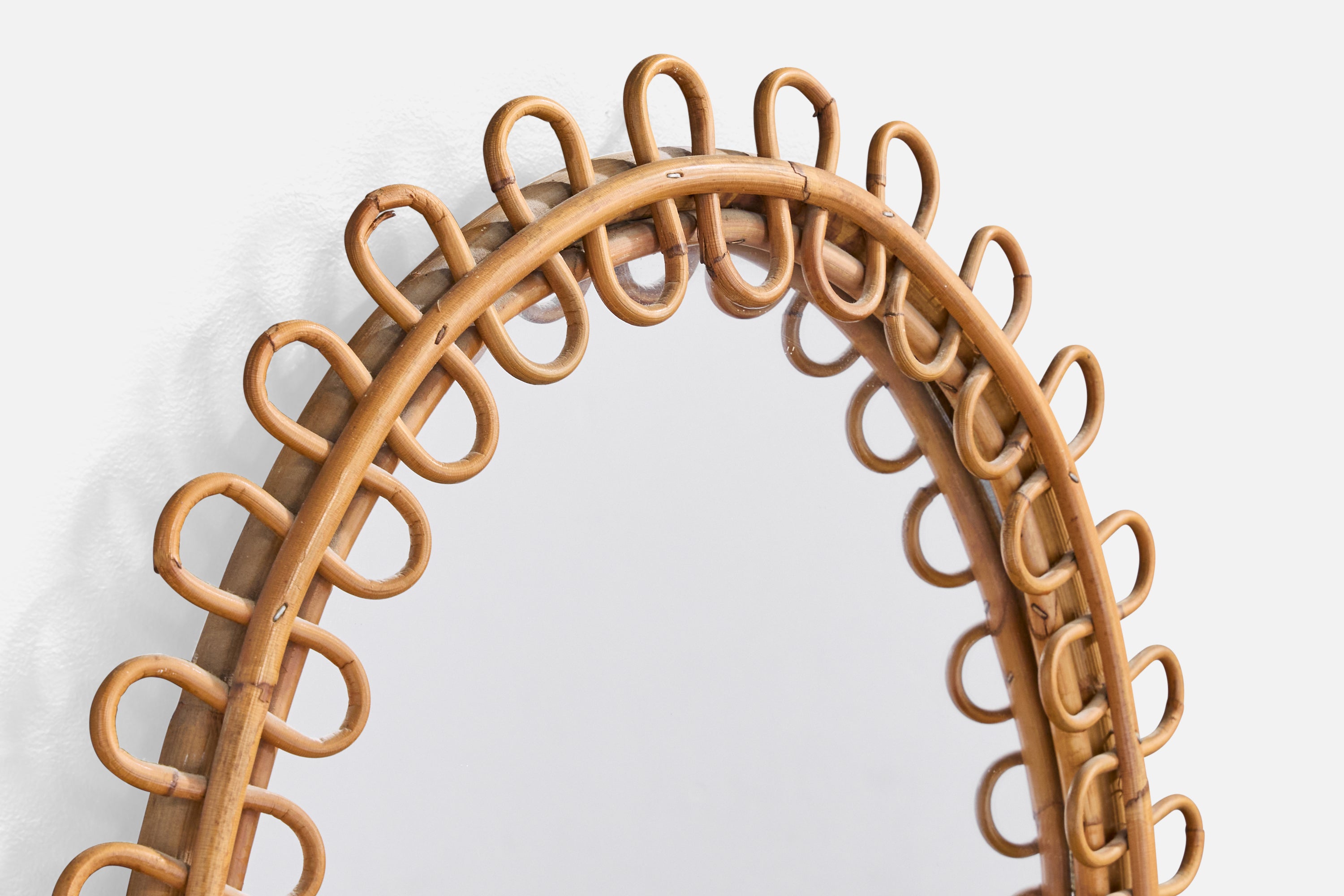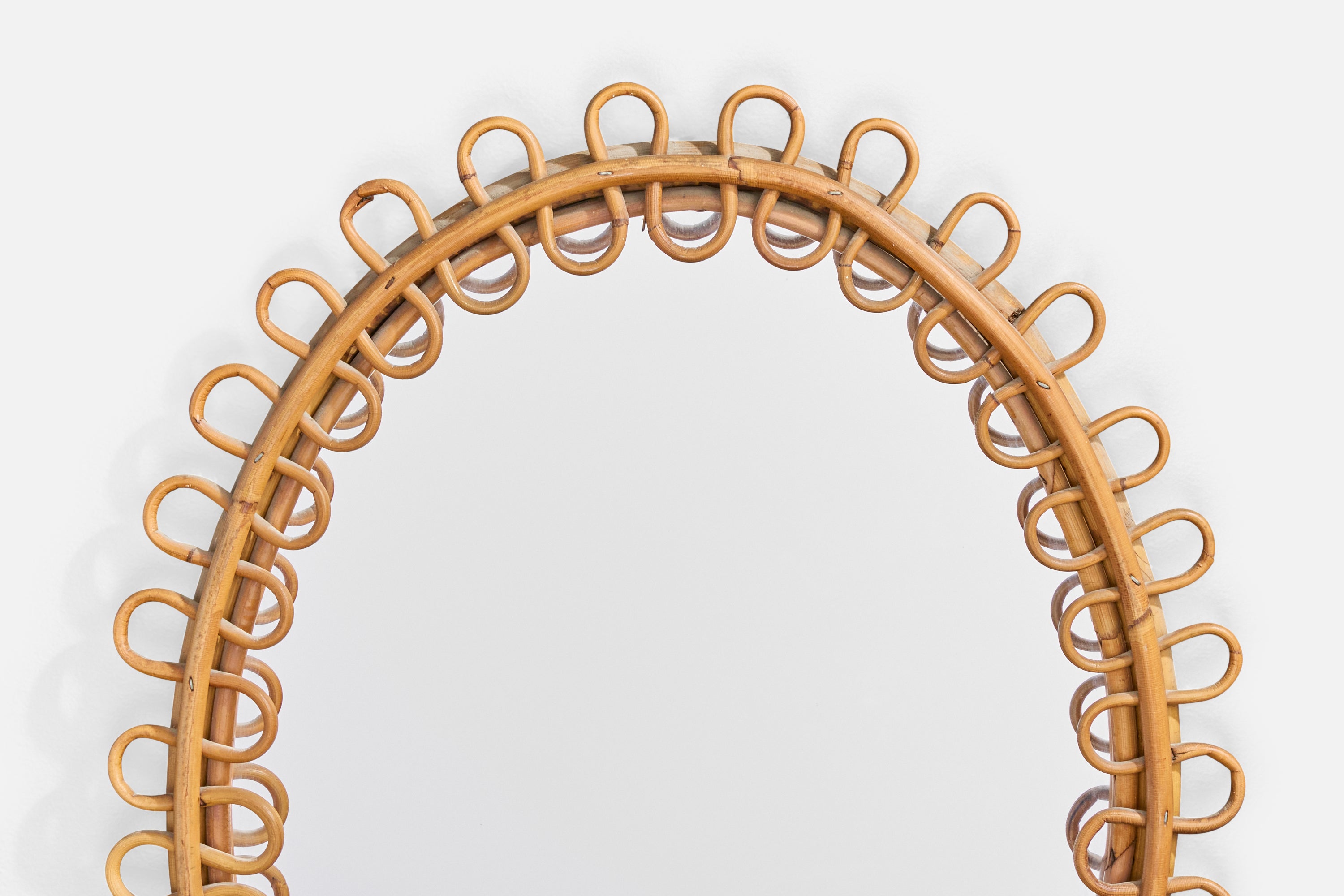 A bamboo and rattan wall mirror designed and produced in Italy, c. 1960s.