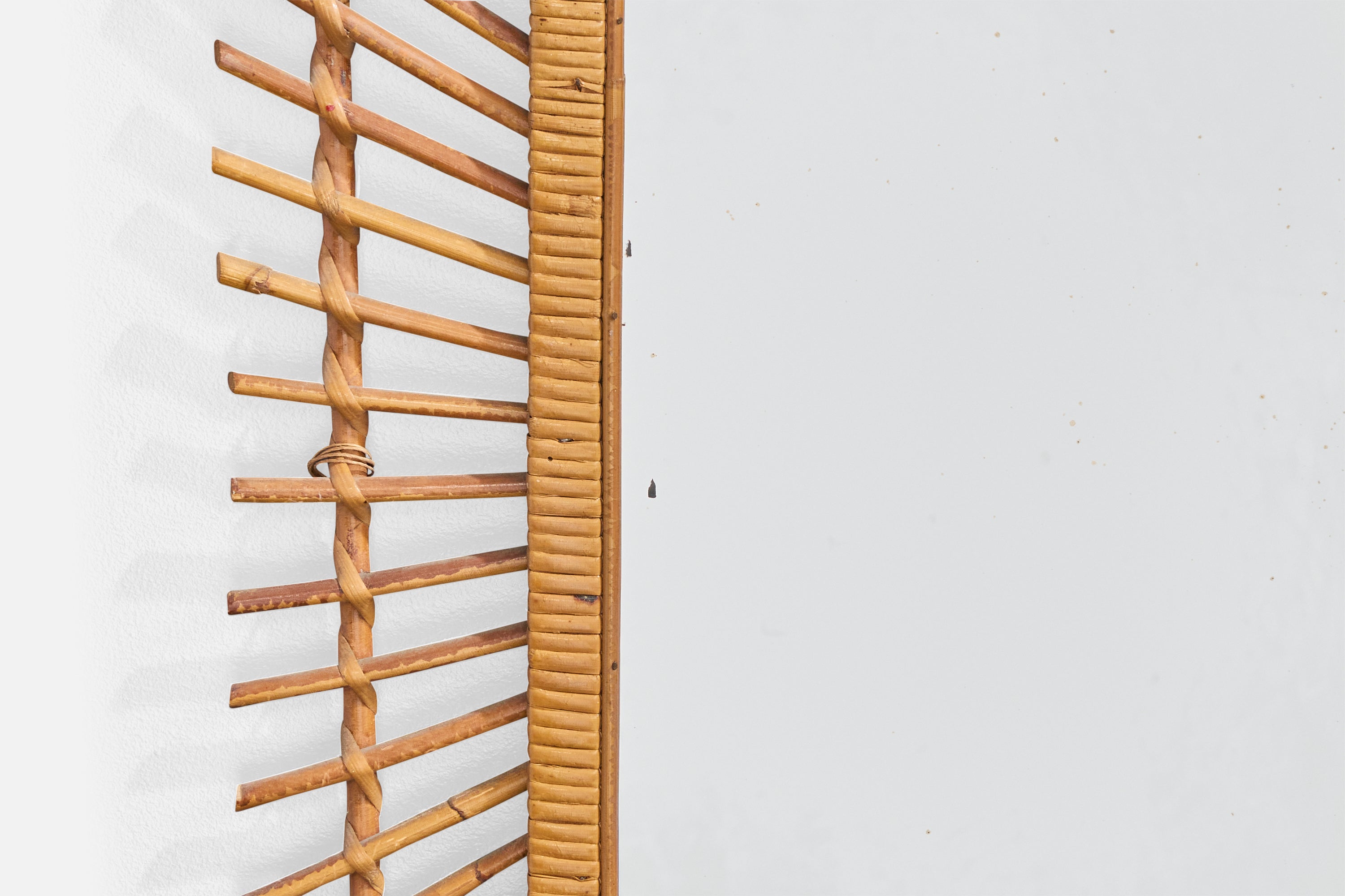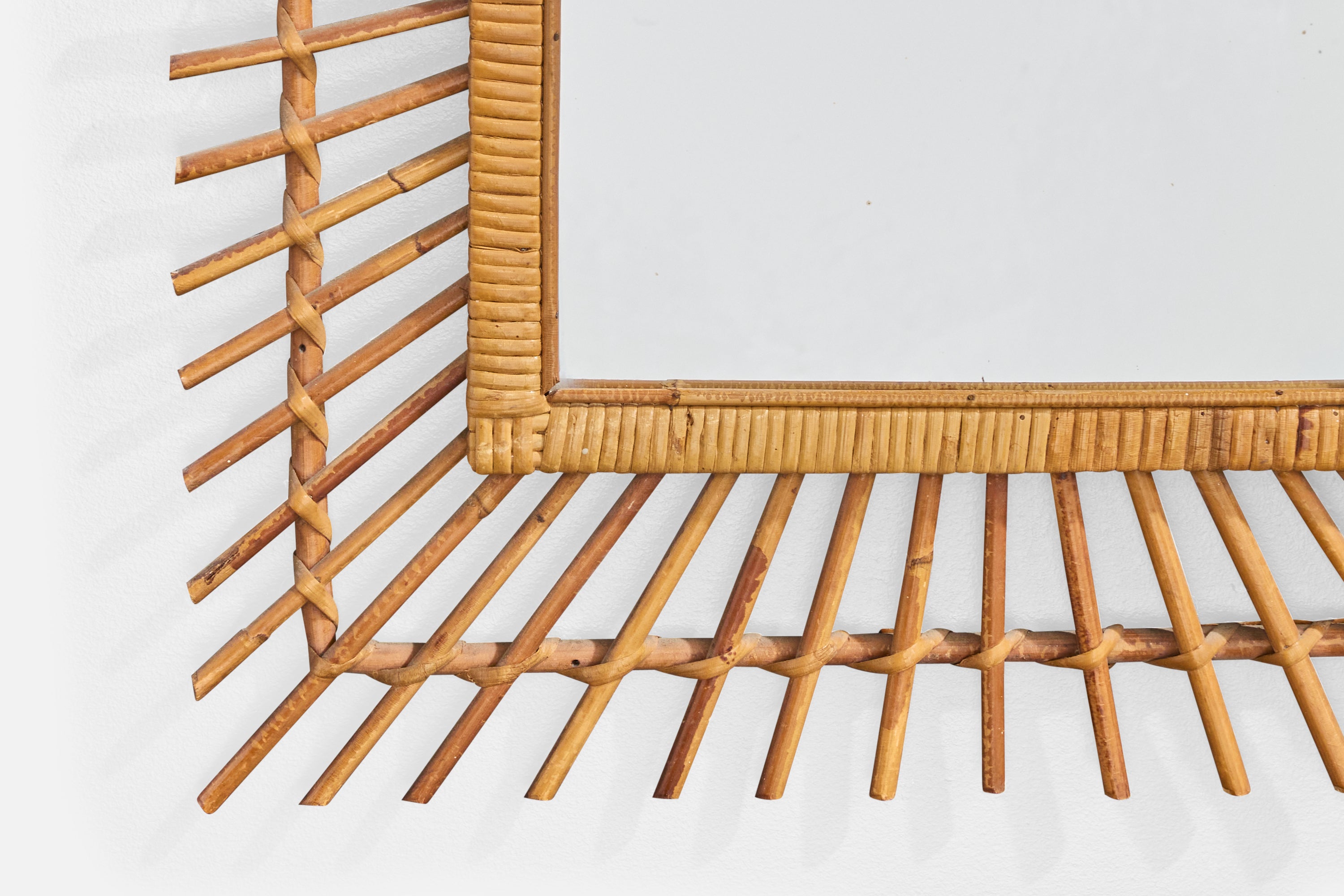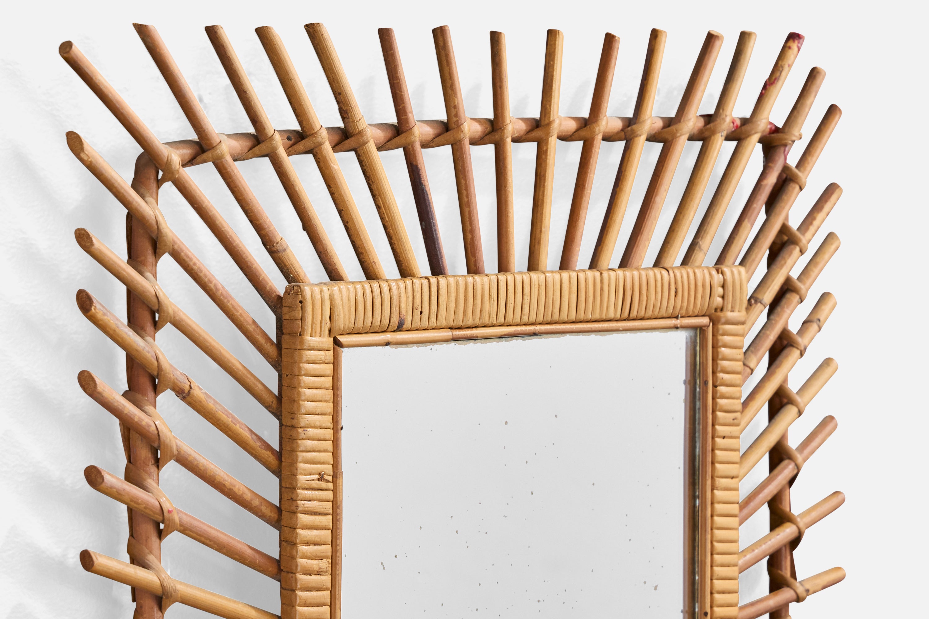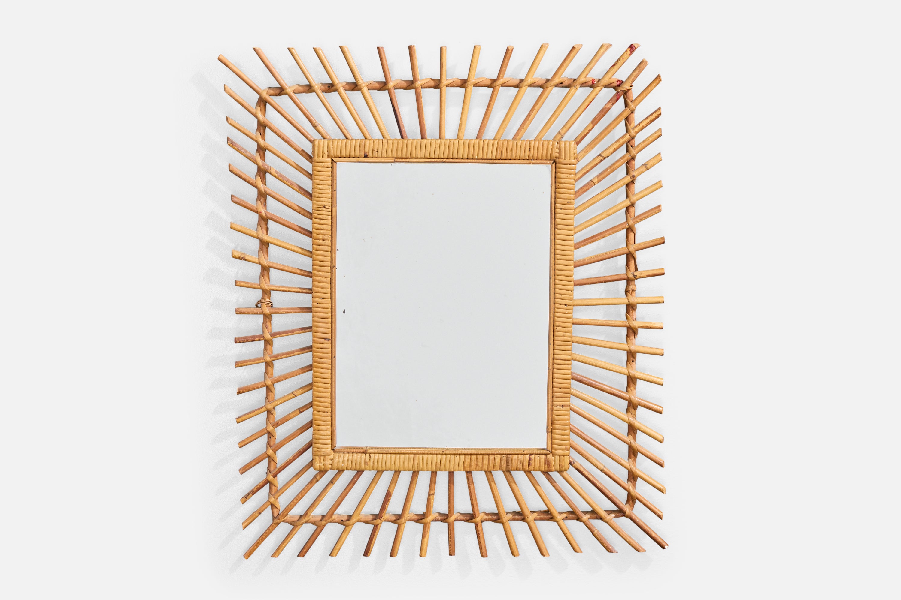 French Designer, Wall Mirror, Rattan, France, 1960s