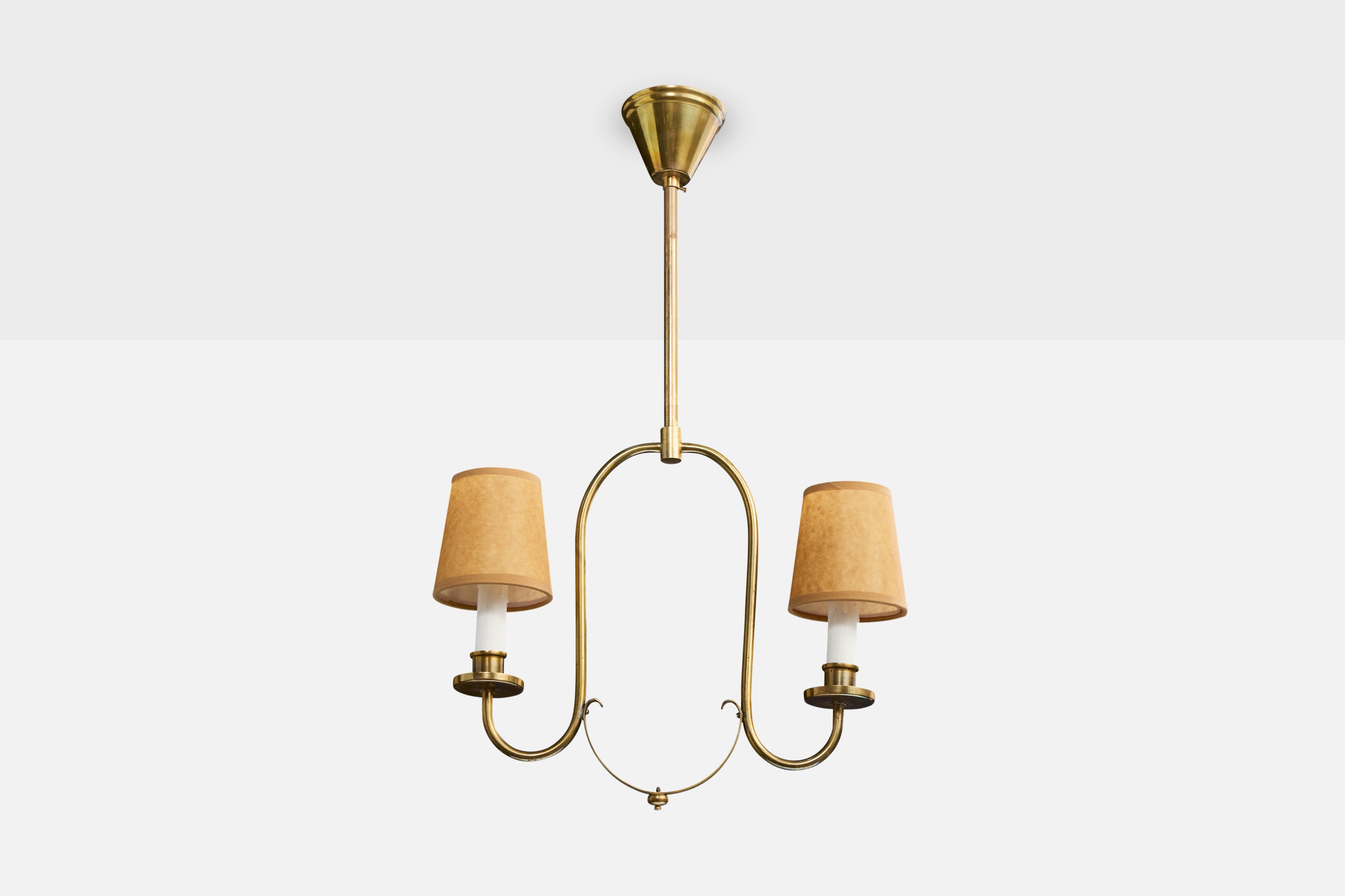 Swedish Designer, Chandelier, Brass, Plastic, Parchment, Sweden, 1950s