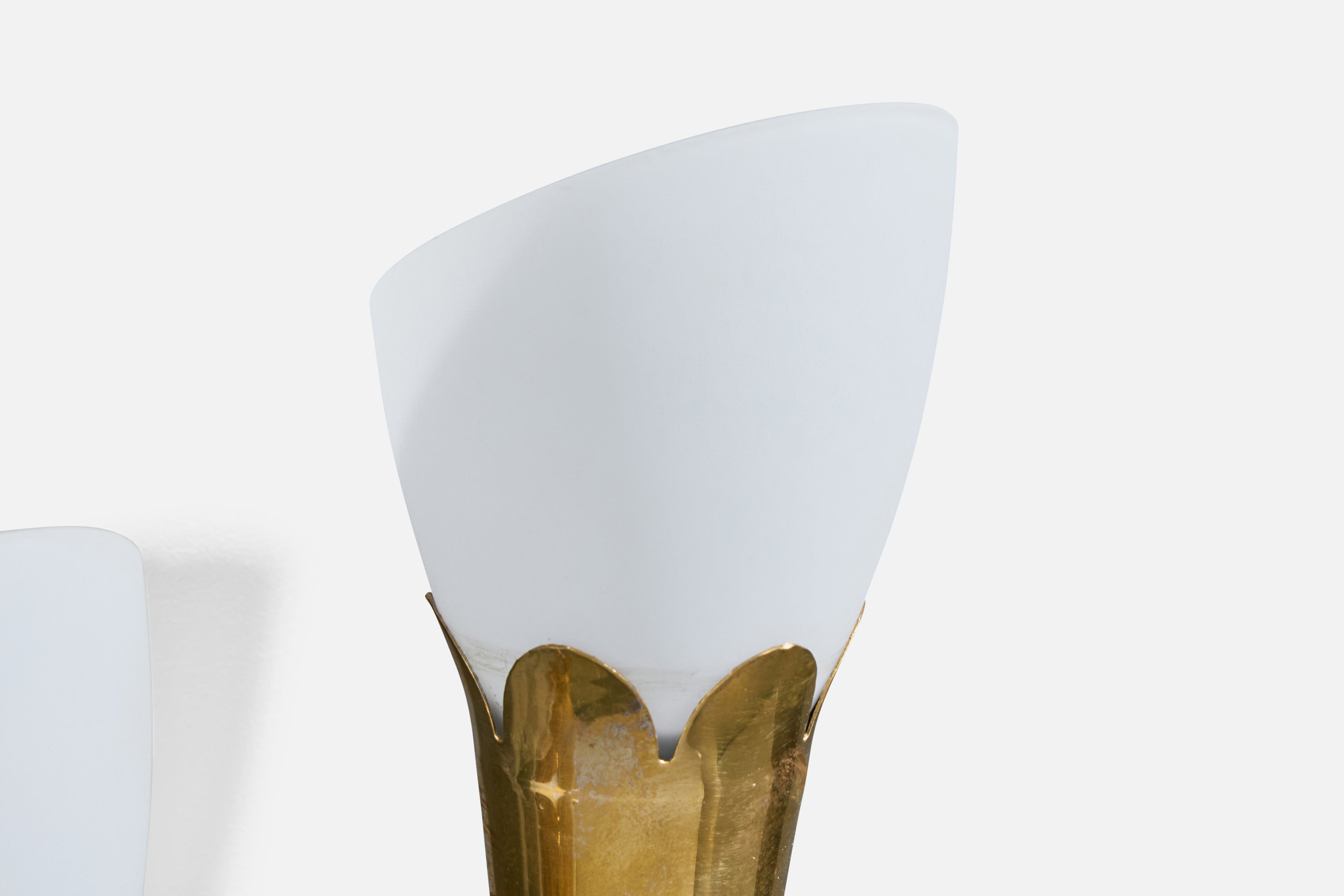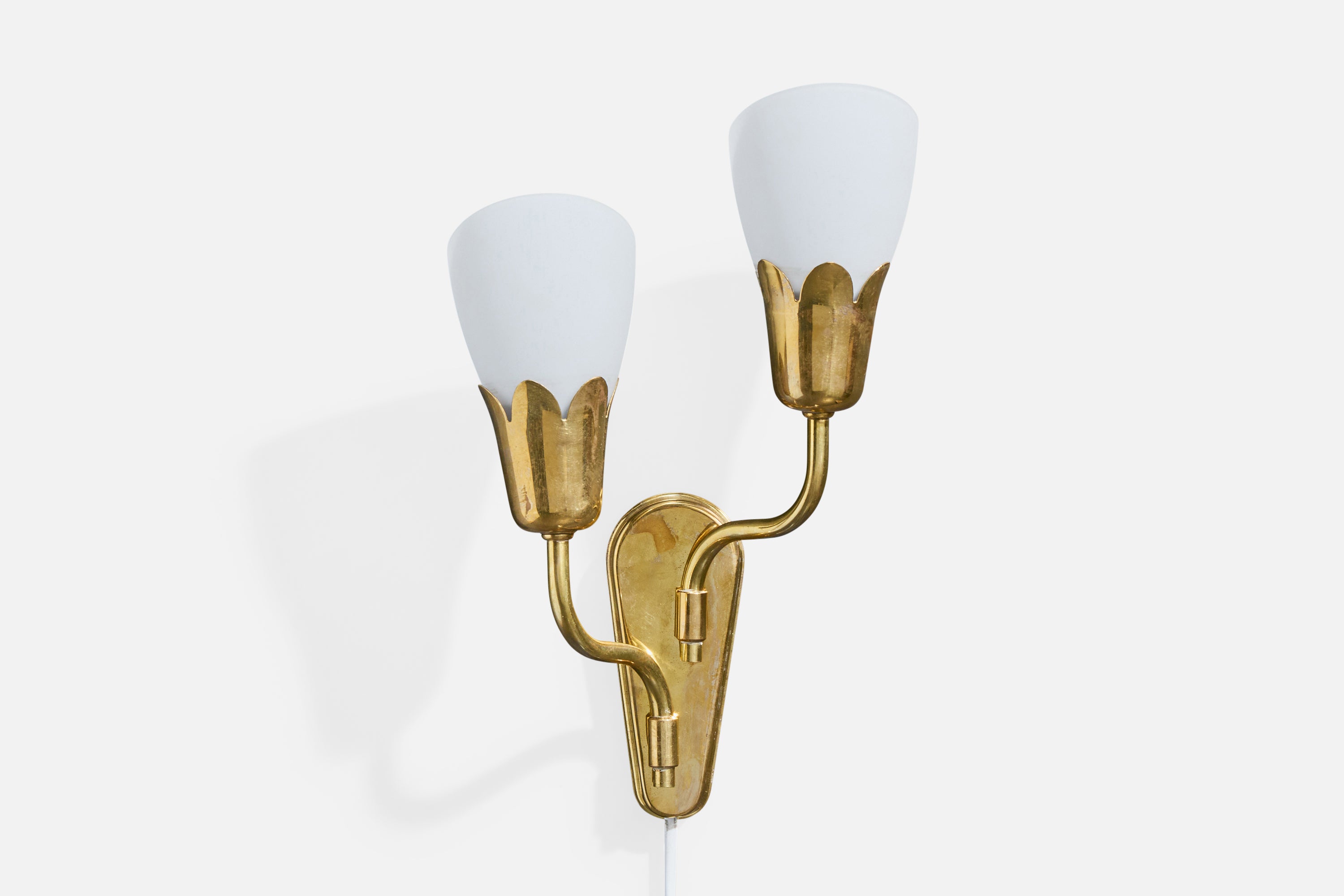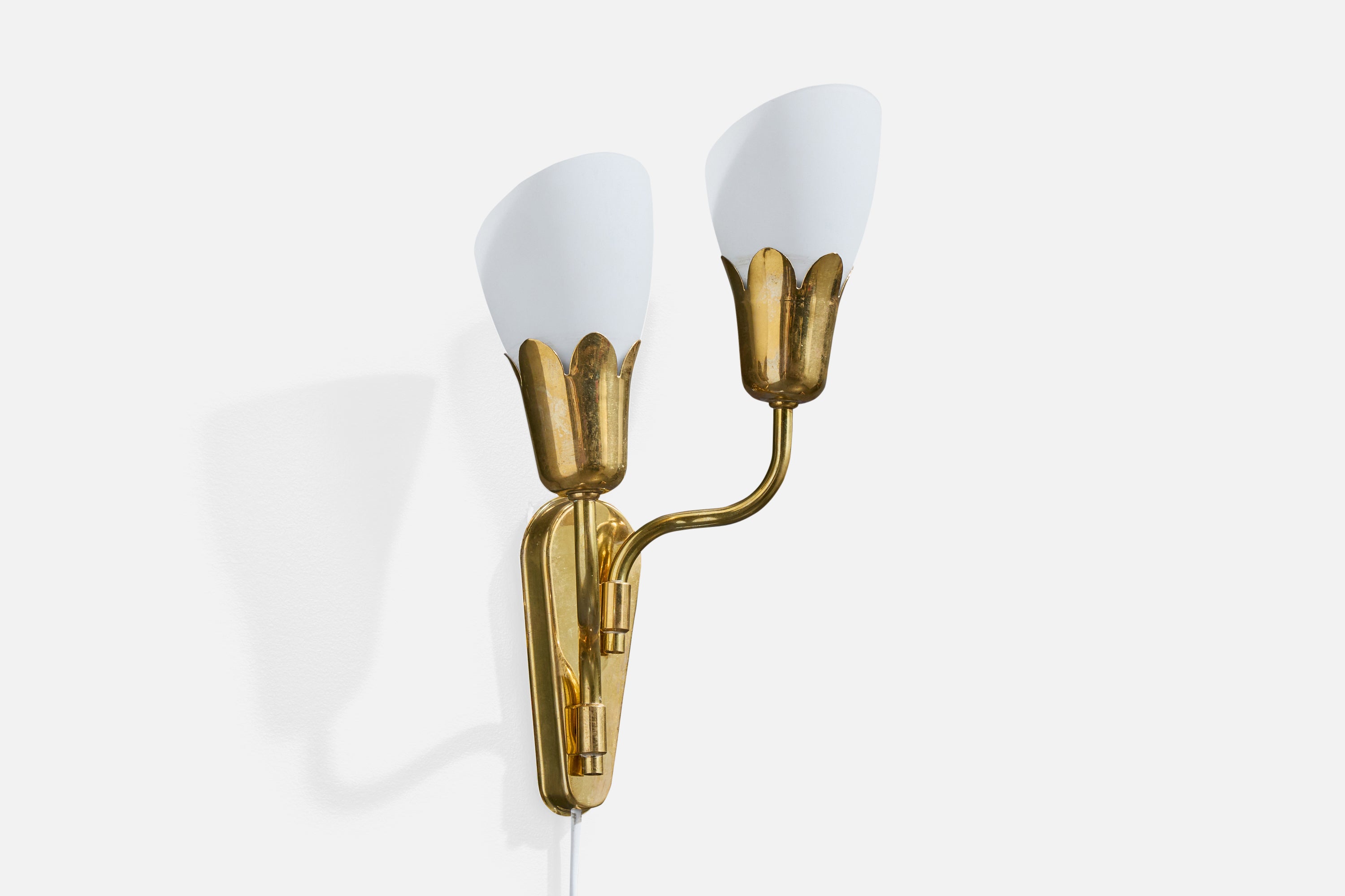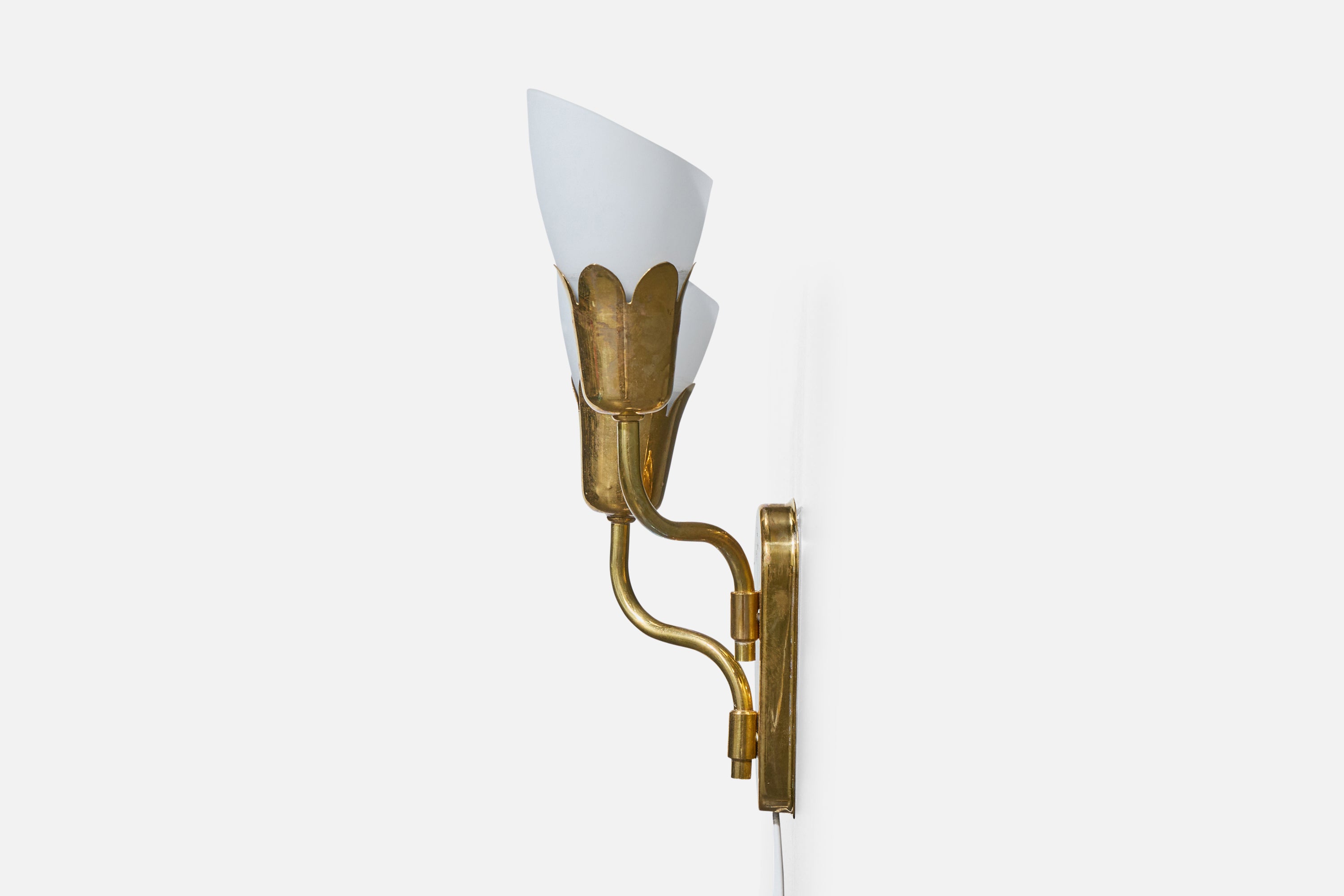 A brass and white opaline glass wall light produced by Fog & Mørup, Denmark, c. 1950s.