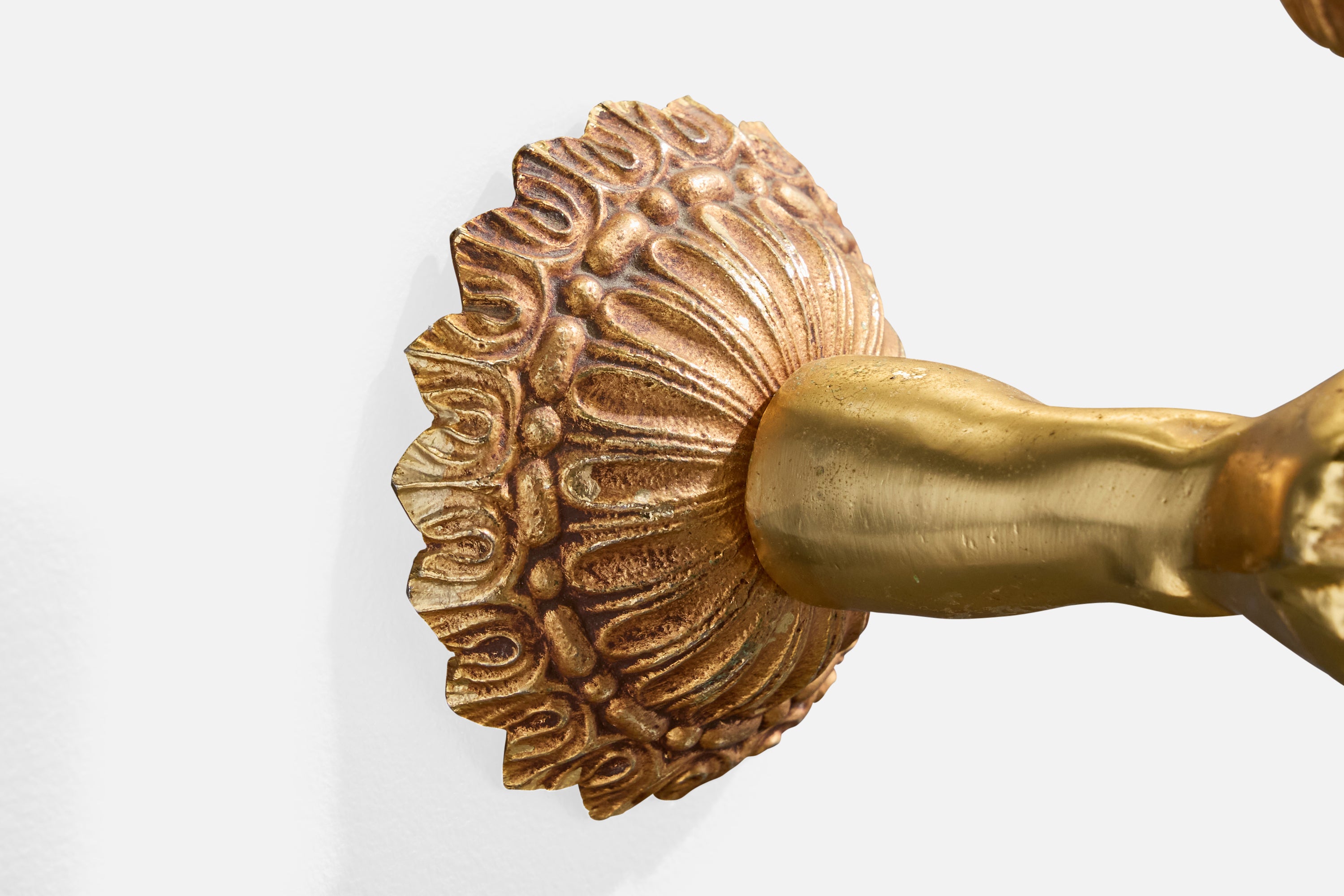 French Designer, Wall Light, Brass, Glass, France, 1950s