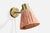 An adjustable brass and pink fabric wall light designed and produced in Sweden, c. 1940s.
