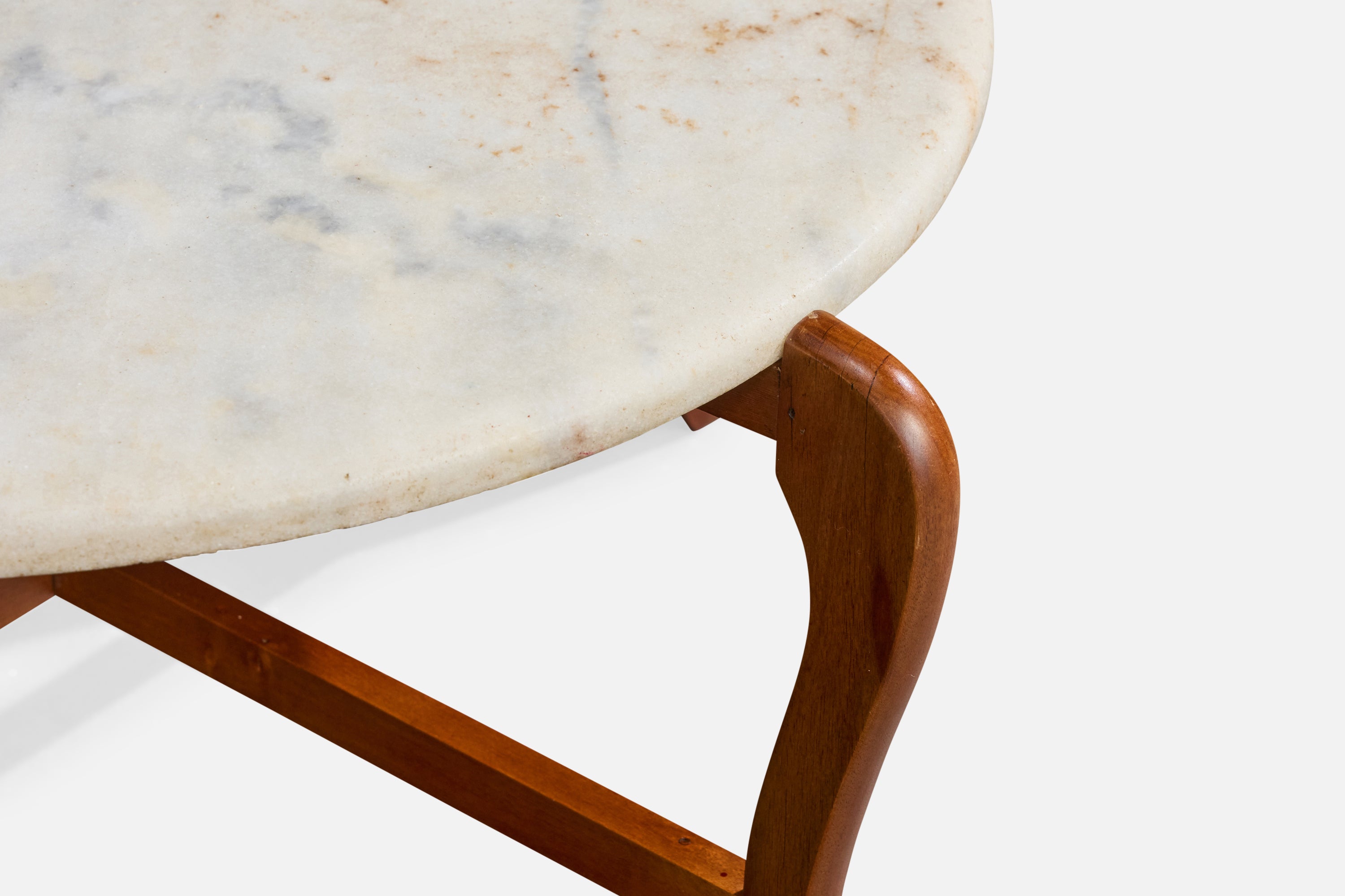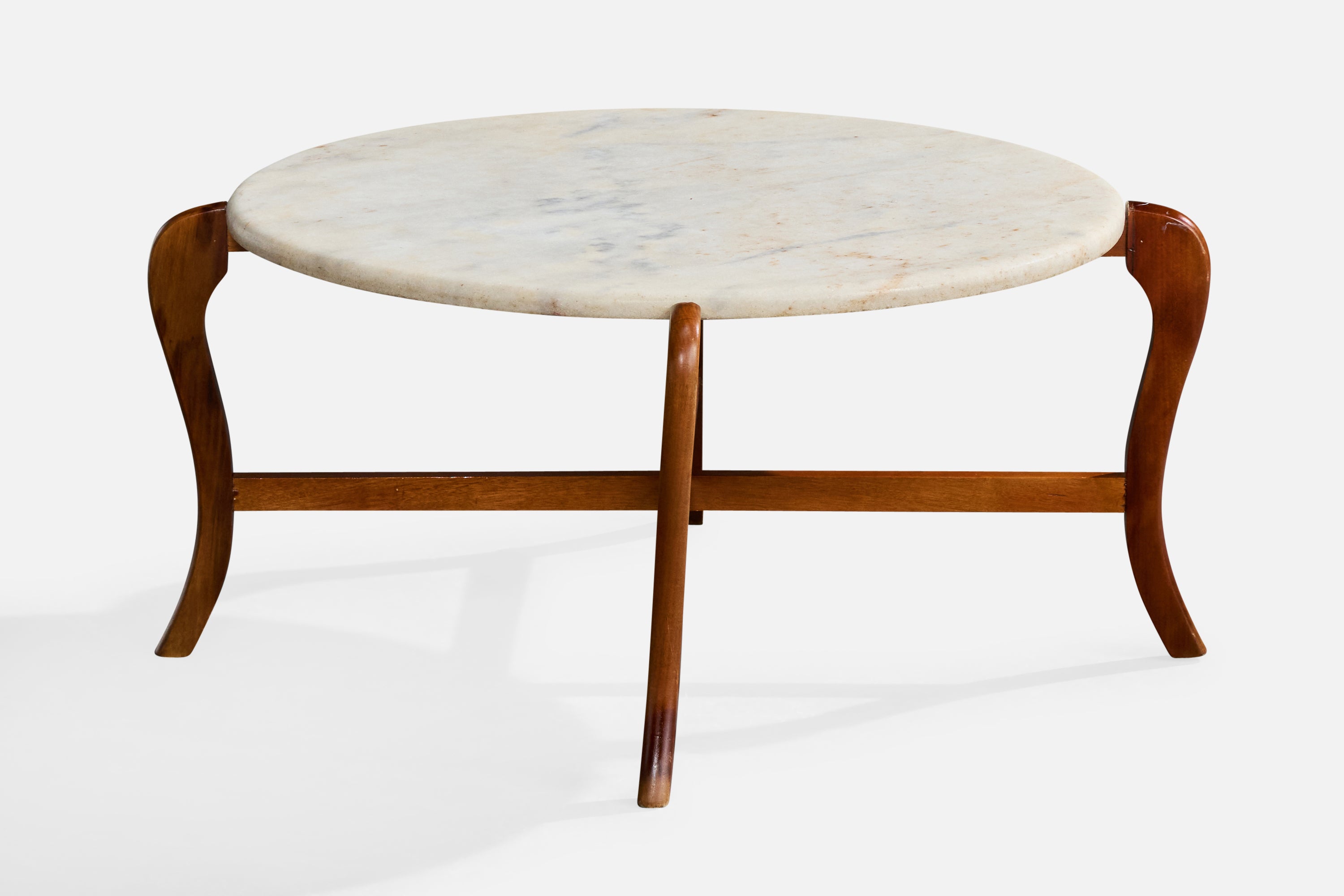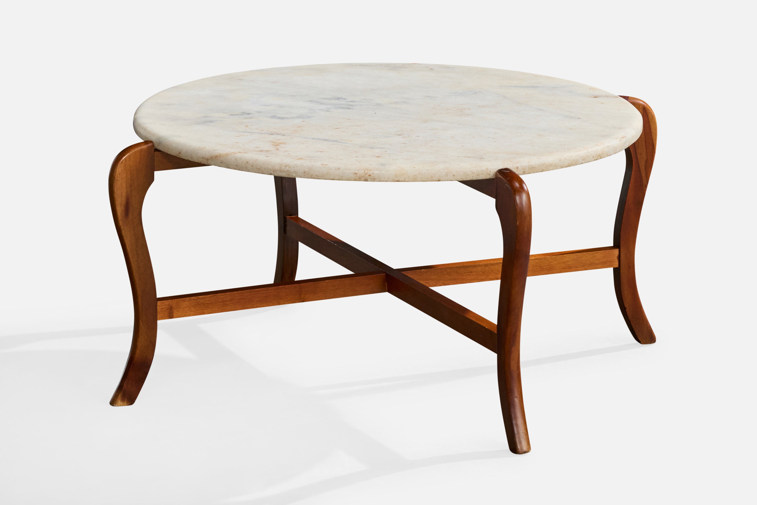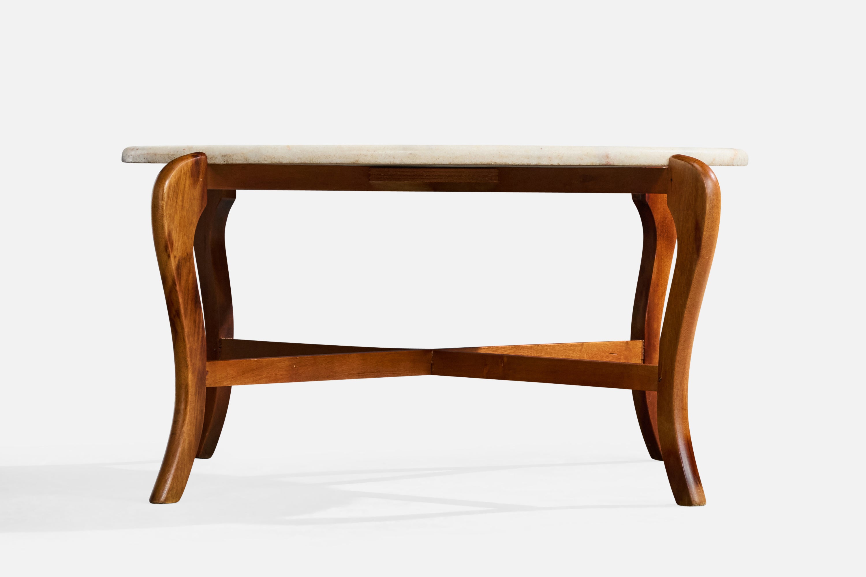 A wood and marble coffee table designed and produced in Brazil, c. 1960s.