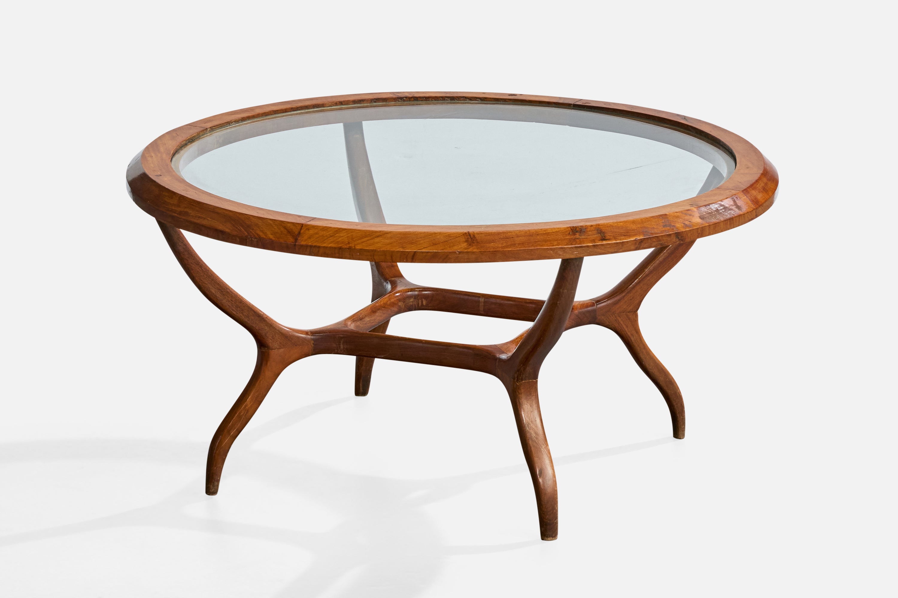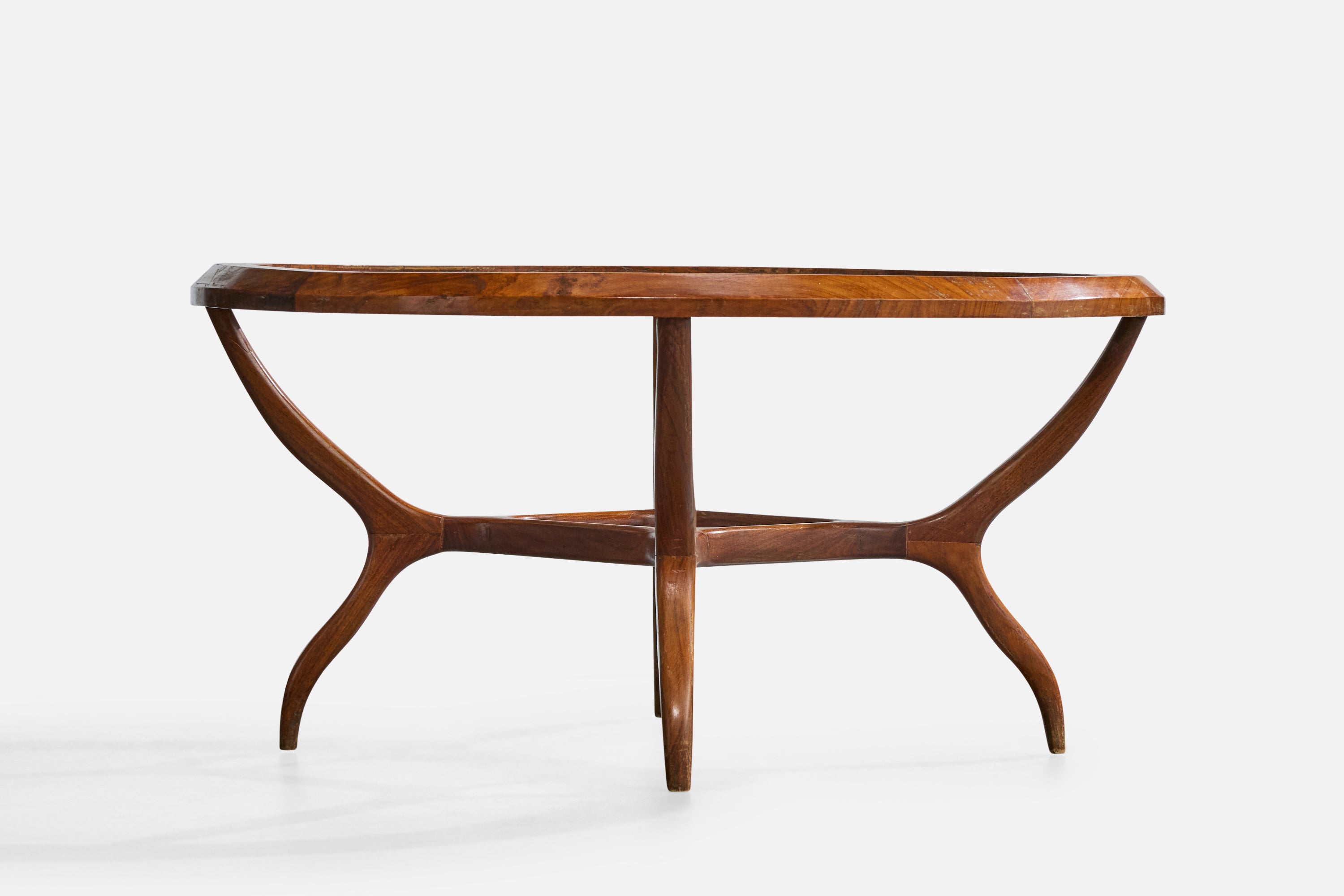 A wood and glass coffee table designed and produced by Giuseppe Scapinelli, Brazil, c. 1950s.
