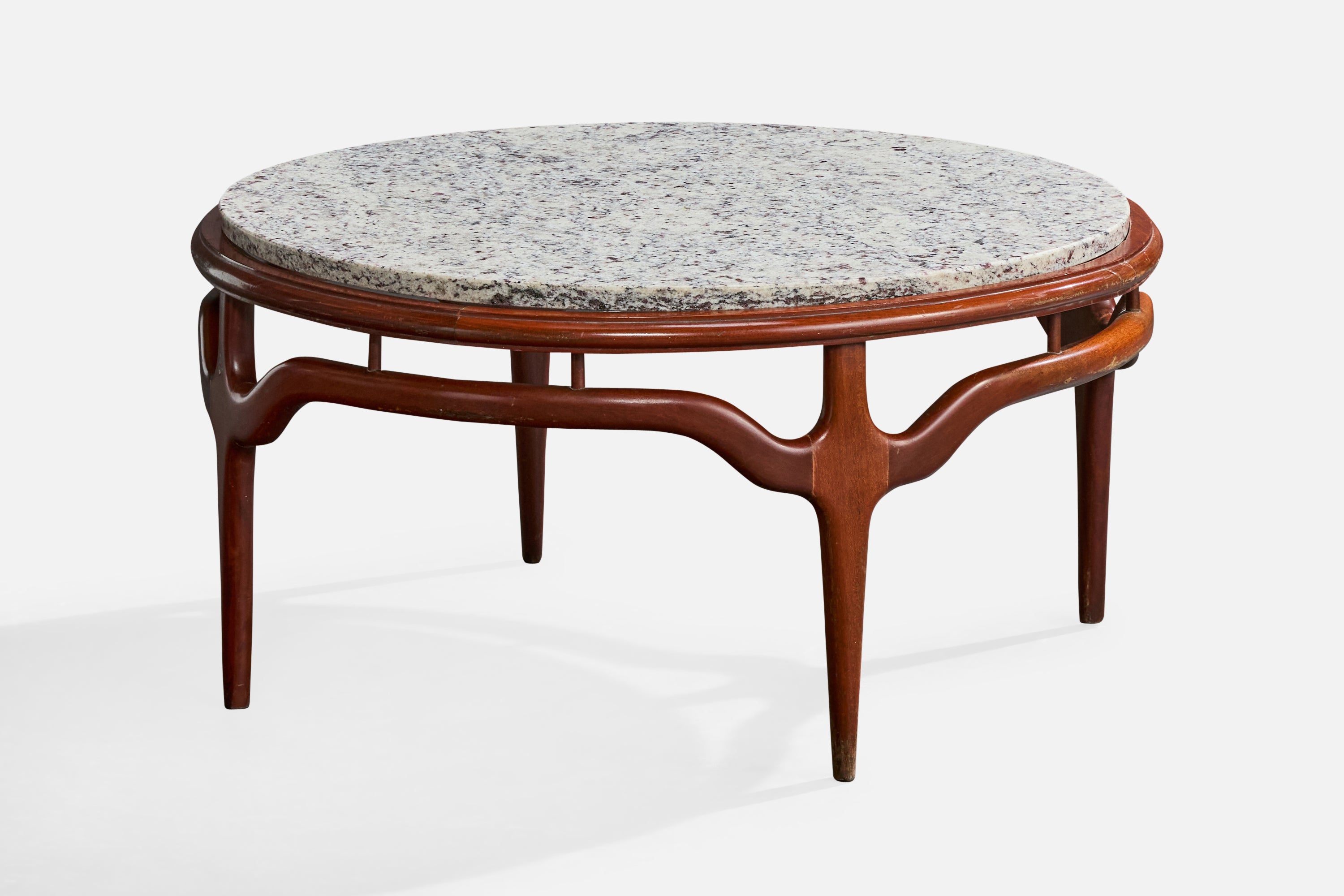 Giuseppe Scapinelli Attribution, Coffee Table, Wood, Marble, Brazil, 1950s