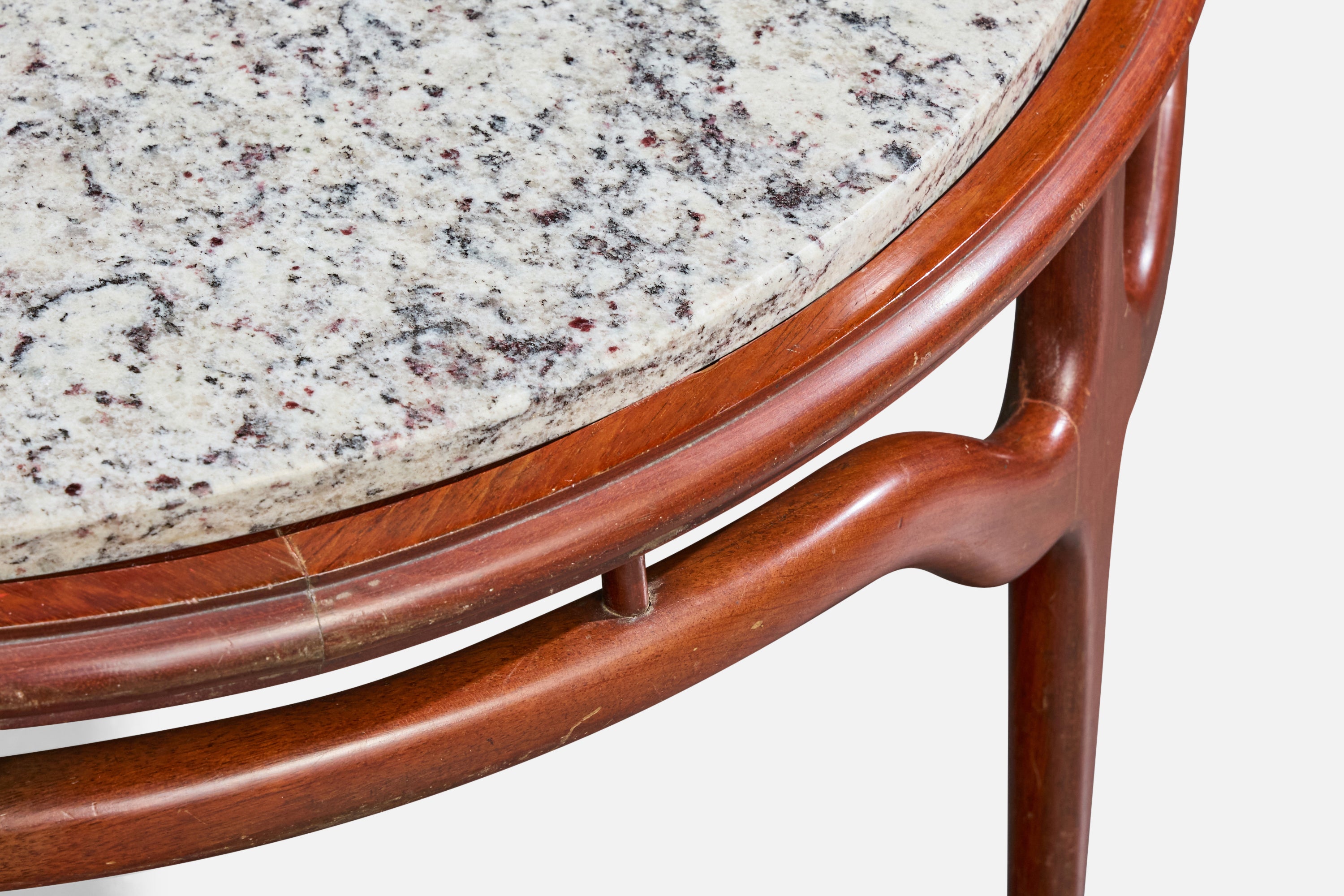A wood and marble coffee table attributed to Giuseppe Scapinelli, Brazil, c. 1950s.