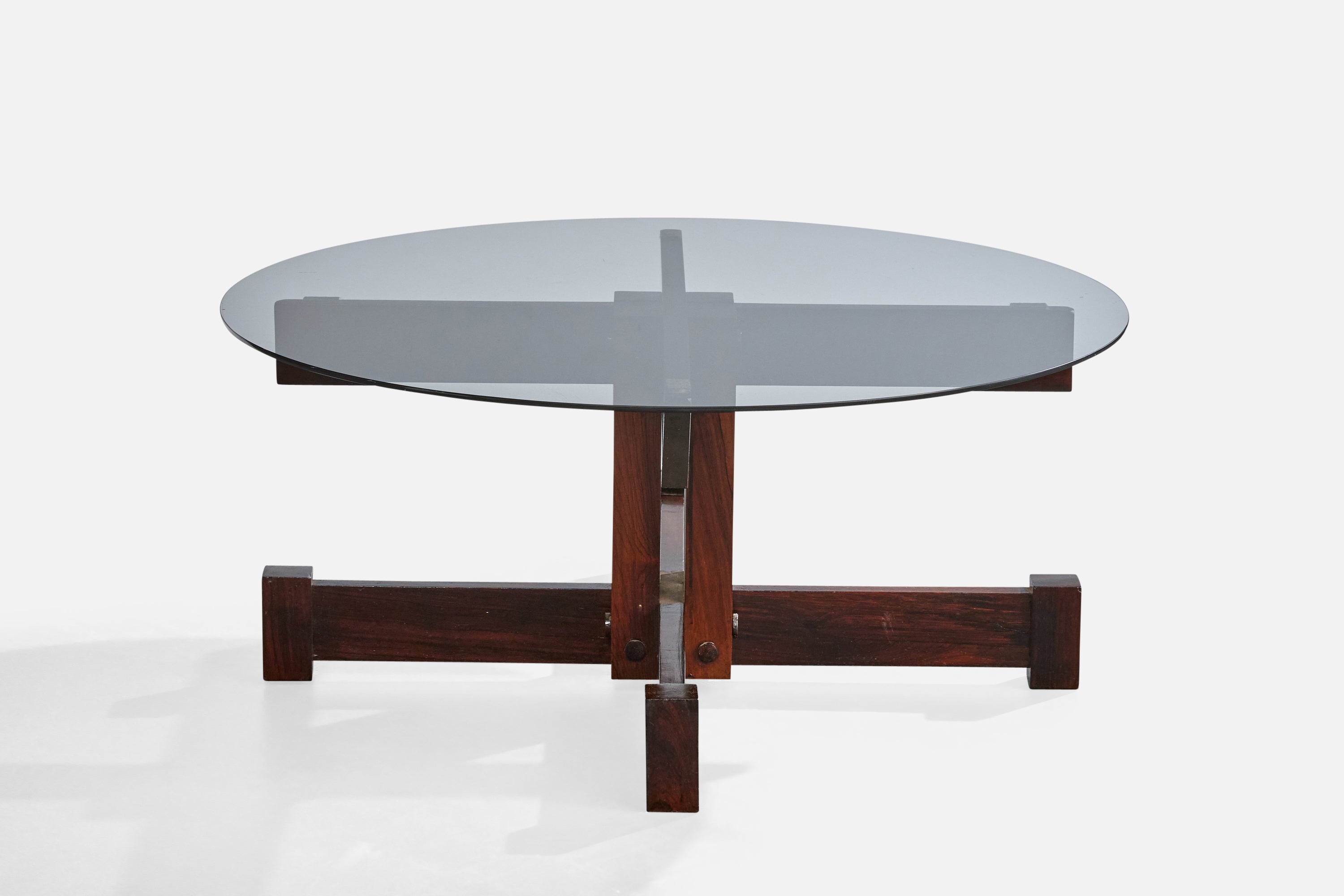 A wood and glass coffee table produced by Tora Arquitetura, Brazil, c. 1960s.