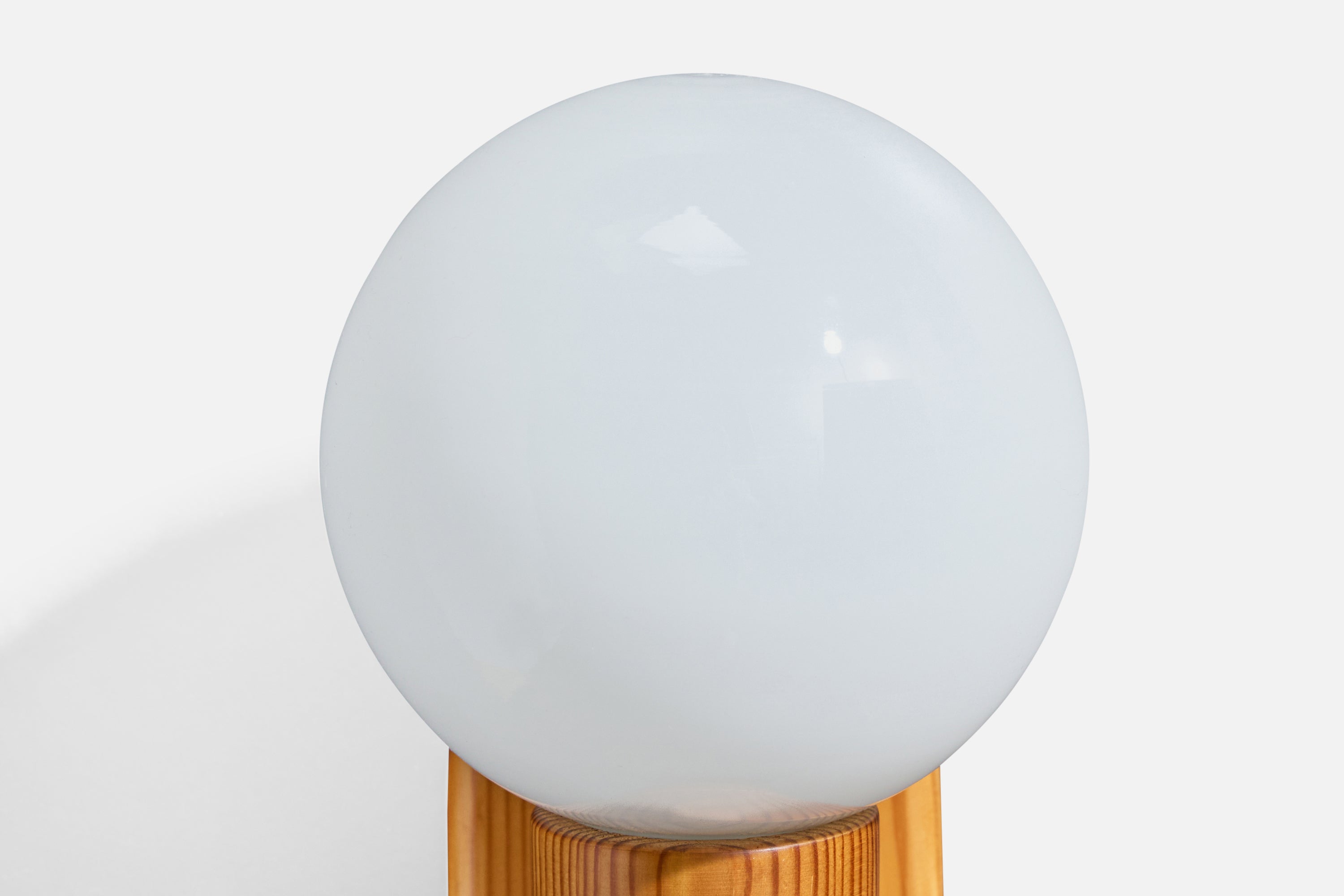A pair of pine and white opaline glass wall lights designed and produced in Sweden, c. 1970s.