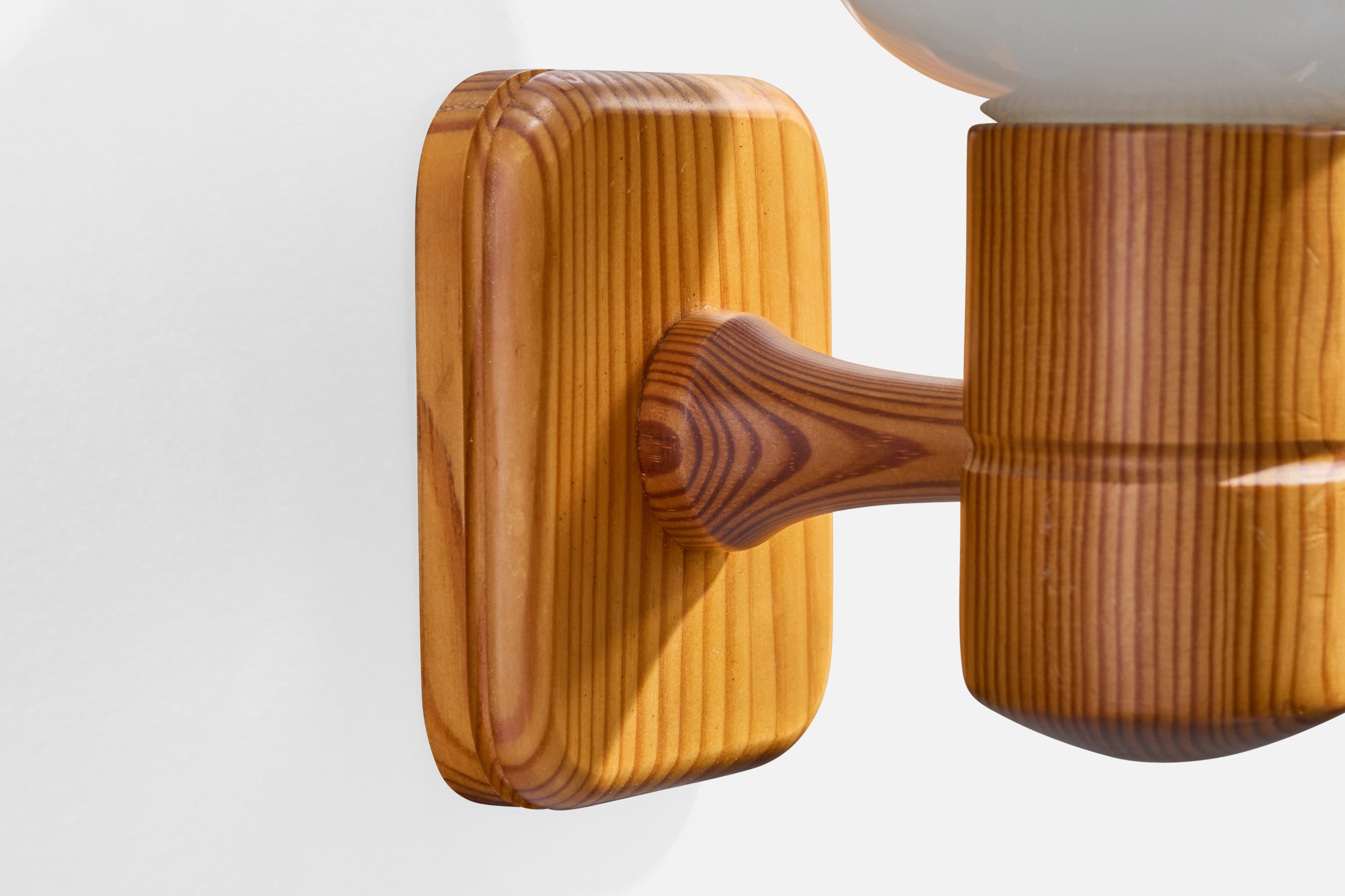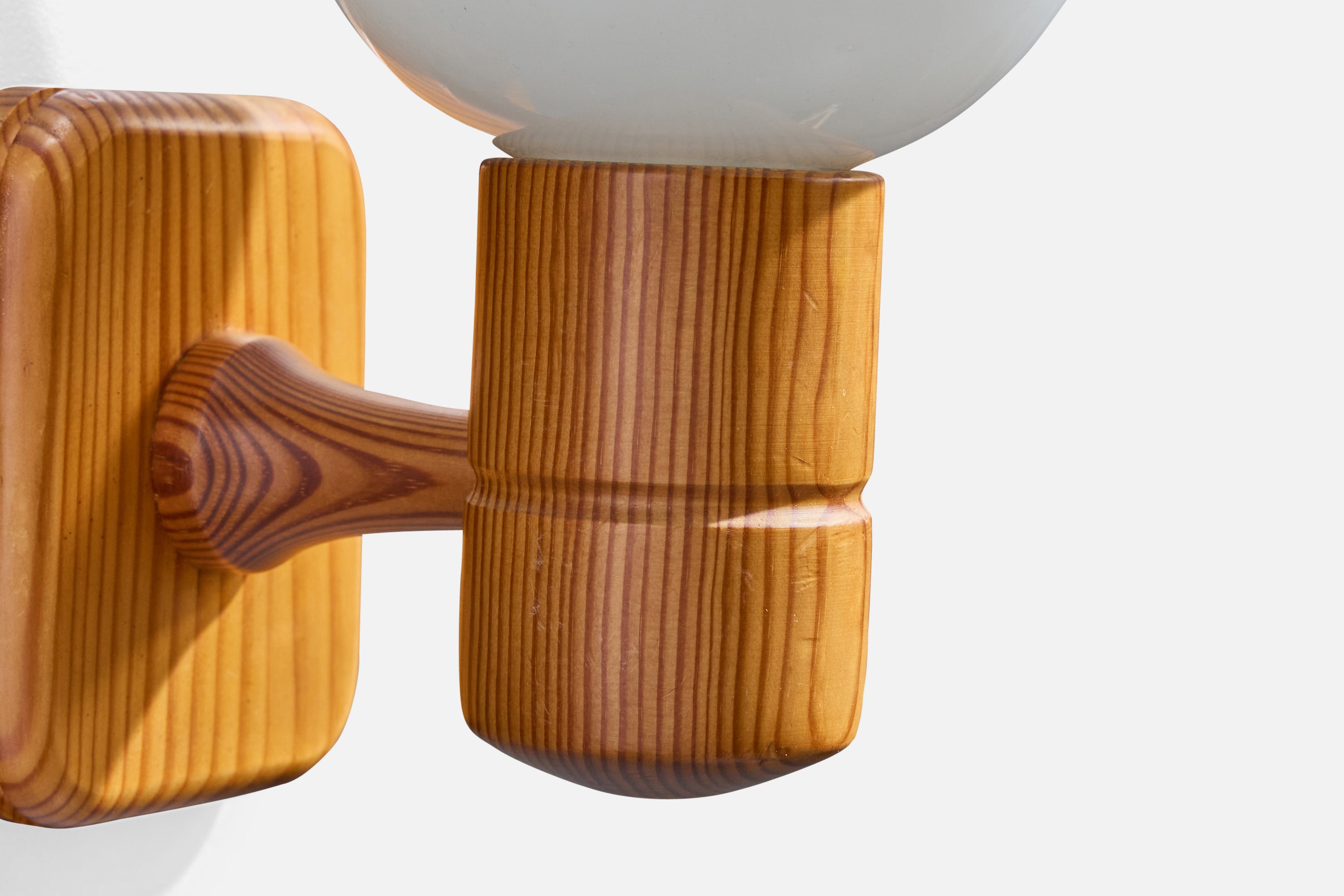 Swedish Designer, Wall Lights, Pine, Glass, Sweden, 1970s