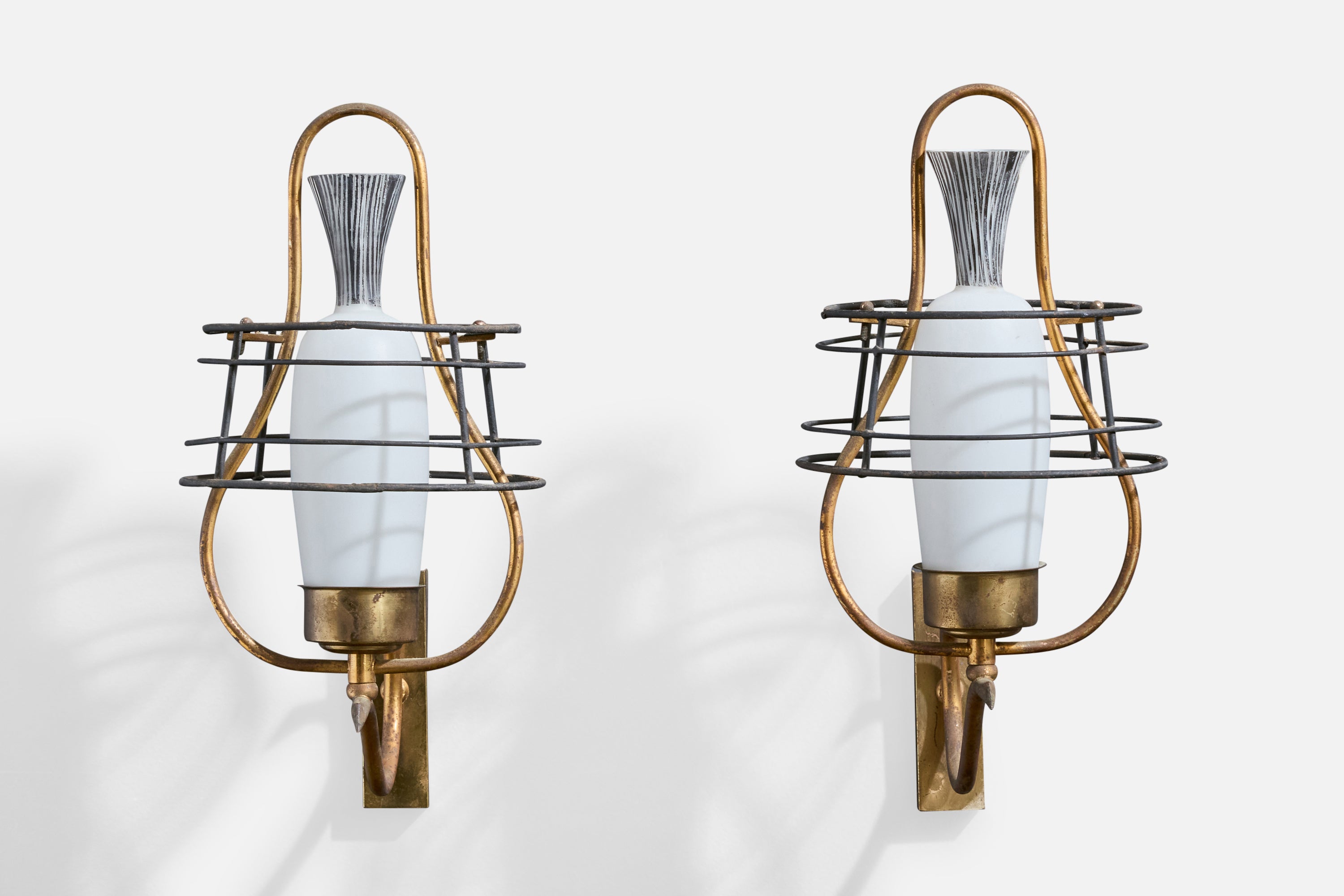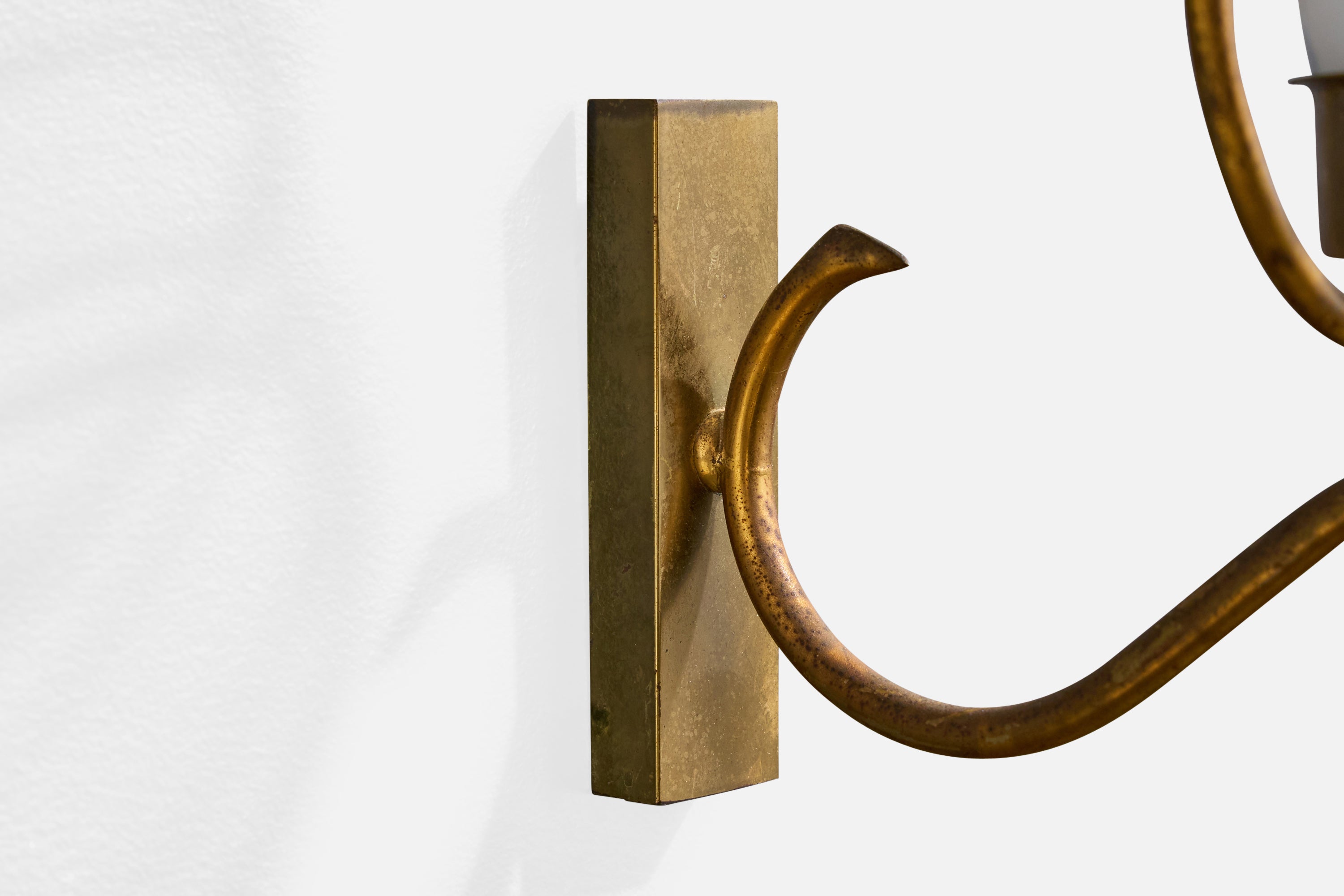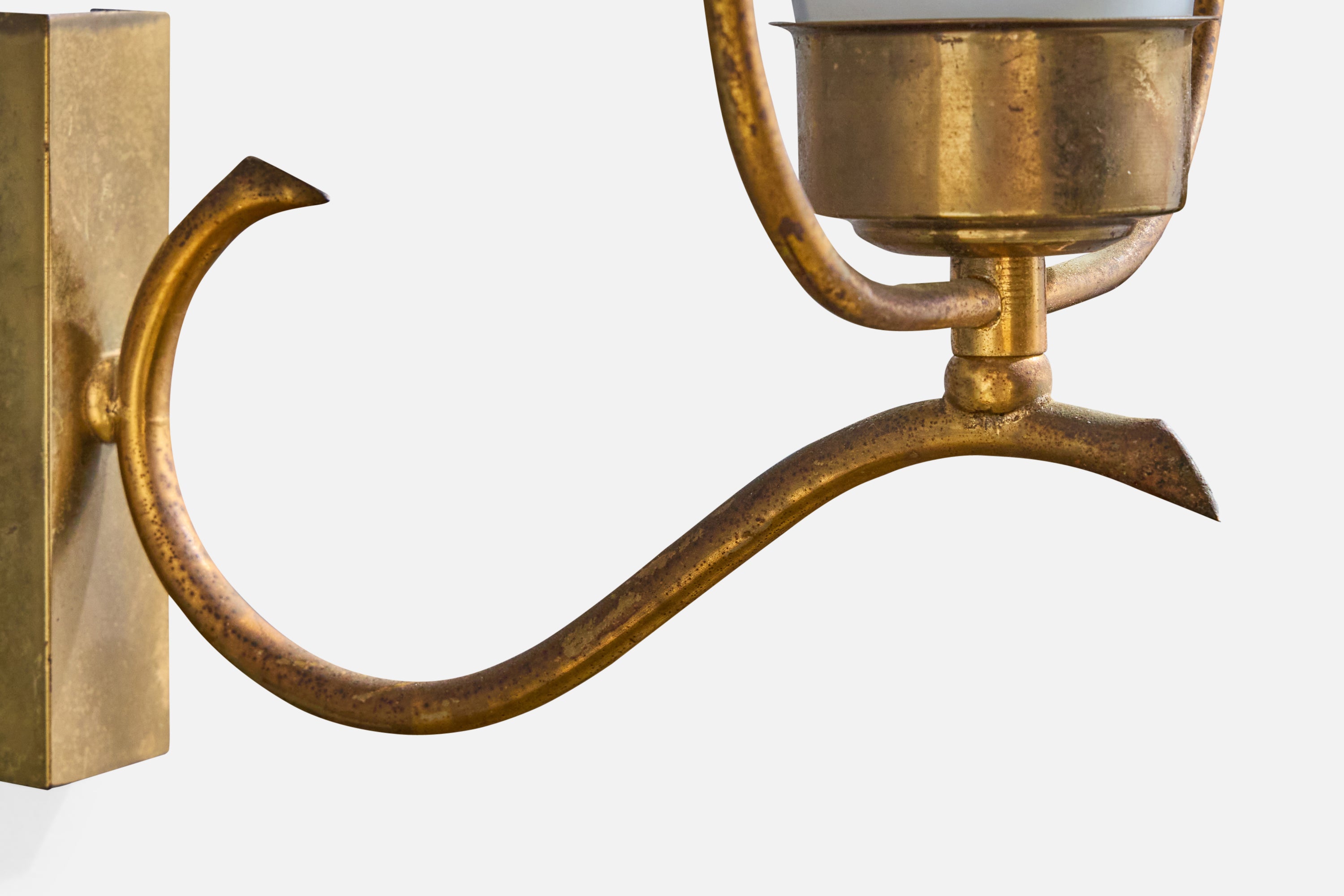 Italian Designer, Wall Lights, Brass, Metal, Glass, Italy, 1950s
